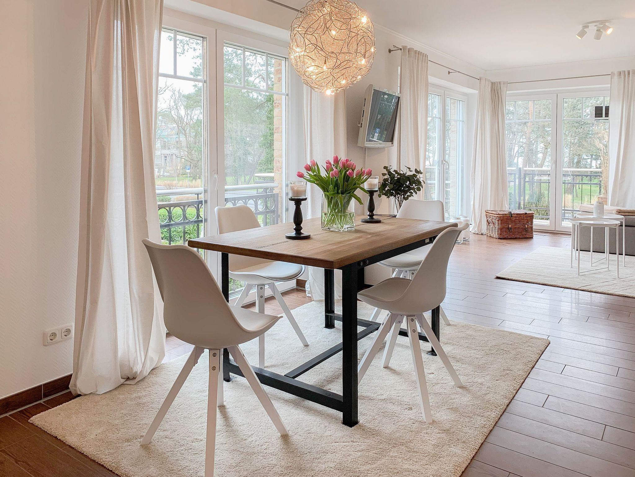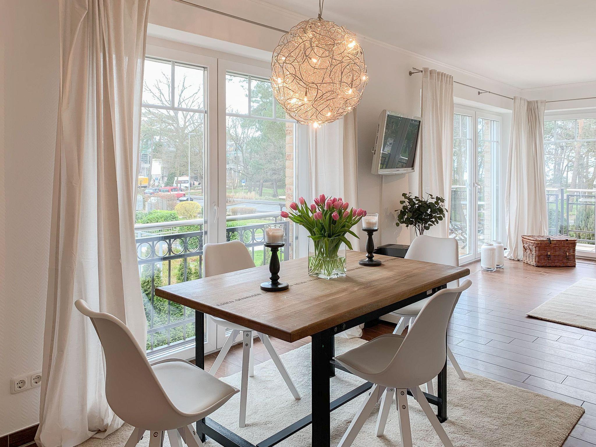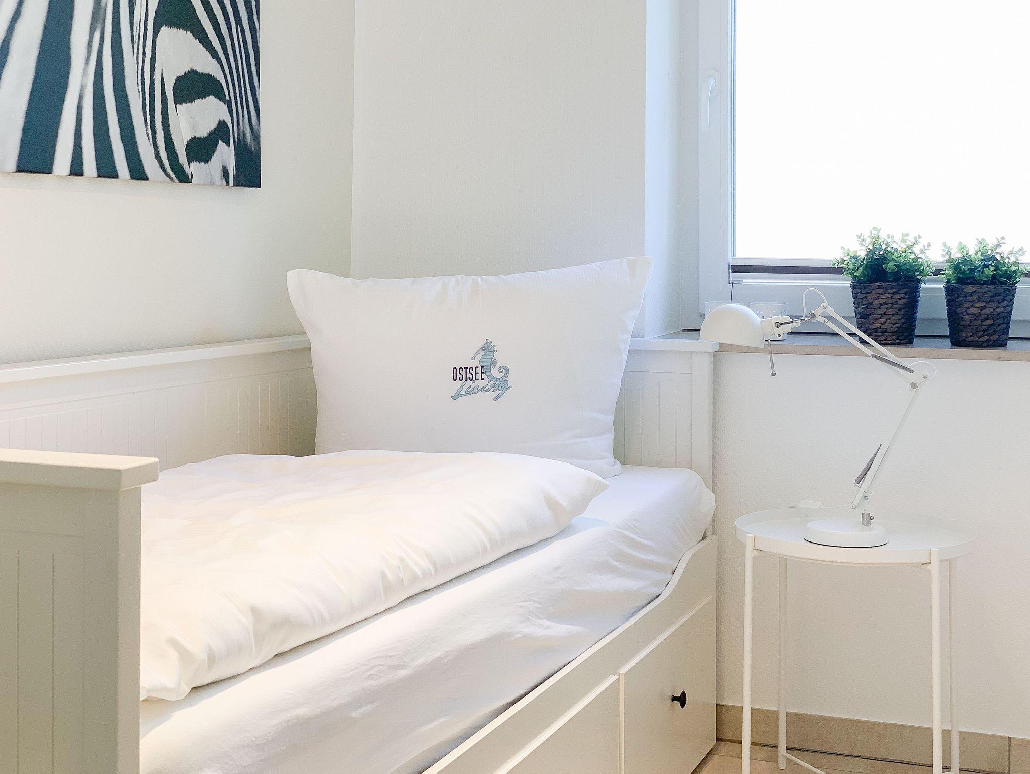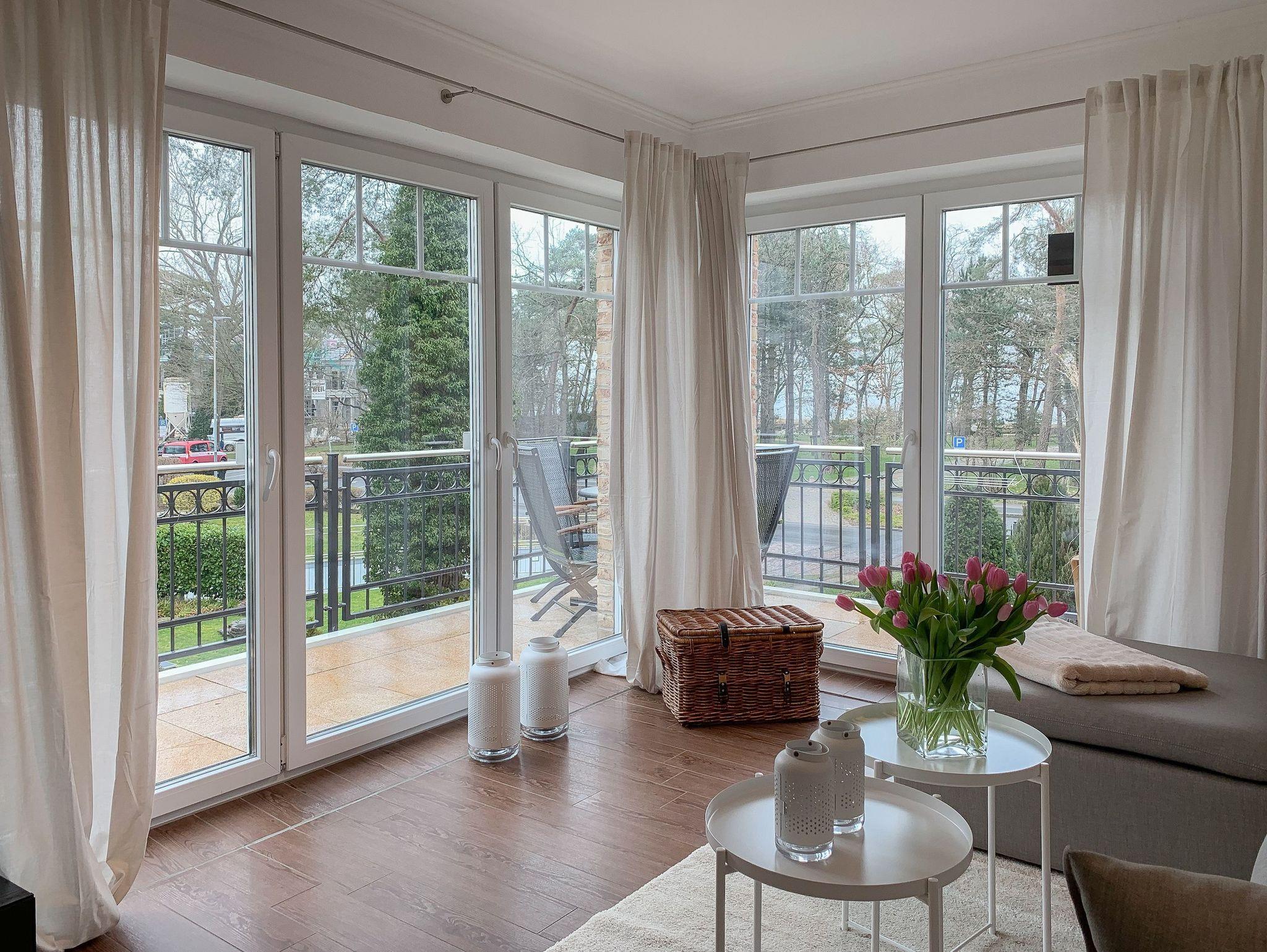 Die hochwertige Wohnung verfügt über einen kombinierten Wohn- Essbereich mit großen, bodentiefen Fensterflächen und Zugang zu dem schönen, umlaufenden Balkon zur Seeseite und in westlicher Ausrichtung mit tollem Blick ins Grün des gegenüberliegenden Parks bis zur Ostsee. Die offene, moderne Einbauküche verfügt über Ceranfeld, Backofen, Mikrowelle und Geschirrspülmaschine. Es gibt ein Schlafzimmer mit Boxspringdoppelbett (160x200)[nbsp] und ein weiteres Schlafzimmer mit einem Einzelbett mit Auszug (160x200) sowie ein modernes Duschbad. Sämtliche Fenster sind mit elektrischen Außenjalousien versehen. Kostenloser Internetzugang über WLAN. Ein Tiefgaragenstellplatz (Einfahrthöhe 2m) Waschmaschine und Trockner sind exklusiv für diese Wohnung vorhanden. Das Objekt verfügt über einen Fahrstuhl und einen Fahrradkeller. Direkt gegenüber am Strand steht ein Strandkorb (saisonbedingt Mitte Mai bis Mitte September) zur kostenlosen Nutzung am Strand bereit.