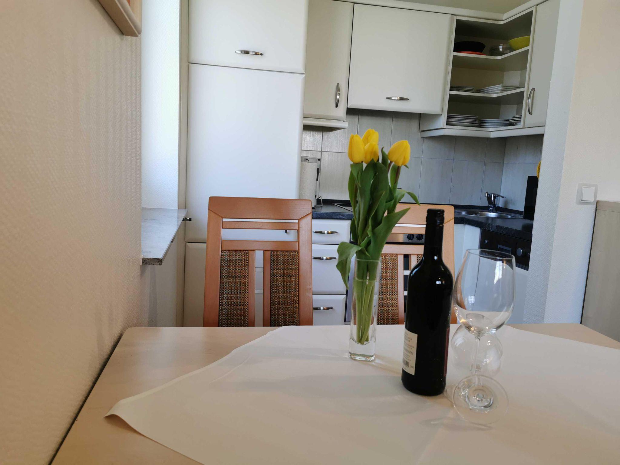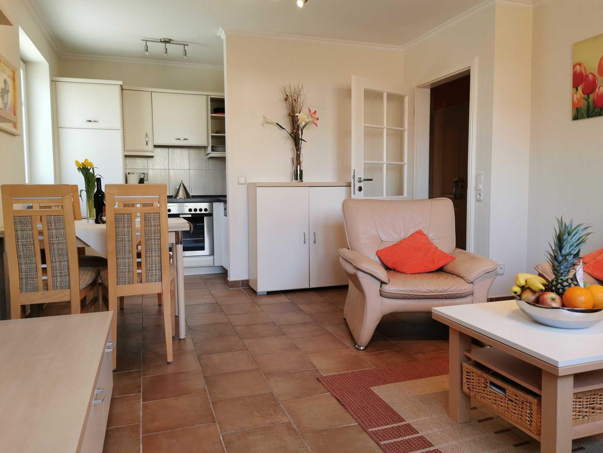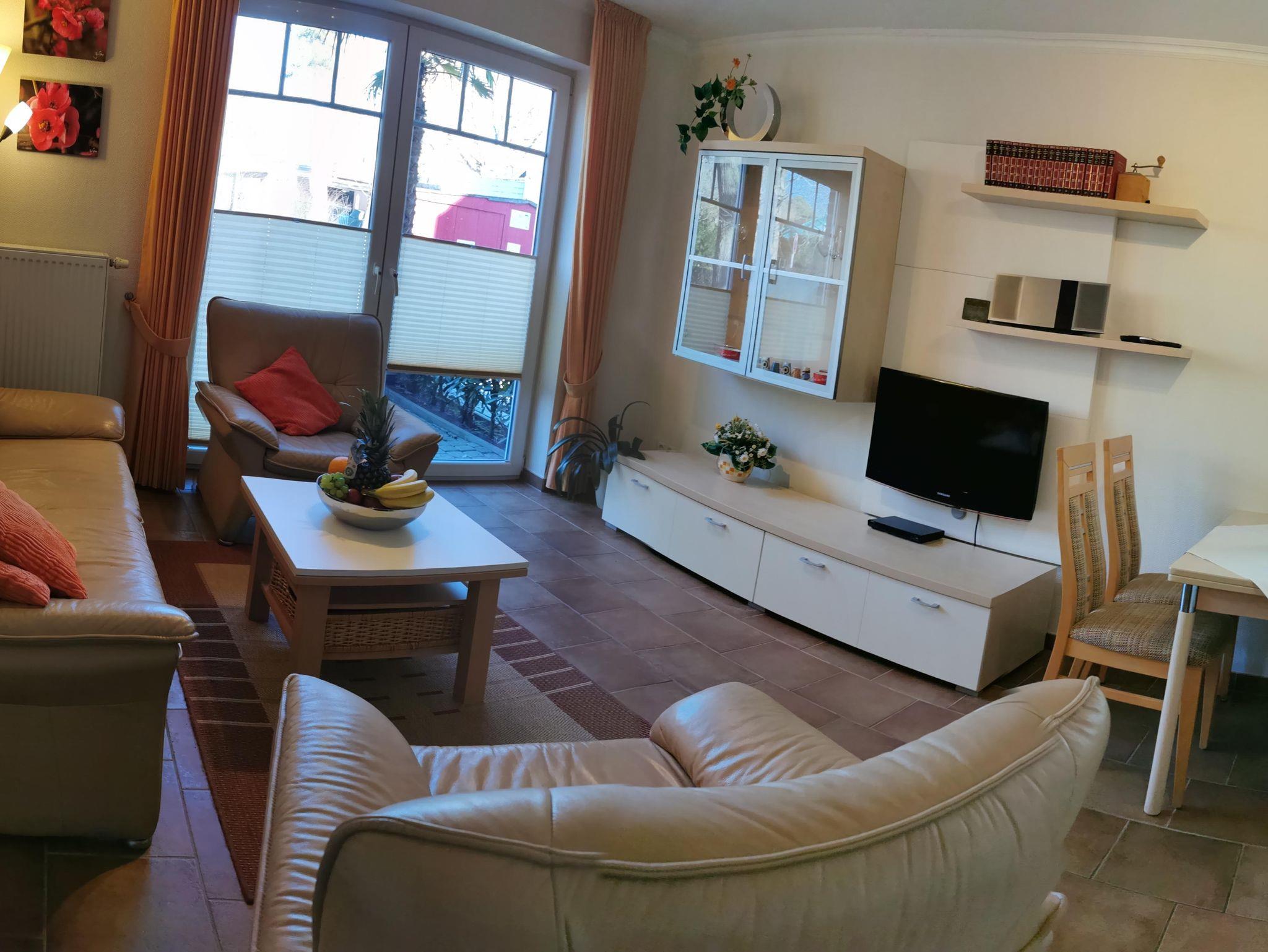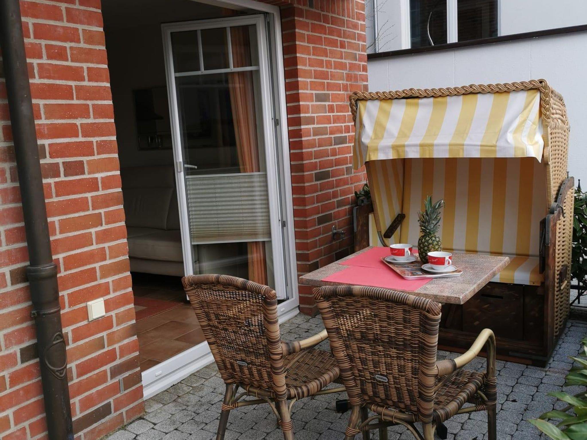 Die Wohnung befindet sich im Erdgeschoss, Kurparkstr. 7, wenige Min. vom Strand. Optimale Aufteilung ca. 72m². Sie ist neuwertig, voll möbliert und mit allem Komfort wie zwei Fernseher mit Radio u. Musiksender versehen. Wohn- und Essbereich mit Ausgang auf die Terrasse mit Strandkorb, Flur, 2 Schlafräume (Untergeschoß mit Fußbodenheizung), gr. Duschbad, Kosmetikspiegel, Einbauküche mit Eßbereich zum Wohnzimmer (Geschirrspüler, Backofen, Ceranfeld, Gefrierfach, Mikrowelle, Teezubehör usw.)Terrakottafliesen, sehr moderne Einrichtung, TV-Überwachung, Kabel-TV, Wlan, Aufzug. Kostenlose Stellplätze u. Fahrradabstellplatz befinden sich auf dem abgeschlossenen Grundstück. Im Haus befindet sich ein Sauna-Wellnessbereich, Waschmaschine,Trockner. Unsere Preise variieren, je nach Saison, zzgl. Endreinigung, zubuchbar Wäschepaket Hund.
