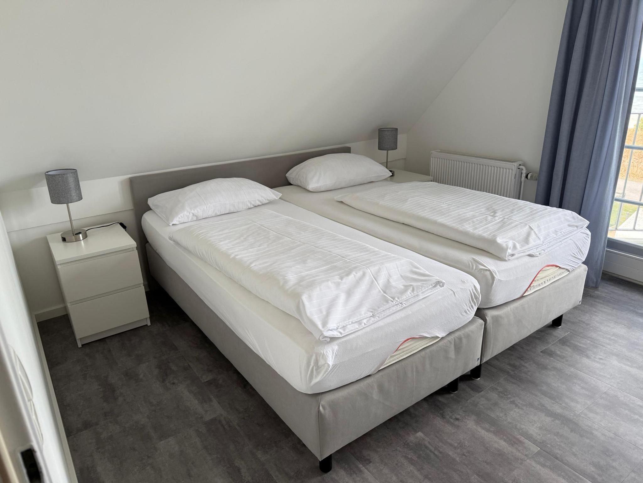 3 Zimmer (Wohnzimmer, 2 Schlafzimmer, Dusche/WC), Balkon (Seeseite), ca. 65 m² für 1 - 4 Personen