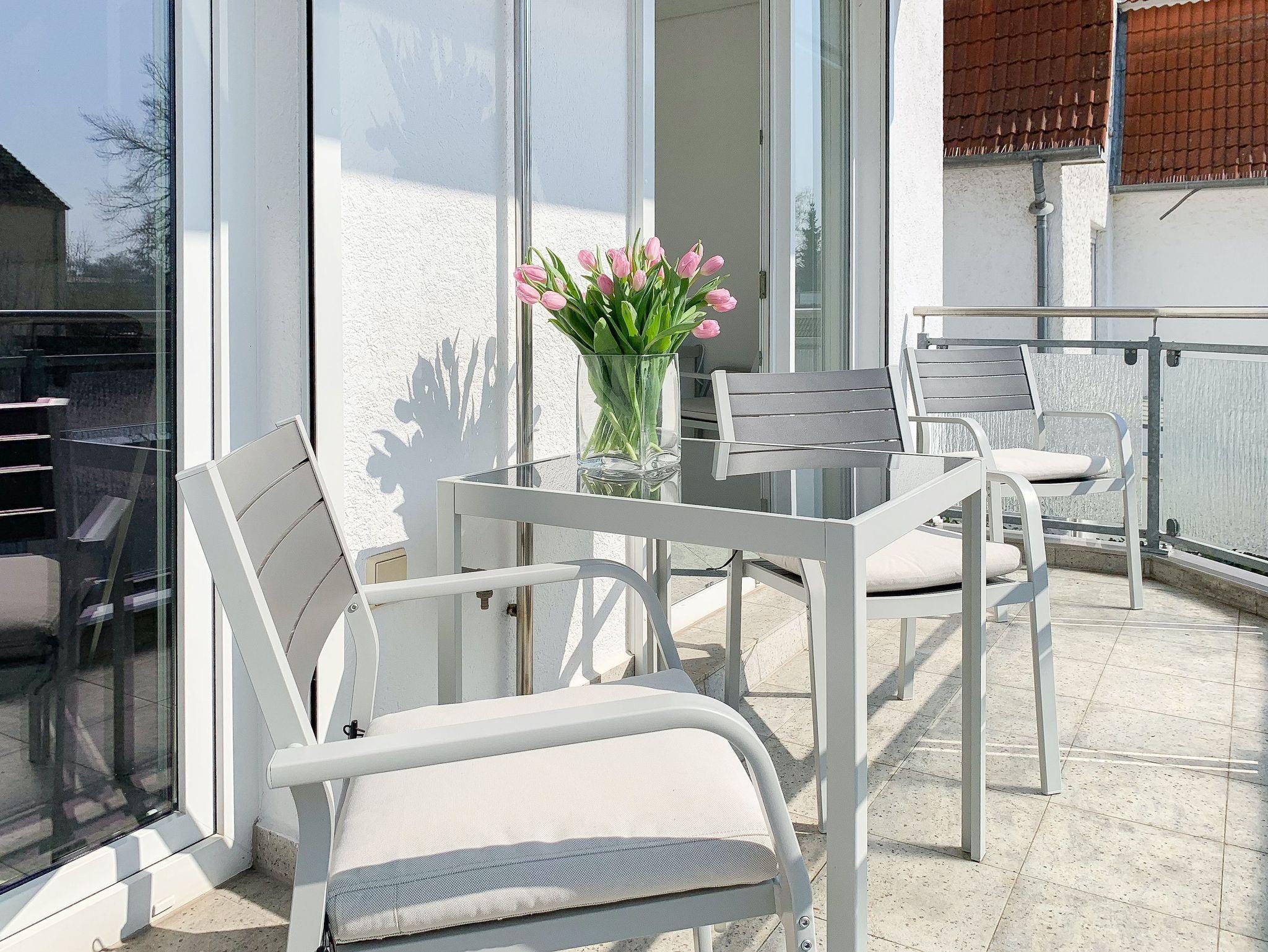 Die hochwertig eingerichtete und ausgestattete Wohnung befindet sich im ersten Obergeschoss und ist zum Südwesten ausgerichtet. Dadurch sind die Räumlichkeiten schön hell und auf den zwei Balkonen, die vom Schlafzimmer, Wohnzimmer und der Küche zugänglich sind, kann den ganzen Tag bis in die Abendstunden die Sonne genossen werden.