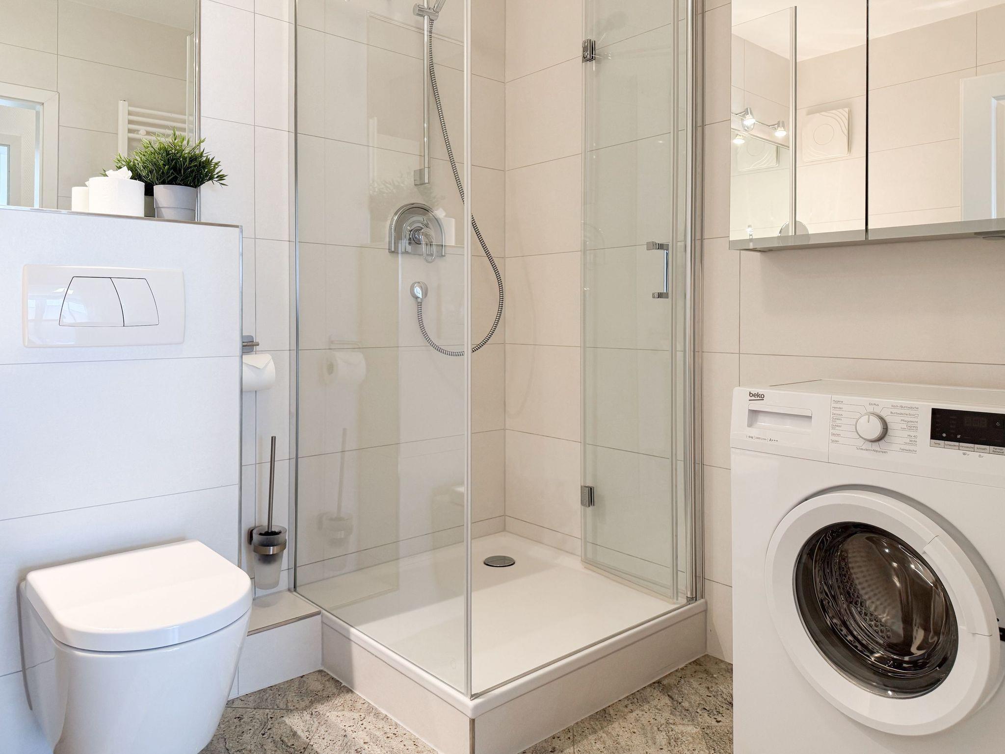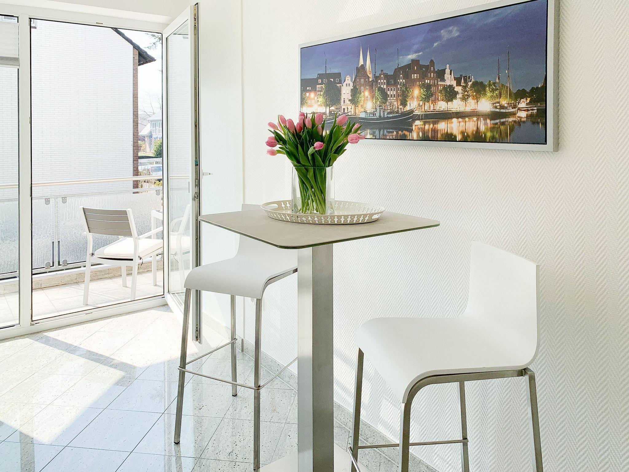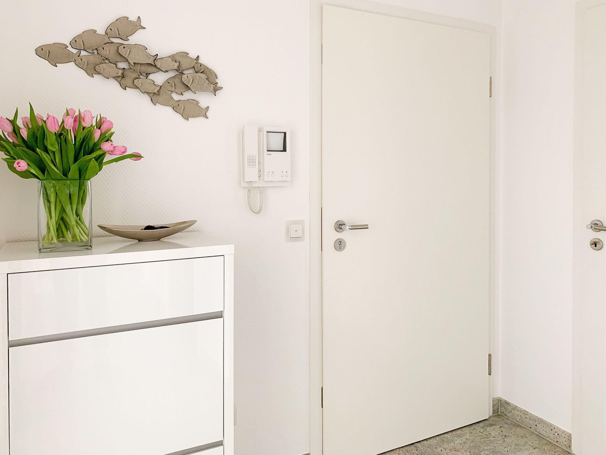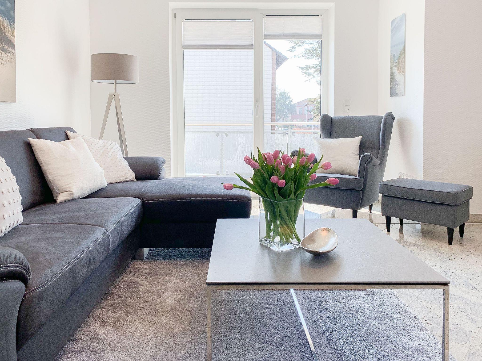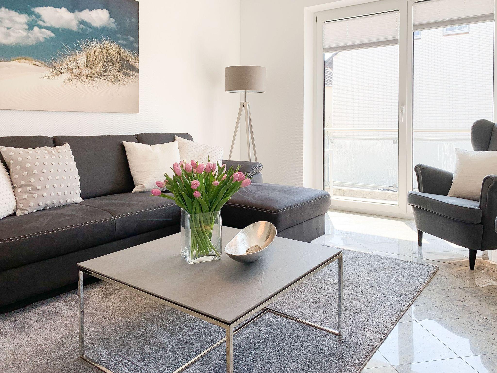 Mittelpunkt der Ferienwohnung ist der großzügige, geschmackvoll gestaltete Wohnbereich mit angrenzendem Essbereich, der 4 Personen ausreichend Platz bietet. TV, Radio, Bose Bluetooth Lautsprecher und kostenloser Internetzugang über WLAN sind selbstverständlich vorhanden. Die moderne, abgeschlossene Küche ist bestens ausgestattet und verfügt über alle technischen Geräte. Ein Bartisch mit zwei Stühlen dient als zusätzlicher Frühstücksbereich oder als Treffpunkt für gemeinsames Kochen. Zwei separate Schlafzimmer liegen[nbsp] ruhig zur straßenabgewandten Seite. Sie sind mit[nbsp] maßgefertigten Einbauschränken und elektrischen Außenjalousien ausgestattet. Das eine Schlafzimmer verfügt über zwei Einzelbetten (90x200), das andere über ein Doppelbett (180x200) und einen zusätzlichen TV. Das Bad ist mit einem weiteren Bluetooth Lautsprecher, Dusche, Waschtisch, WC, Handtuchwärmer und einer Waschmaschine ausgestattet.