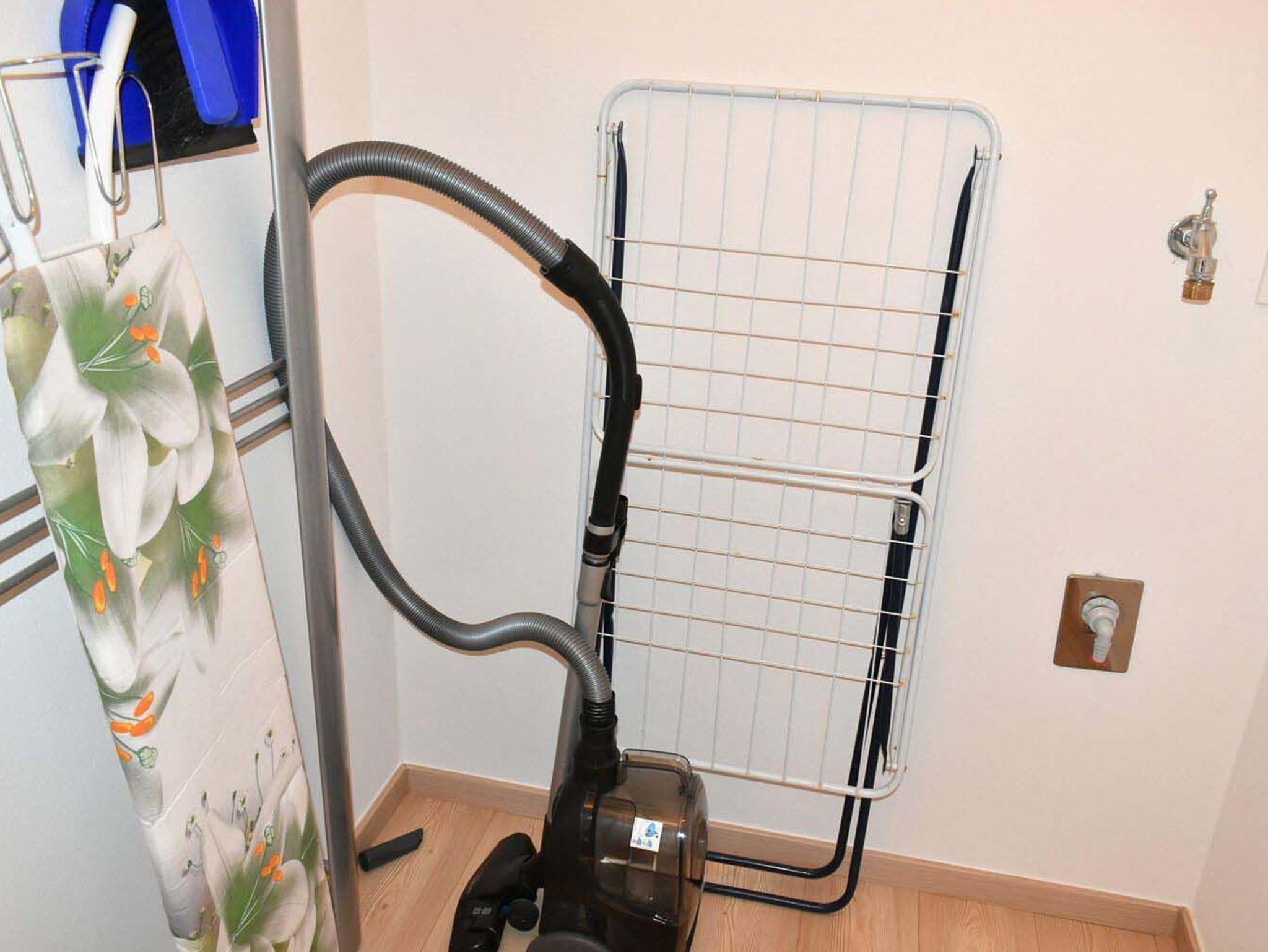 Abstellraum: Gardrobe, Staubsauger, Wäscheständer, Bügeleisen, Bügelbrett