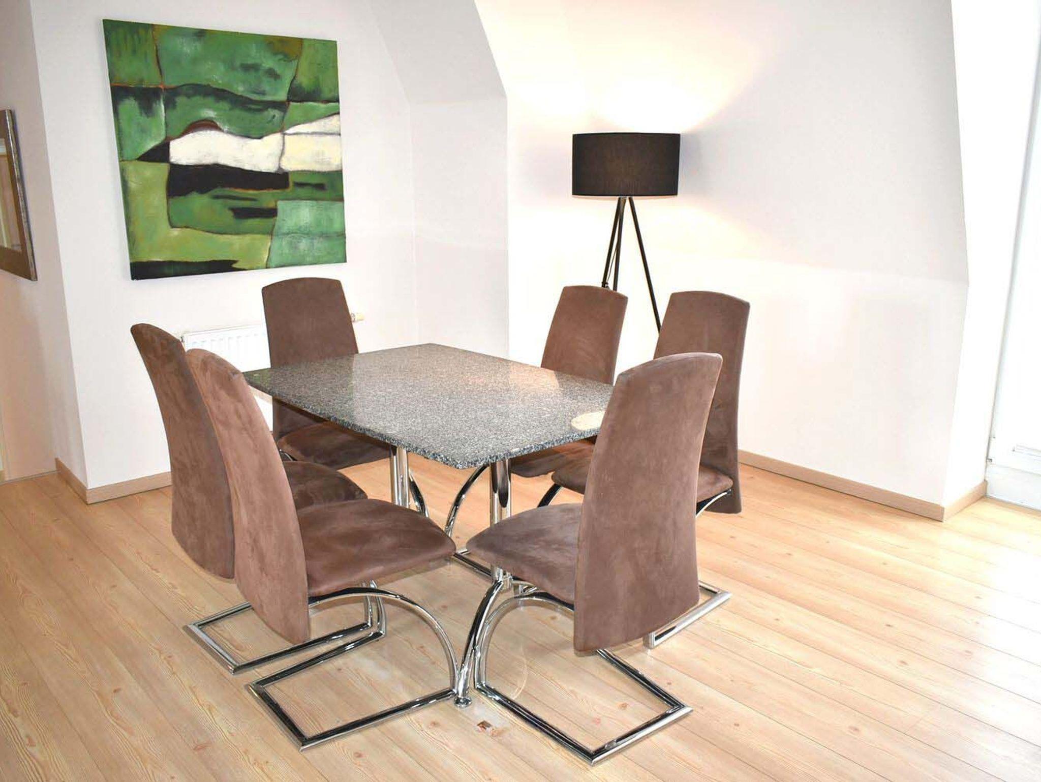 Terrasse: 10 Stühle, 2 Tische, Grosse Gemeinschaftsdachterrasse (39 qm) mit der Wohnung Nr.05! Jedoch direkter Zugang von der Wohnung, Nord- Ostlage
