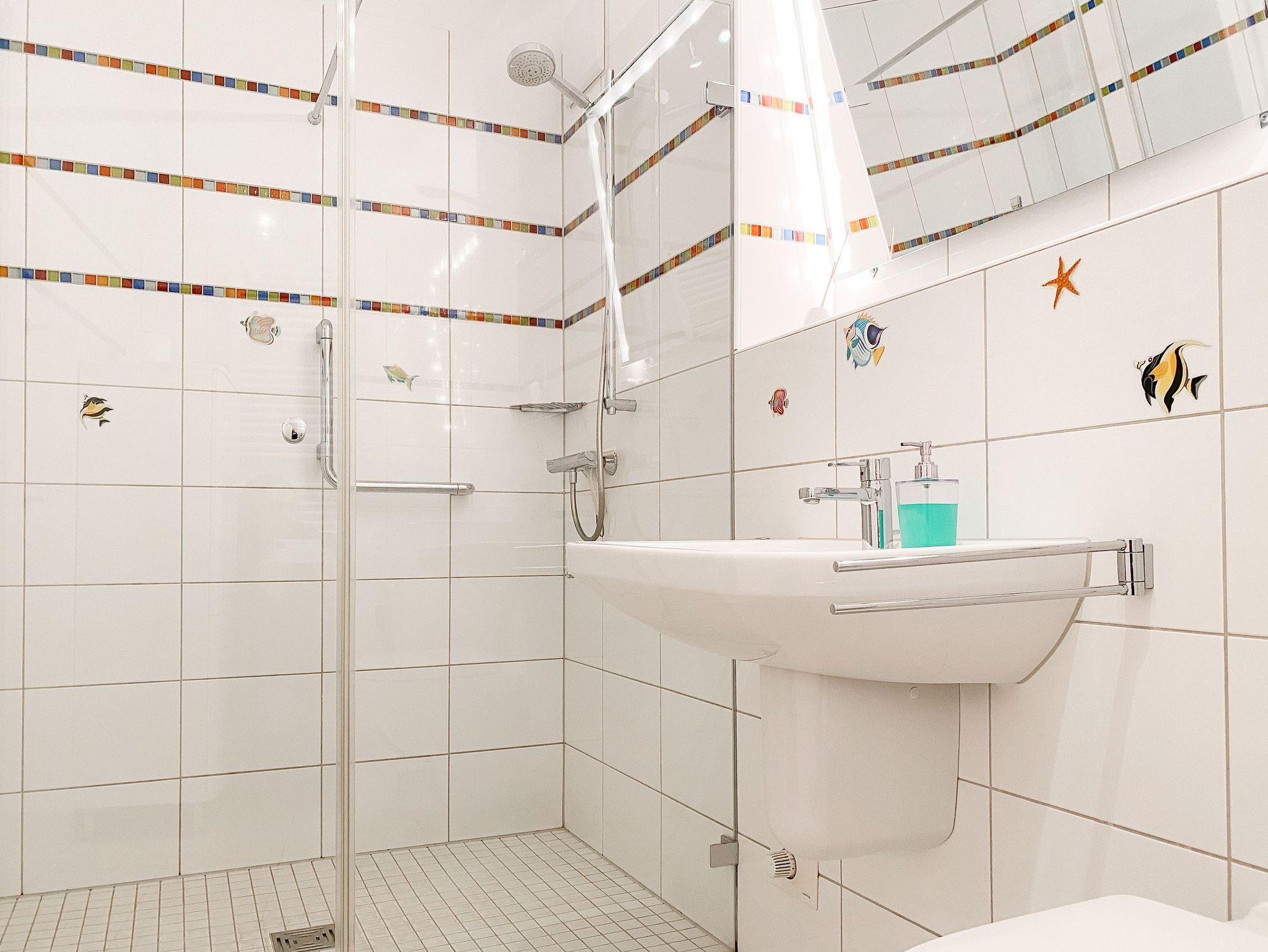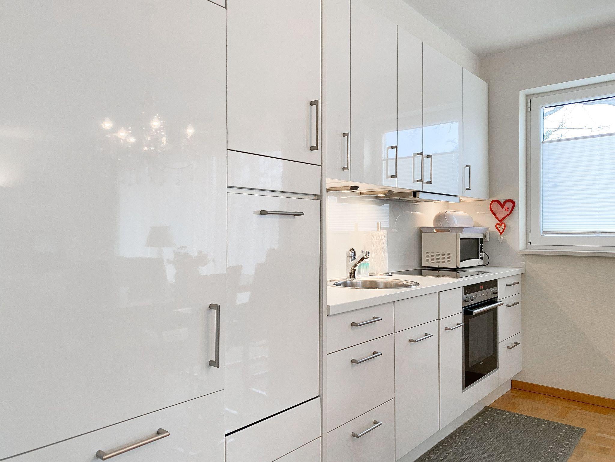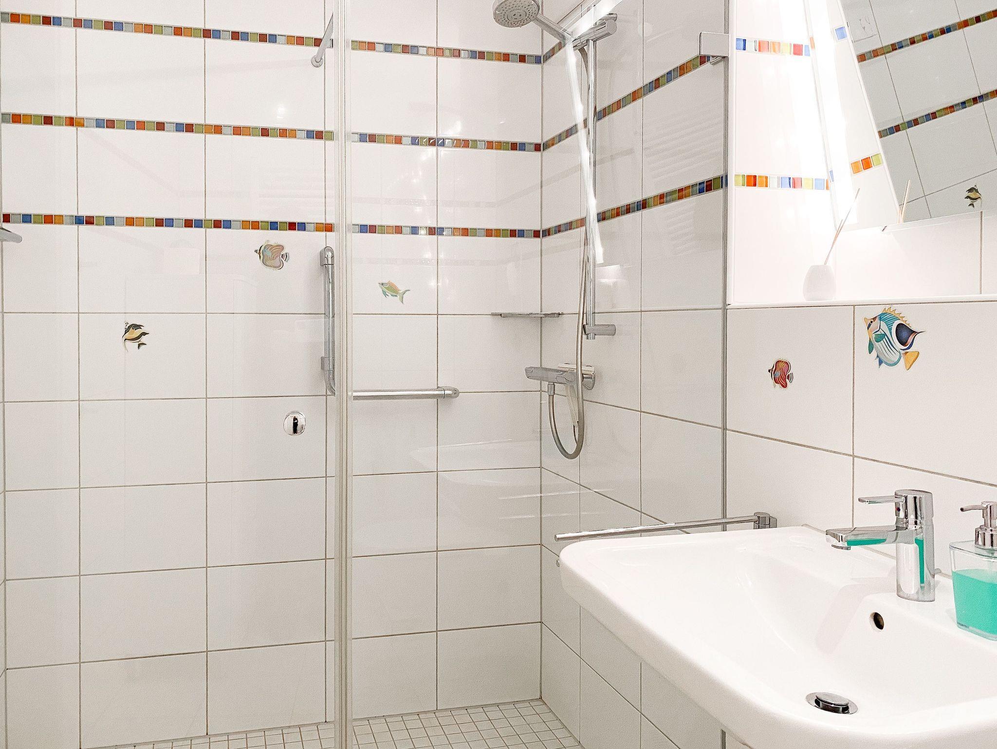 Die komfortable Wohnung im 2. Obergeschoss bietet mit 2 separaten Schlafzimmern, ausgestattet mit Doppelbett (180x200) mit elektrisch verstellbaren Rahmen und zwei Einzelbetten (90x200)[nbsp][nbsp]sowie 2 separaten Duschbädern ausreichend Platz für 4 Personen. In einem der Bäder ist zusätzlich eine Waschmaschine untergebracht. Es gibt eine offene, moderne Einbauküche mit Induktionsherd, Backofen, Mikrowelle, Geschirrspüler und einen großzügigen Essbereich für 6 Personen. Der anschließende Wohnbereich ist mit einer Ledergarnitur und einem Elektrokamin ausgestattet und eröffnet einen wunderschönen Ausblick über den gegenüberliegenden Park, teilweise durch das Grün bis zur Ostsee. Im Erker befindet sich ein gemütlicher Lesesessel. Auf dem vorgelagerten Balkon läßt sich wunderbar die Abendsonne bei einem Sundowner genießen. Ein kostenloser Internetzugang über WLAN steht zur Verfügung.