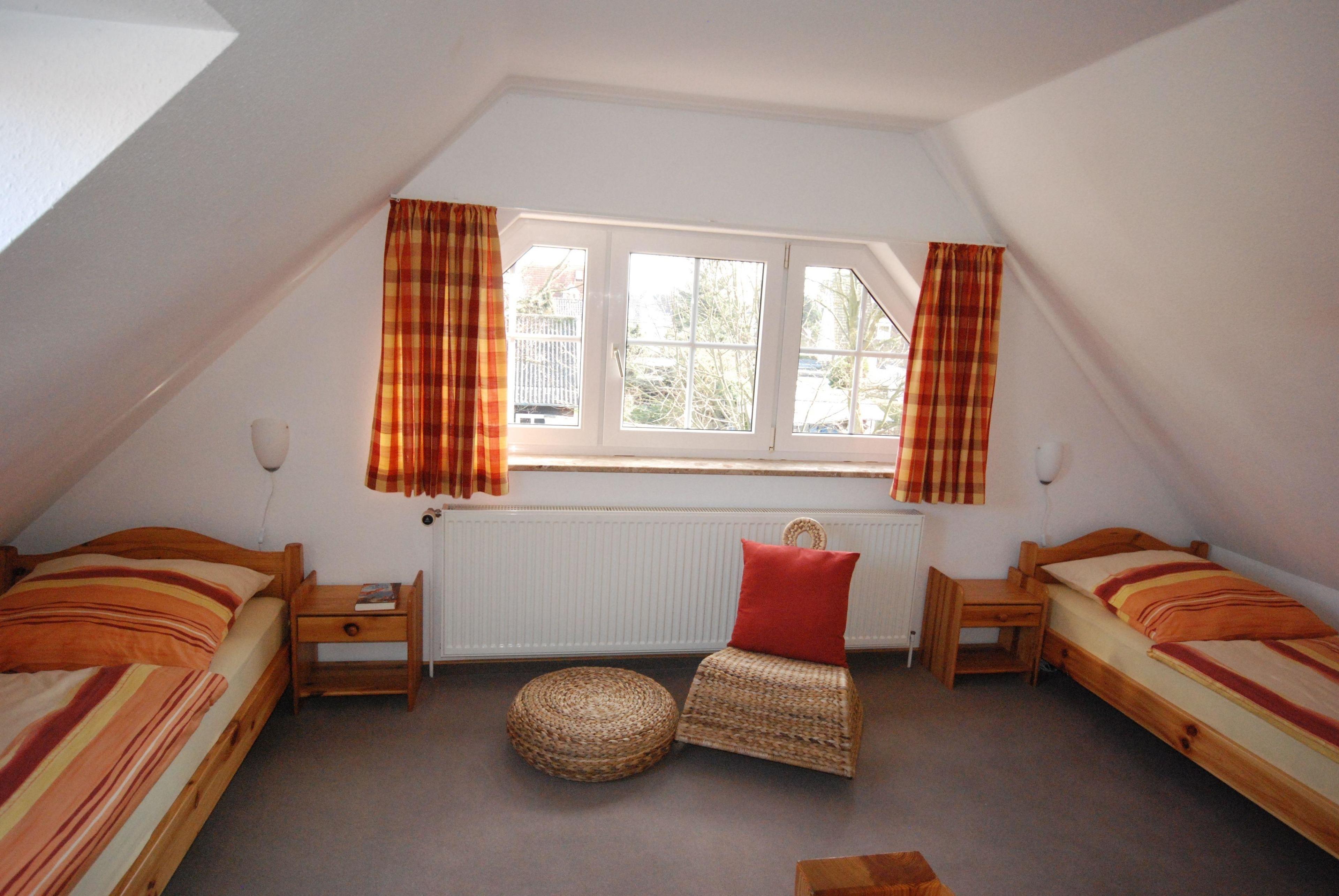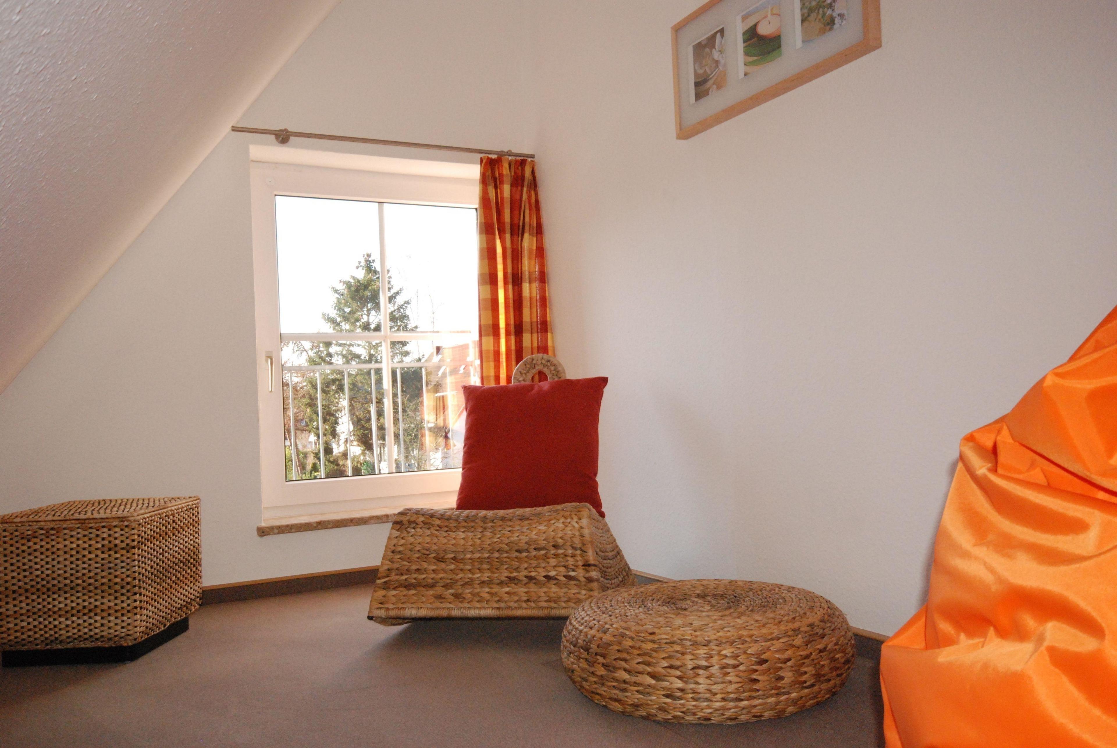 Das Appartement ist modern, freundlich und komfortabel ausgestattet. Außer dem Eltern-Schlafzimmer verfügt es auf der zweiten Etage über ein weiteres großes Schlafzimmer mit 3 Einzelbetten, welches über eine offene Treppe erreichbar ist. Das Zimmer bietet viel Platz für unsere kleinen Gäste und hat eine separate Spielecke.