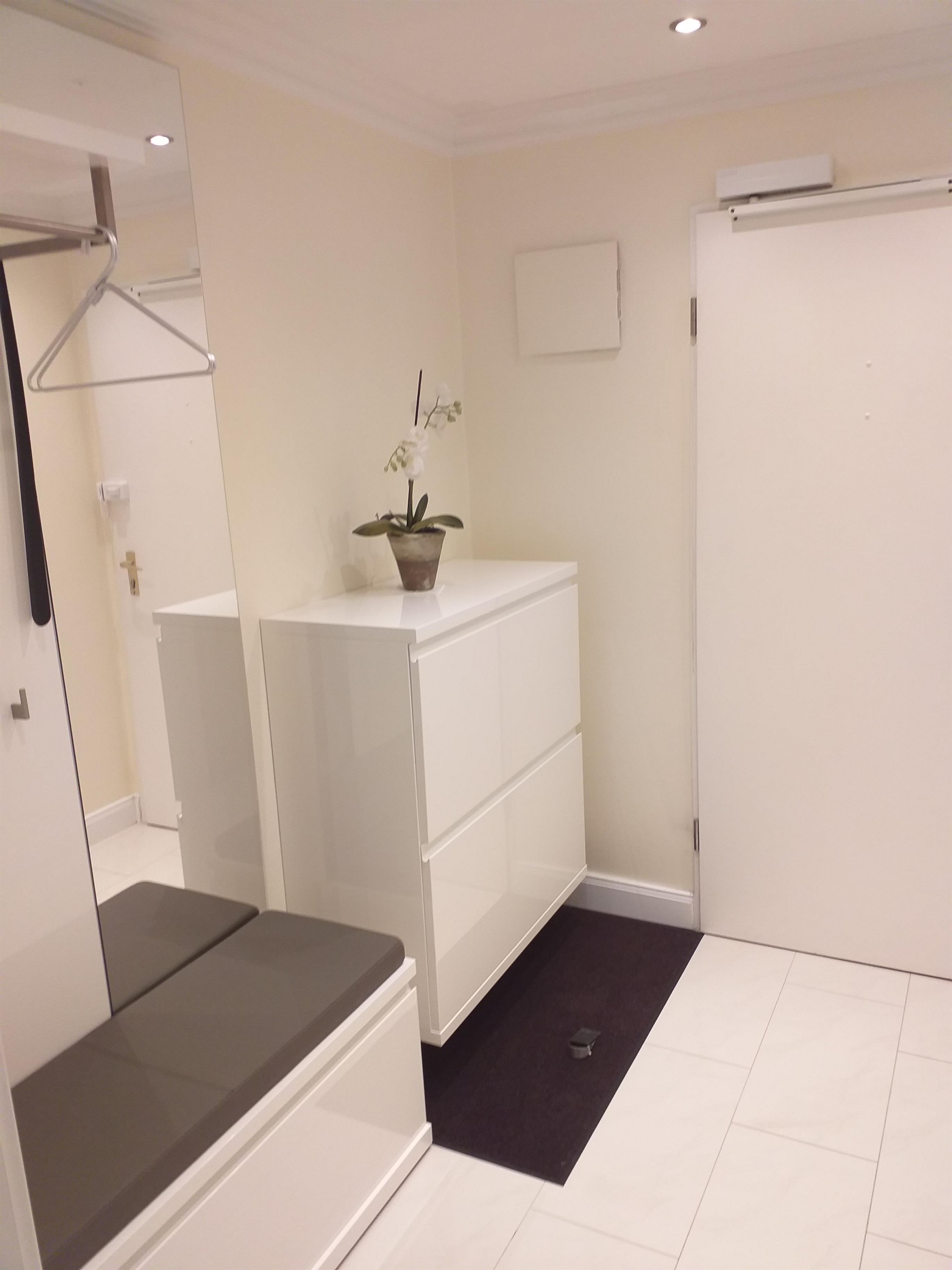 Das hochwertige Vollbad ist mit einer großen ebenerdigen Dusche, WC und einer geräumigen Ablagefläche eingerichtet. Ein Haartrockner ist selbstverständlich vorhanden.