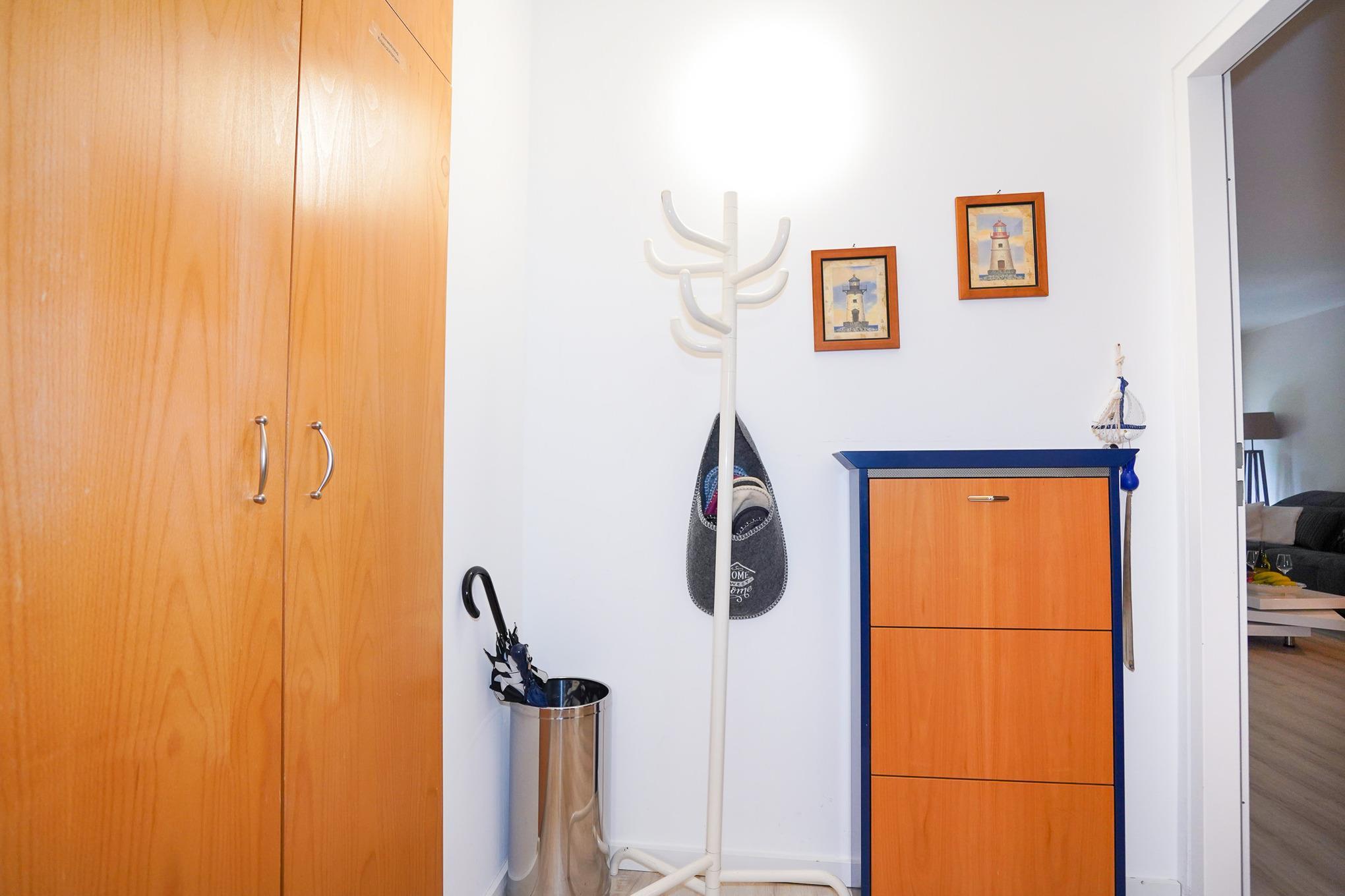 Das "Seglernest" wurde 2019 liebe- und geschmackvoll ausgestattet, mit 2 SZ, also ein "kleines" SZ mit 2 Einzelbetten und als 2. SZ eine ehemalige "Schlafnische" mit einem 180x200 cm Boxspringbett und großem Kleiderschrank abgetrennt vom WZ durch eine attraktive flexible Schiebewand, geräumigem WZ, offener Küche und großem Balkon zur SW-Seite, alles auf techn. neuestem Stand. Dazu zweckmäßiger Flur und hübsches Duschbad.