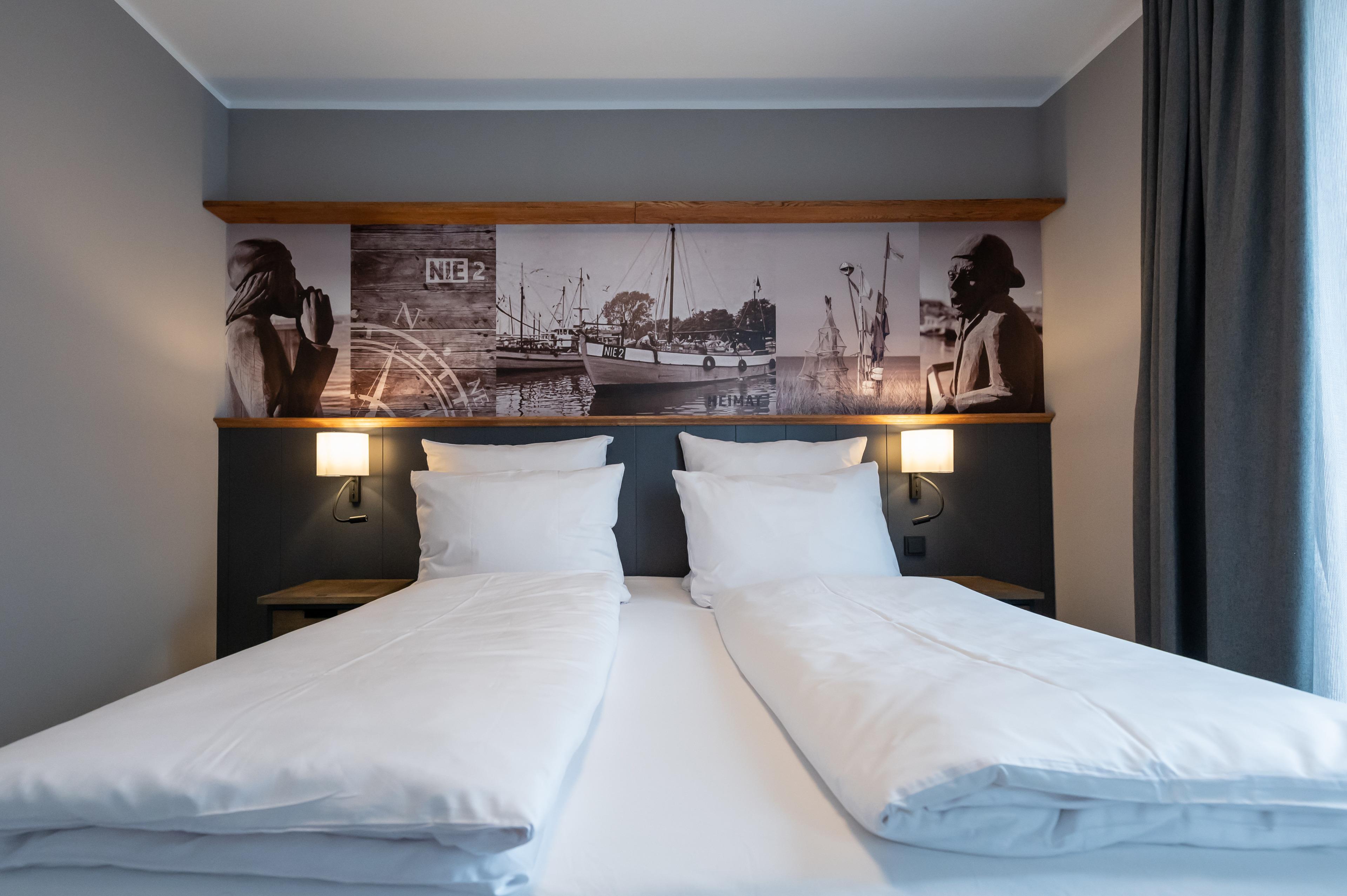Unsere großen Kajüten sind ganz im Stil der Region nordisch-maritim eingerichtet und verfügen jeweils über ein separates Wohn- und Schlafzimmer. Alle unsere Kajüten sind nach Fischkuttern benannt, die früher einmal im romantischen Niendorfer Hafen beheimatet waren.