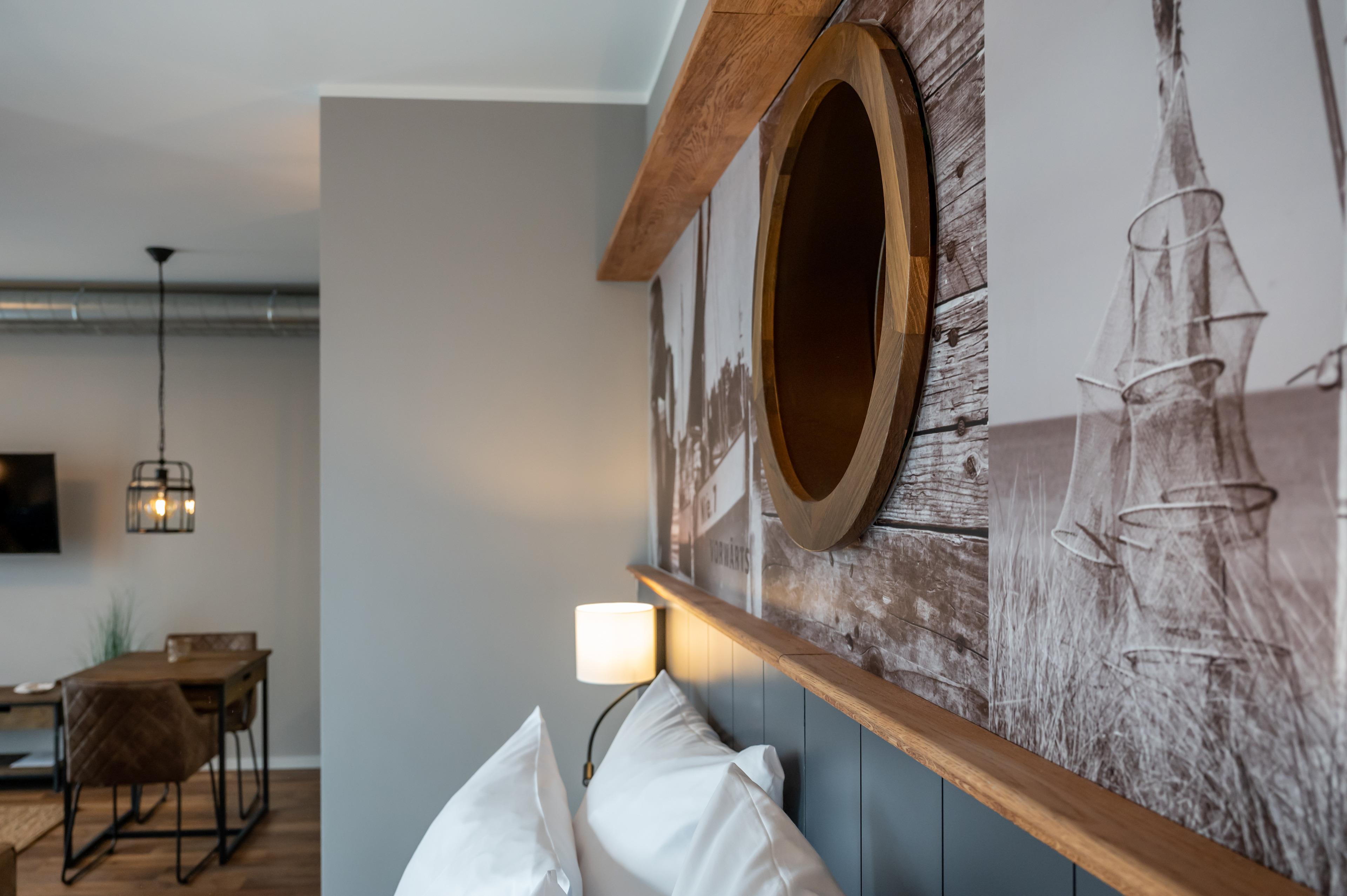 Unsere Vorwärts ist 39 m² groß, befindet sich im 1. Obergeschoss unseres Hauses und bietet Platz für 2 Personen im kombinierten Wohn- und Schlafbereich. Die Einrichtung dieser hochwertigen Ferienwohnung kombiniert die zeitgemäßen Loft- und Beachhousestyles ganz erfrischend und wird Ihren Aufenthalt unvergesslich machen.