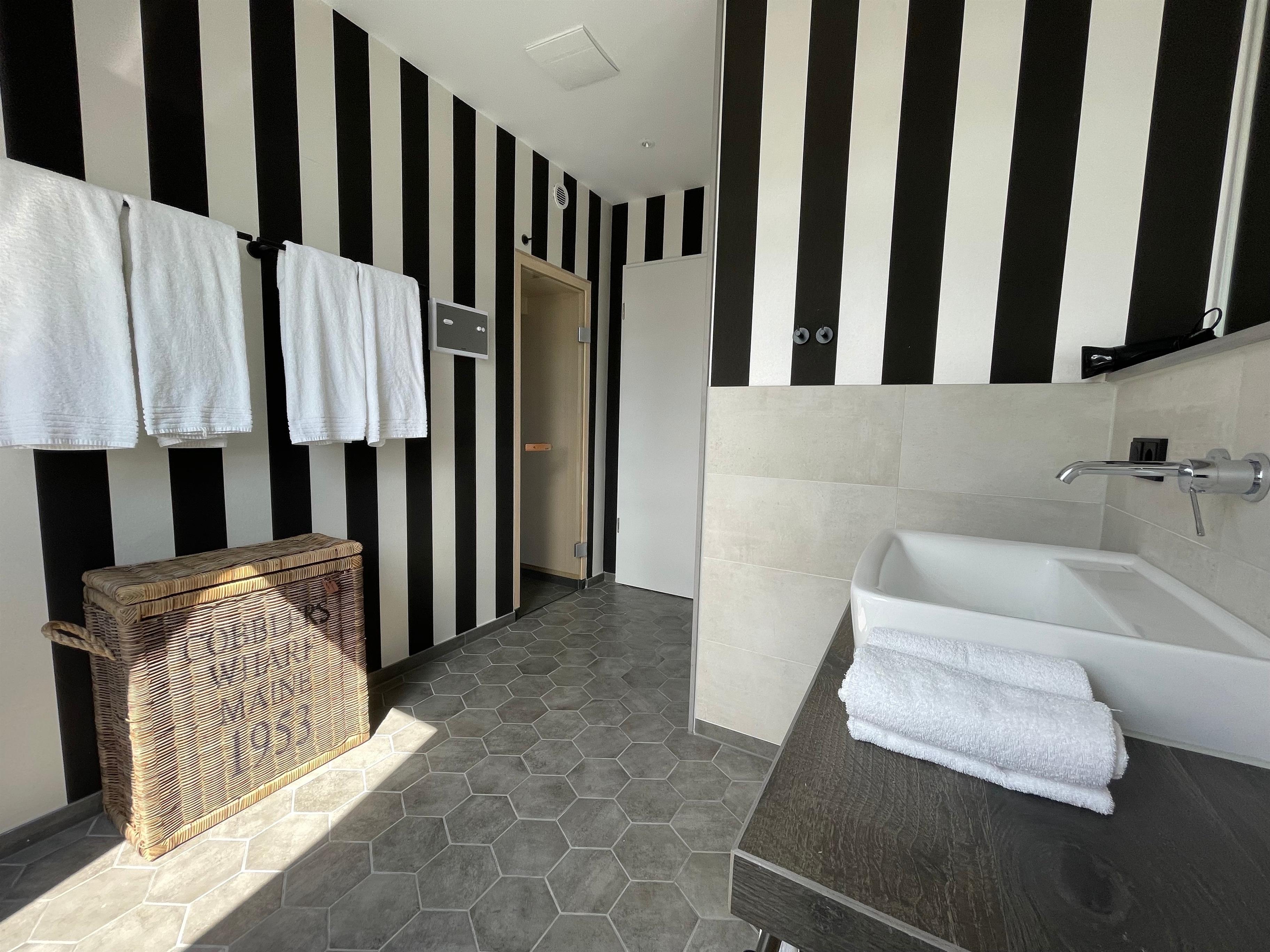 Sie betreten unsere Lotte durch einen Flur mit einer Garderobe. Vom Flur gehen das Wohnzimmer, das Schlafzimmer, ein Alkoven, ein separates WC sowie das Badezimmer ab. Im Wohnbereich befindet sich eine vollausgestattete Einbauküche mit Essbereich für vier Personen, ein kuscheliges Hussensofa, ein Sessel und ein Flachbild-TV. Vom Wohnzimmer aus kommen Sie auf den Balkon mit Süd-West-Ausrichtung, auf dem Sie ein kleiner Tisch und Stühle erwarten. Hier können Sie den ersten Kaffee des Tages oder am Abend einen erfrischenden Sundowner genießen. Das Schlafzimmer verfügt über ein gemütliches Boxspringbett, zwei große Kleiderschränke mit einem Zimmersafe und einen Flachbild-TV. Entschleunigen können Sie im separaten Badezimmer mit integriertem Internet-Radio, Badewanne, einer Regendusche sowie als Highlight in der eigenen finnischen Sauna von Klafs. Die hochwertige Einrichtung umfasst u. a. Möbel von Riviera Maison. Ein kleiner Abstrellraum rundet die Wohnung ab.