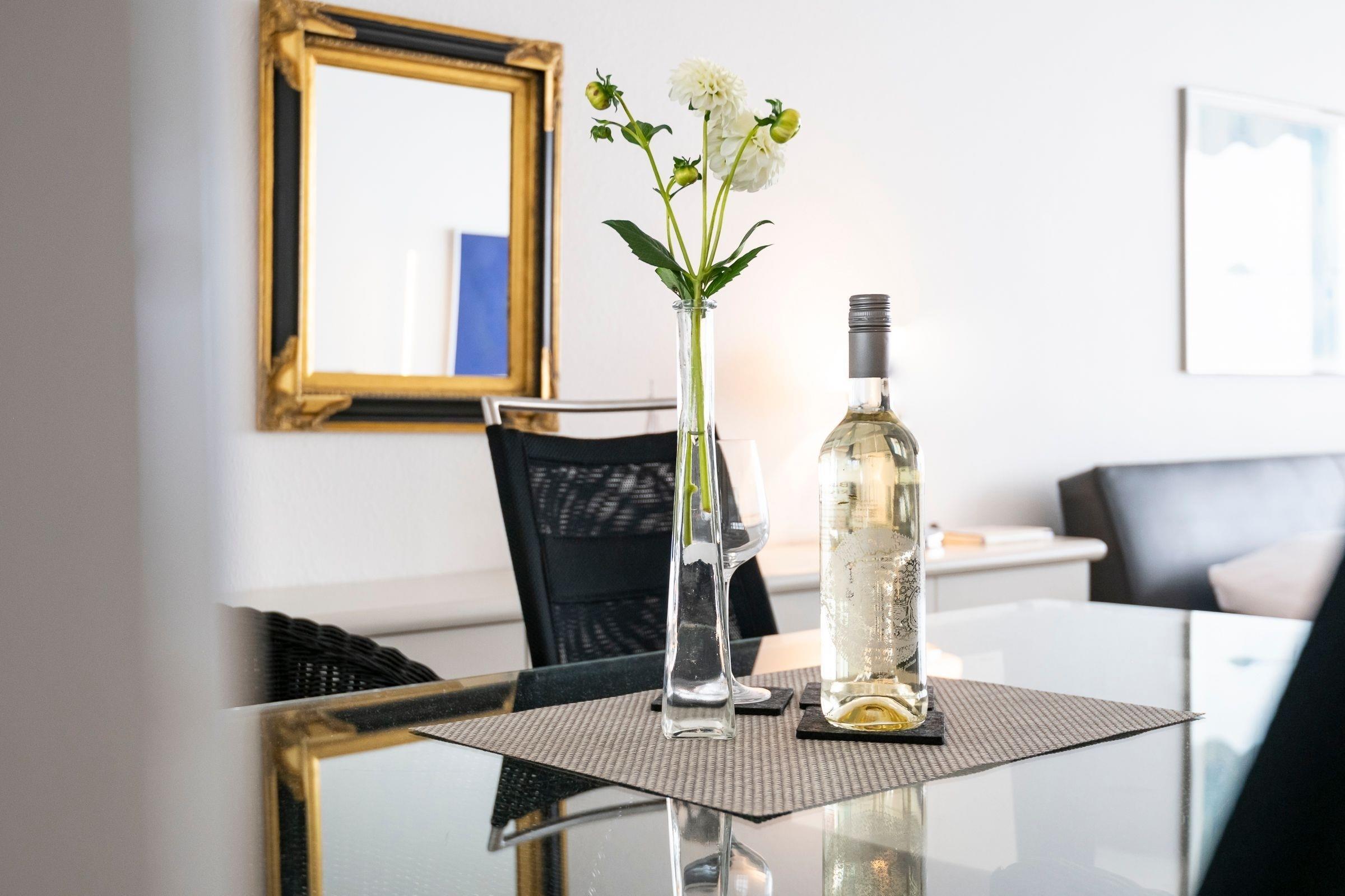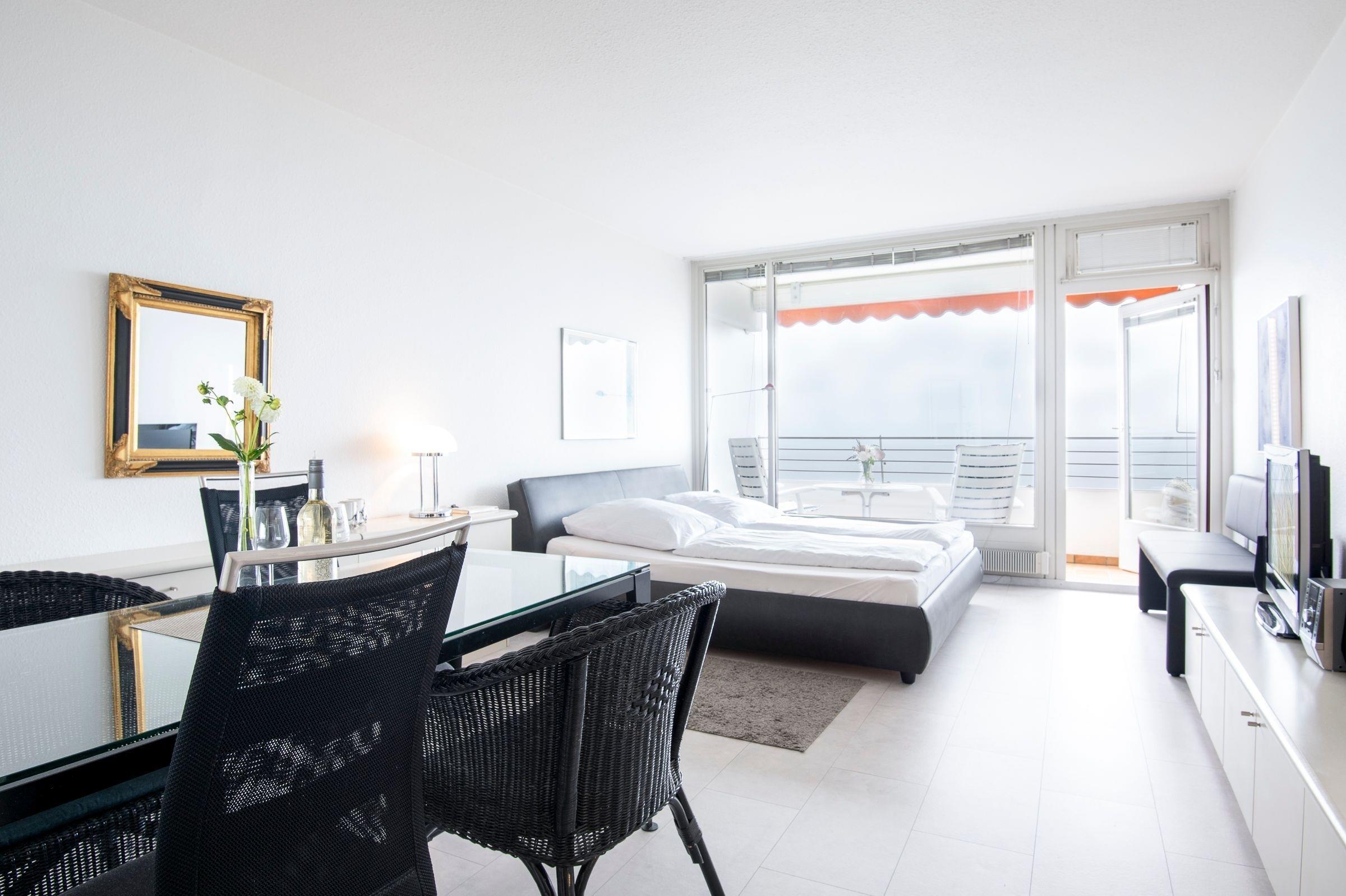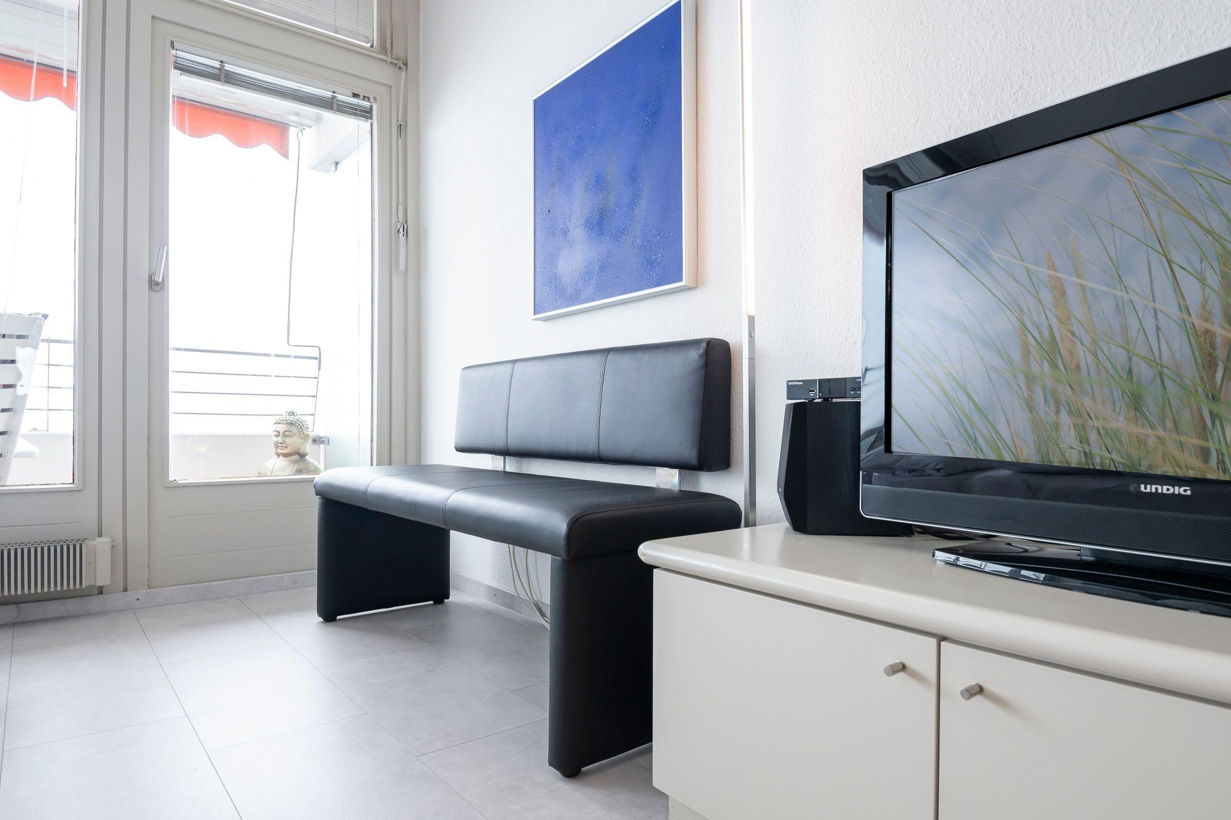 Das geschmackvoll eingerichtete 1-Zimmer-Appartement für bis zu 2 Personen verspricht Ruhe und Erholung über den Dächern von Timmendorfer Strand. Genießen Sie den fantastischen Meerblick schon morgens beim Aufwachen, denn das komfortable Doppelbett (2x 90x200 cm) steht direkt neben der großen Fensterfront. Auf dem möblierten Balkon können Sie dann bei einer frischen Tasse Kaffee den Tag planen. Sollte die Sonne Sie zu sehr kitzeln, sorgt eine Markise für angenehmen Schatten. Sie haben die Wahl - bereiten Sie sich Ihr Frühstück in der kleinen gut ausgestatteten Küche zu oder lassen Sie sich im Hotelrestaurant am Frühstücksbuffet verwöhnen (excl.). Im Badezimmer mit Badewanne und Fön und besonderem Design starten Sie erfrischt in den Urlaubstag. Der Fernseher verfügt über Magenta TV und der WLAN-Anschluss ist inklusive.