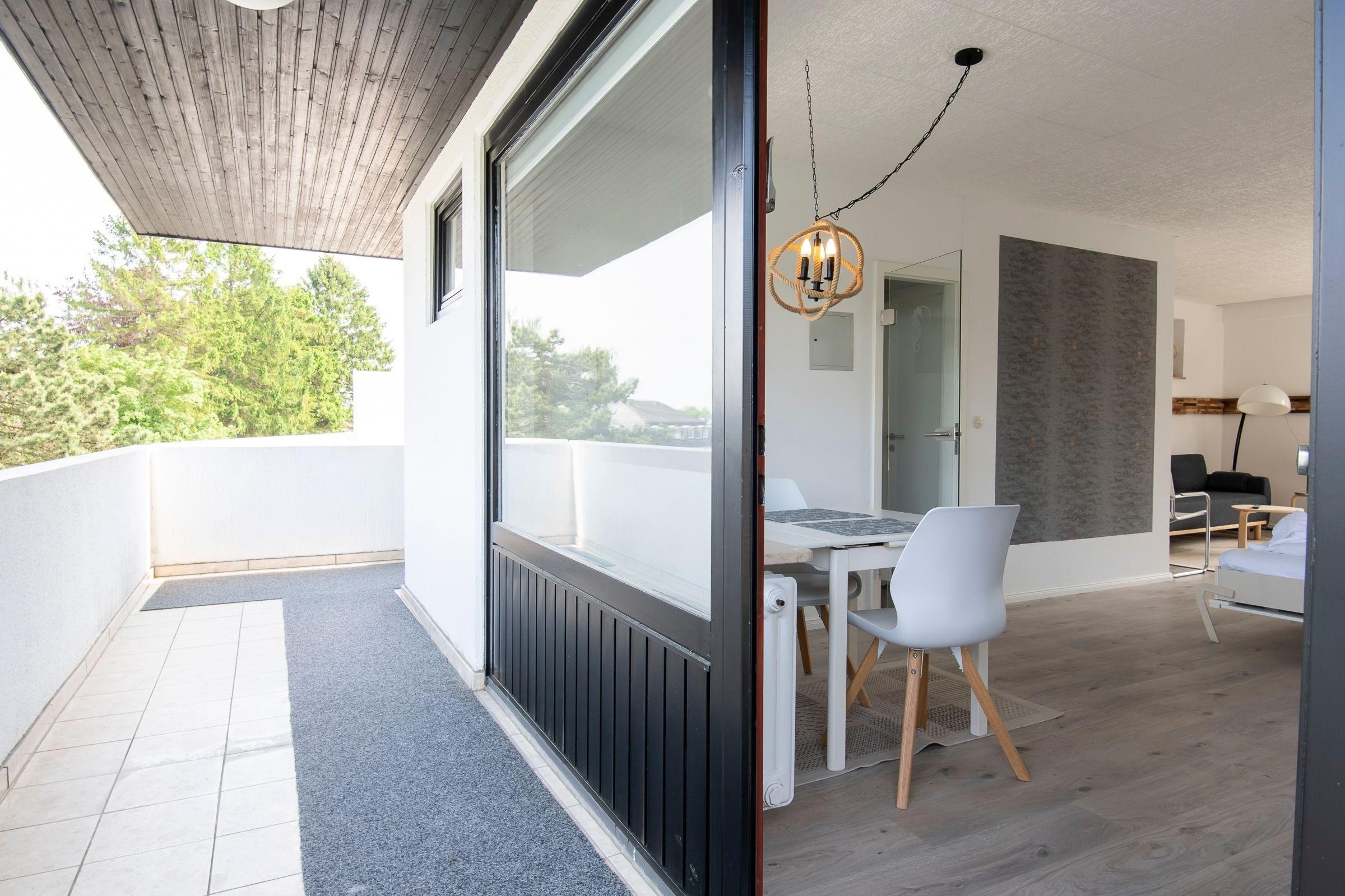 Das Wohnzimmer ist ausgestattet mit einer bequemen Couch (100x200 cm), die zur Nacht als Schafgelegenheit dient. Über der Couch (hinter der Holzumrandung) wurde eine dimmbare Hintergrundbeleuchtung angebracht. Zudem bietet diese Wohnung ein komfortables Schrankbett (160x200 cm), welches am Tag mit wenigen Handgriffen platzsparend hochgeklappt werden kann. Als Ausweichschlafplatz kann das Schlafsofa genutzt werden. WLAN, ein Smart-TV sowie ein CD-Player und ein Radio sorgen für gute und musikalische Unterhaltung Ihres verdienten Ostseeurlaubs. Die Küche ist separat und verfügt über ein Induktionskochfeld mit 2 Platten, Kühlschrank sowie Gefrierfach und sogar eine Spülmaschine. Auch im Badezimmer mit Fenster, Handtuchheizung, Fön und ebenerdiger Dusche fehlt es Ihnen an nichts. Ein Highlight dieses Feriendomizils ist die umlaufende Dachterrasse mit einem Tisch und verstellbaren Sonnenliegen. Von dort aus können Sie den ganzen Tag die frische Ostseeluft schnuppern.