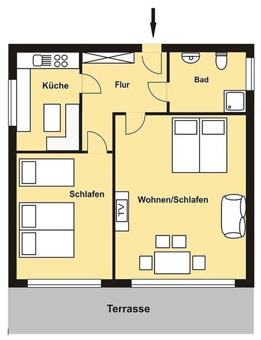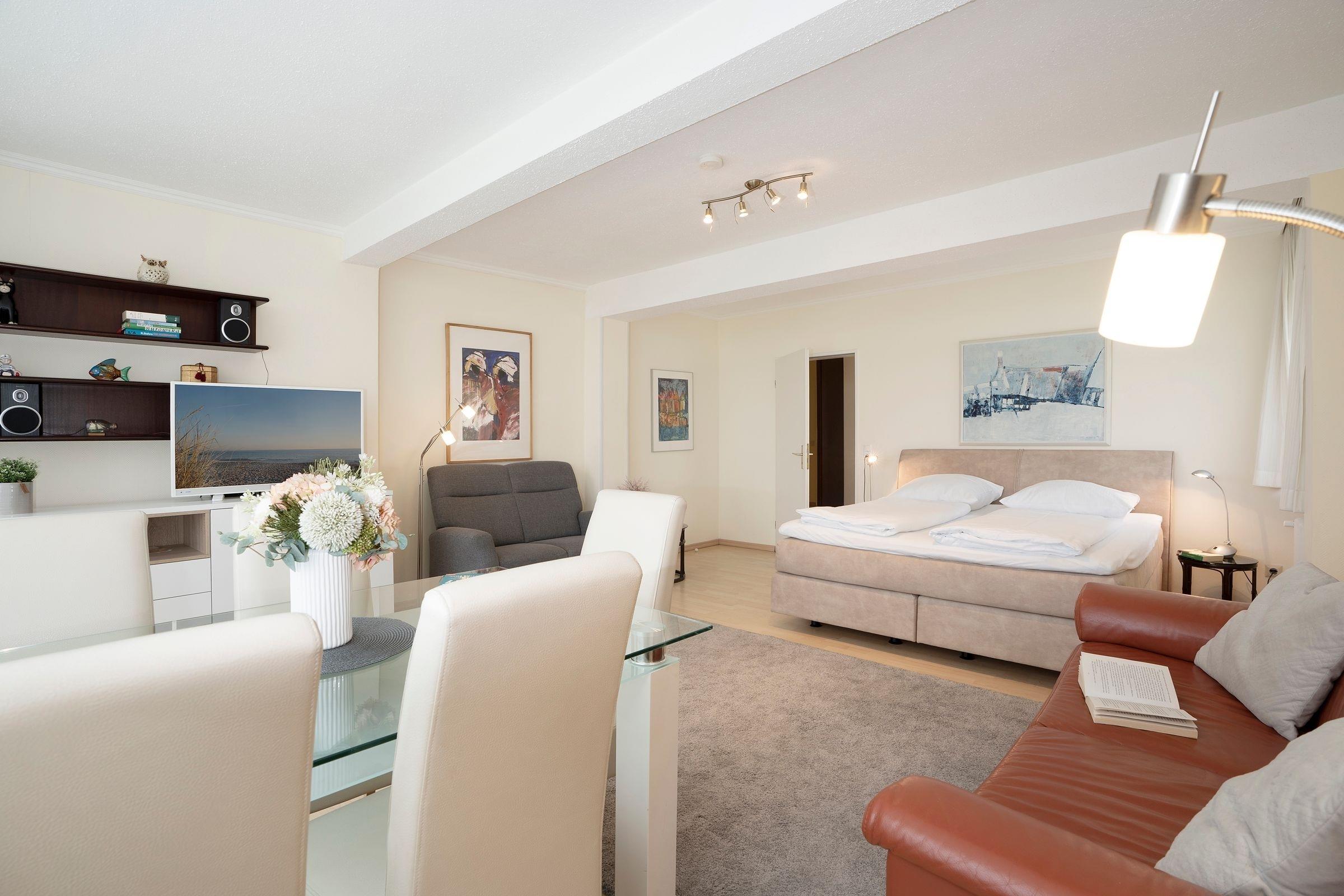 Großzügige 2-Zimmer-Ferienwohnung in der ersten Reihe zum Strand in Timmendorfer Strand für bis zu 4 Personen im Erdgeschoss mit Terrasse und einer Wohnfläche von ca. 58 m².
