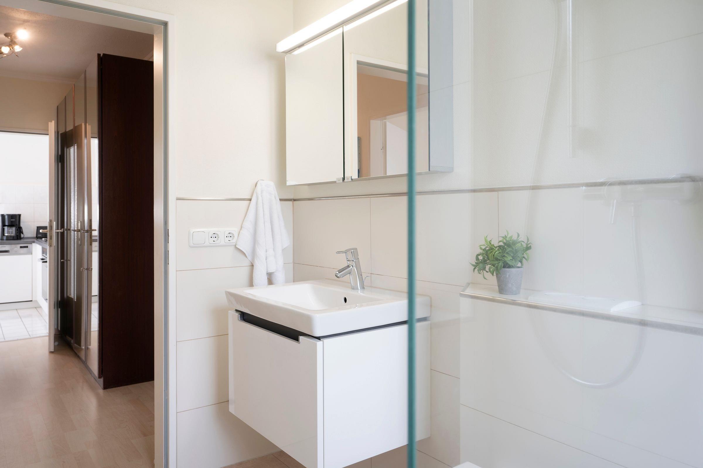 Stellen Sie sich vor, Sie sitzen auf der Terrasse und hören die Wellen der Ostsee rauschen – dieser Traum kann wahr werden. Diese helle Ferienwohnung befindet sich in der Wohnanlage Haus Seepferdchen am Meer – und ist nur rund 10 Meter vom Ostseestrand entfernt. Kommen Sie rein, Ihr Urlaub kann beginnen. Das kombinierte Wohn-/Schlafzimmer empfängt Sie im hinteren Bereich mit einer gemütlichen Polster-Garnitur mit Smart-TV sowie einer Ess-Ecke direkt am großen Fenster. Hier haben Sie auch Zutritt auf die möblierte Terrasse, wo Sie herrlich entspannen können. Im vorderen Bereich des Zimmers steht für die Nacht ein komfortables Boxspringbett (180x200 cm) bereit, zudem haben Sie hier genügend Platz, um ein Kinderreisebett dazu zu stellen. Eine weitere schöne Schlafmöglichkeit bietet das separate Schlafzimmer, auch hier befinden sich ein bequemes Boxspringbett (180x200 cm), ein TV-Gerät und genug Platz für ein Kinderreisebett. Ein großer Kleiderschrank steht Ihnen im Flur zur Verfügung. Die separate Küche verfügt über eine Spülmaschine und eine kleine Ess-Ecke. Probieren Sie hier gemeinsam neue Rezepte der Region aus und freuen Sie sich über Ihre freie Zeit. Das moderne Duschbad mit Fenster lässt Sie prima in den neuen Tag starten.