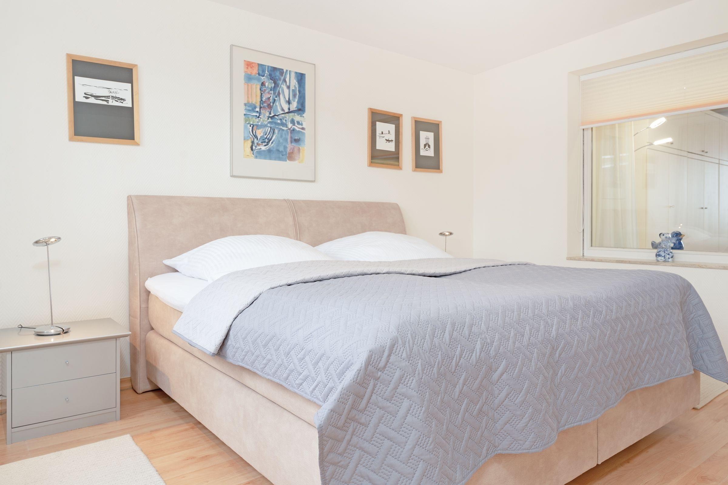 Stellen Sie sich vor, Sie können von Ihrem Wohnzimmer aus die Ostsee sehen ... in dieser gemütlichen Wohnung in der Wohnanlage Haus Eva Mar am Meer ist dies möglich. Das Besondere: der Strand dazu ist auch nur rund 20 Meter entfernt. Das großzügige Ferienobjekt bietet Ihnen viel Platz zum Erholen. Angefangen mit dem Wohnzimmer: Die gleich zwei kuschelige Polster-Garnituren laden zum netten Beisammensein ein. Führen Sie hier interessante Gespräche oder lassen Sie sich vom TV-Gerät unterhalten. Auch in der Ess-Ecke können Sie angenehm zusammensitzen. Bei schönem Wetter können Sie entspannt auf der großzügigen Terrasse mit direktem Zugang auf den davor liegenden Gemeinschaftsgarten verweilen. Im Wohnzimmer haben Sie genügend Platz, um ein Kinderreisebett unterzubringen. Die beiden weiteren Schlafzimmer verfügen jeweils über ein Boxspringbett (180x200 cm) und auch hier besteht jeweils die Möglichkeit, ein Kinderreisebett aufzustellen. Ein Schlafzimmer davon ist übrigens ein Durchgangszimmer. Die separate, geräumige Küche ist gut ausgestattet. Bereiten Sie hier nach Herzenslust Ihre Lieblingsmahlzeiten zu oder probieren Sie neue Rezepte aus. Eine Spülmaschine erledigt im Anschluss den Abwasch. Das Duschbad mit Fenster und Handtuchwärmer bringt Sie gut in den neuen Urlaubstag.