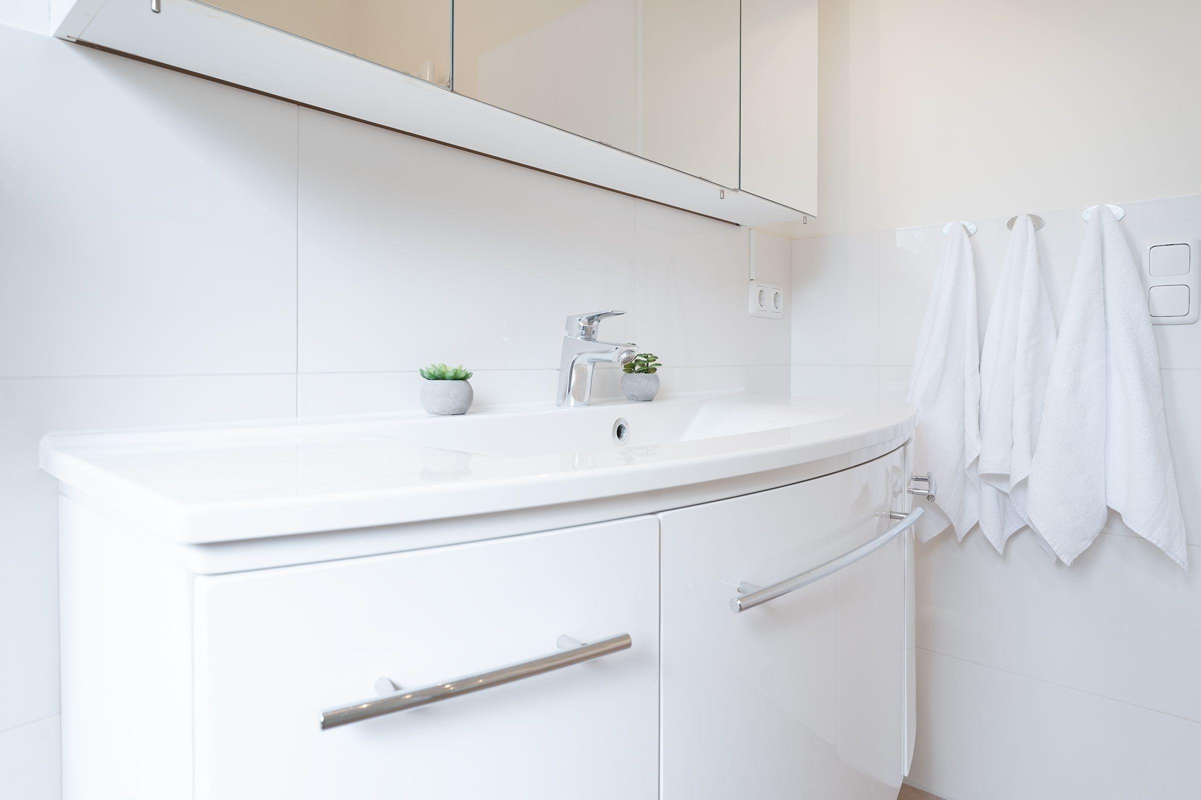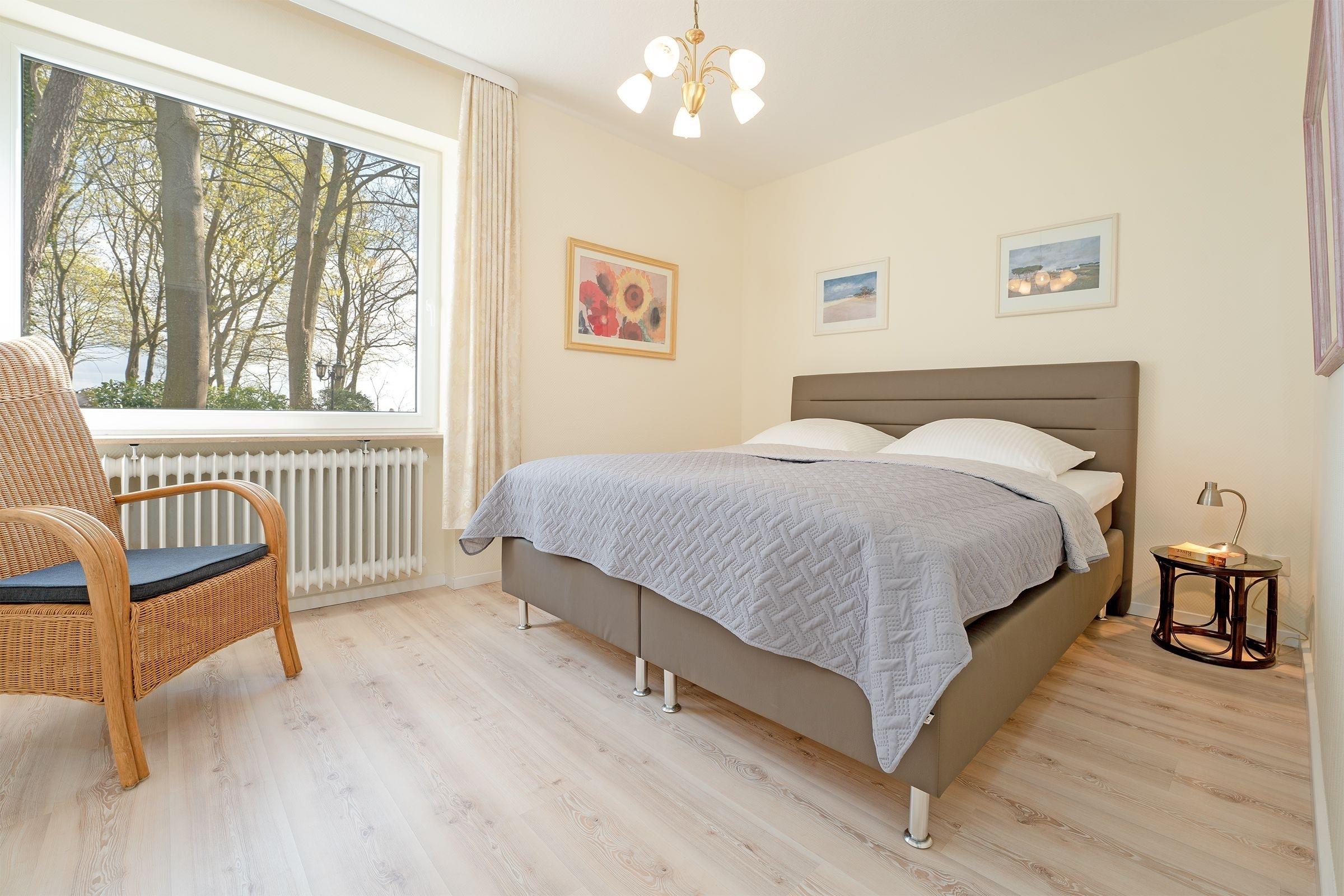 Frühmorgens fast allein am Strand spazieren gehen – das bietet Ihnen diese zauberhafte Ferienwohnung in der Wohnanlage Haus Eva Mar am Meer. Der Ostseestrand ist nur rund 20 Meter entfernt. Auch in der Ferienwohnung selbst ist die Ostsee ganz nah: Vom Wohnzimmer- und vom Schlafzimmer aus können Sie einen Blick auf die Ostsee erhaschen. Aber kommen Sie erst einmal an, packen Sie aus und machen Sie es sich im Wohnzimmer gemütlich. Ein TV-Gerät sorgt für die passende Unterhaltung. Nach einem tollen Tag am Strand steht Ihnen für die Nachtruhe im Wohnzimmer ein bequemes Schrankbett (2x 90x200 cm) zum Ausklappen zur Verfügung. Auch im separaten Schlafzimmer kann man im Doppelbett (180x200 cm) wunderbar von der Ostsee träumen. Hier befindet sich auch ein großer Kleiderschrank. Die separate Küche präsentiert sich mit heller, moderner Front und lässt die Herzen von Hobby-Köchen sicher höher schlagen. Bereiten Sie hier Ihre Urlaubsmenüs zu, eine Geschirrspülmaschine erledigt im Anschluss den Abwasch. In dem komfortablen Duschbad mit Fenster können Sie wunderbar in den neuen Urlaubstag starten.