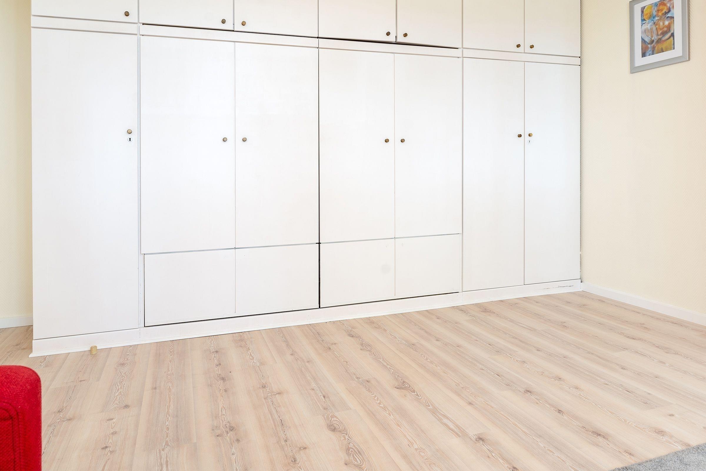 Schlafzimmer: 1 Boxspringbett (180x200 cm), Kleiderschrank, Sichtschutz: Gardine, Platz für Babybett vorhanden