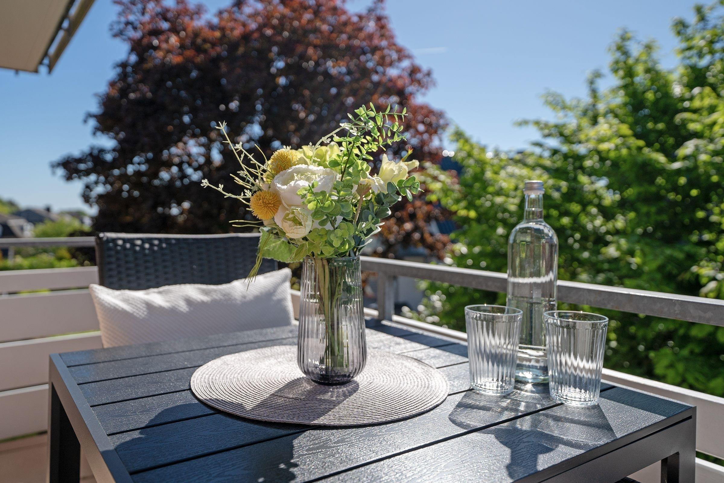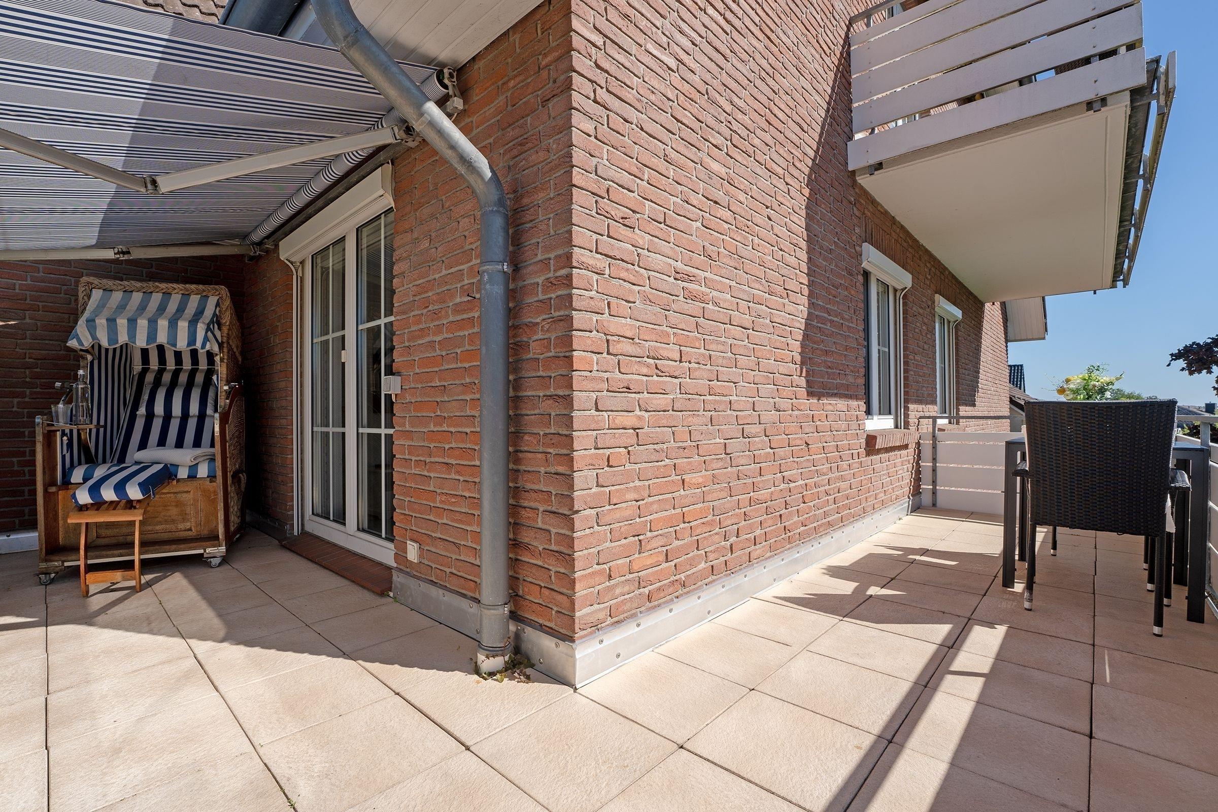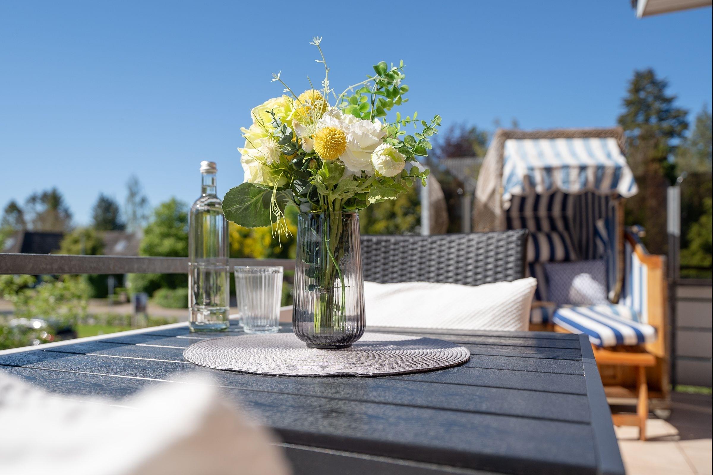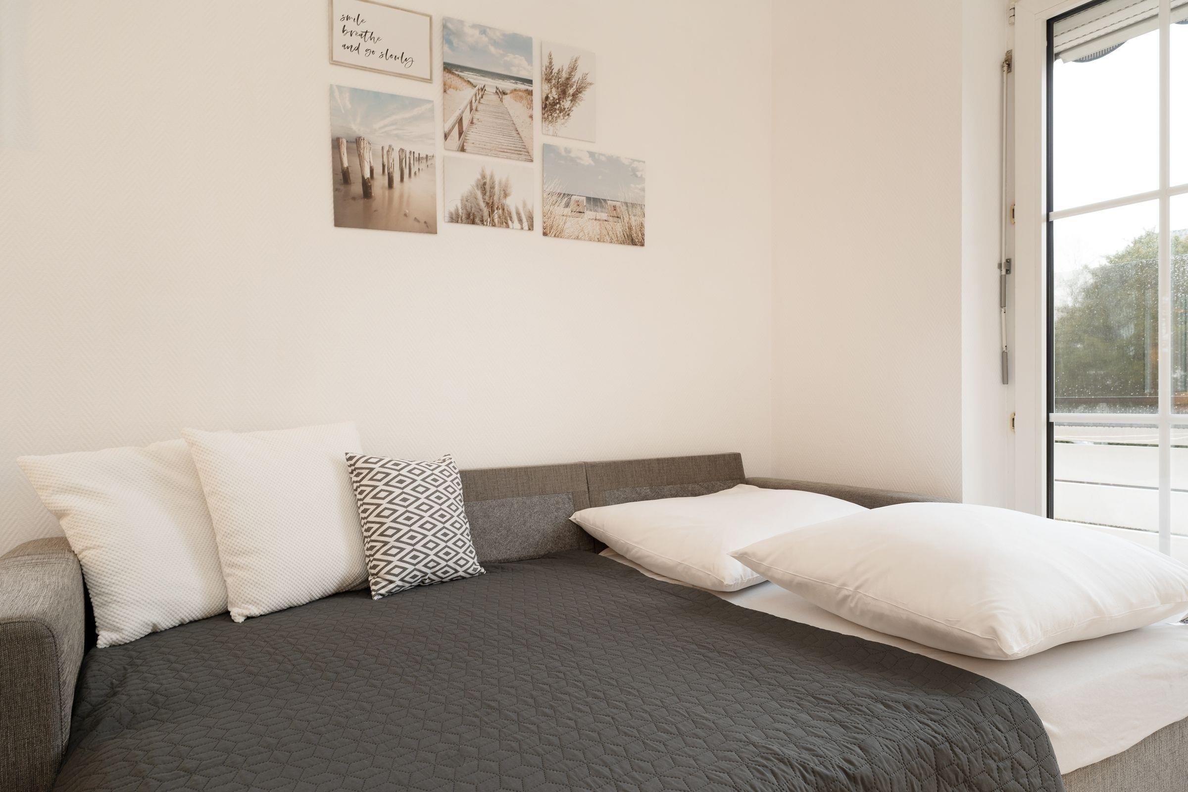 Frühstück im Strandkorb auf dem Balkon – was für ein perfekter Start in den Tag. Die schöne Ferienwohnung Jankar in dem gepflegten Ferienwohnhaus Windrose macht dies möglich. Doch der überdachte Balkon lädt nicht nur morgens zum Verweilen ein. Sicher wird Sie auch der liebevoll eingerichtete Wohnbereich begeistern. Die offene Küche präsentiert sich modern mit Induktionsherd, Tassimo-Maschine und Geschirrspüler und wird Ihre Selbstversorgung angenehm gestalten. Für die Nacht lässt sich das Schlafsofa (130x200 cm) in ein bequemes Doppelbett verwandeln. Im separaten Schlafzimmer steht ein gemütliches Doppelbett (180x200 cm), verdunkelt wird jeweils mit Außenjalousien. Das großzügige, tageslichthelle Duschbad verfügt über einen Föhn und einen Handtuchwärmer.