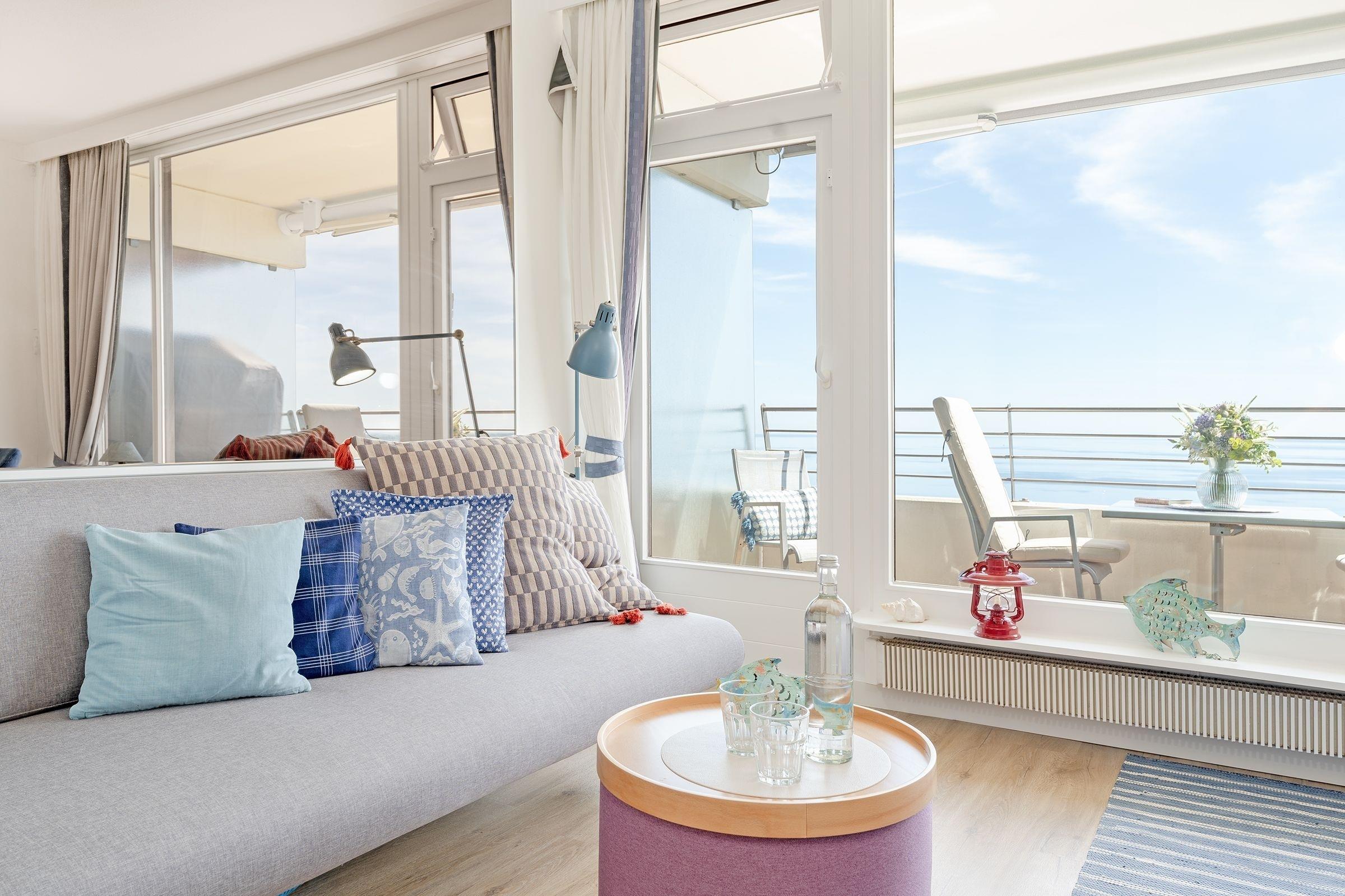 Moderne Ferienwohnung mit Balkon und Meerblick im 17. Stock in Timmendorfer Strand, ideal für erholsame Tage am Meer.