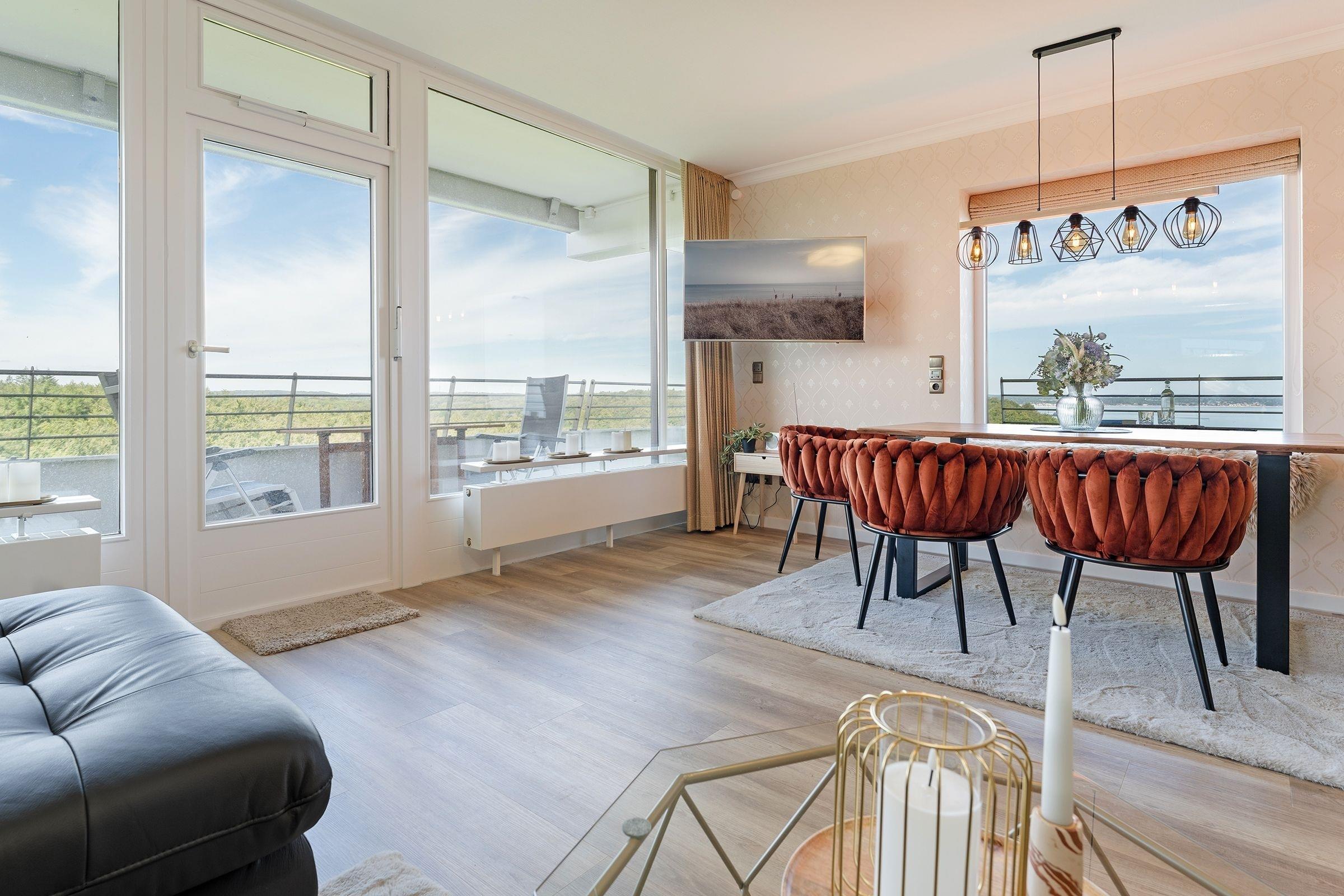 Exklusive 3-Zimmer-Ferienwohnung mit Meerblick und drei Balkonen in Timmendorfer Strand.