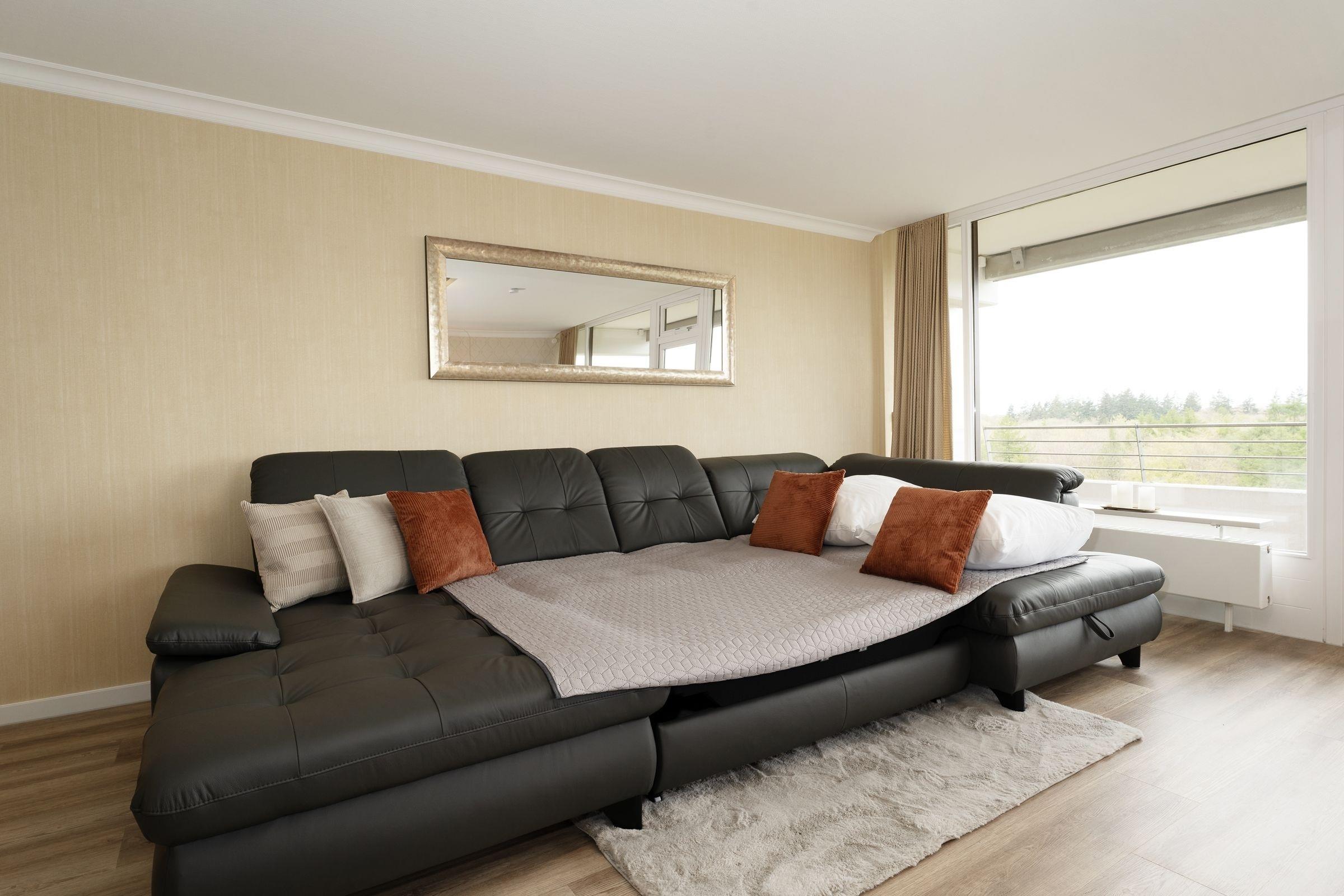 Wohnzimmer: 1 Schlafcouch (160x200 cm), TV, Verdunkelung: Vorhänge