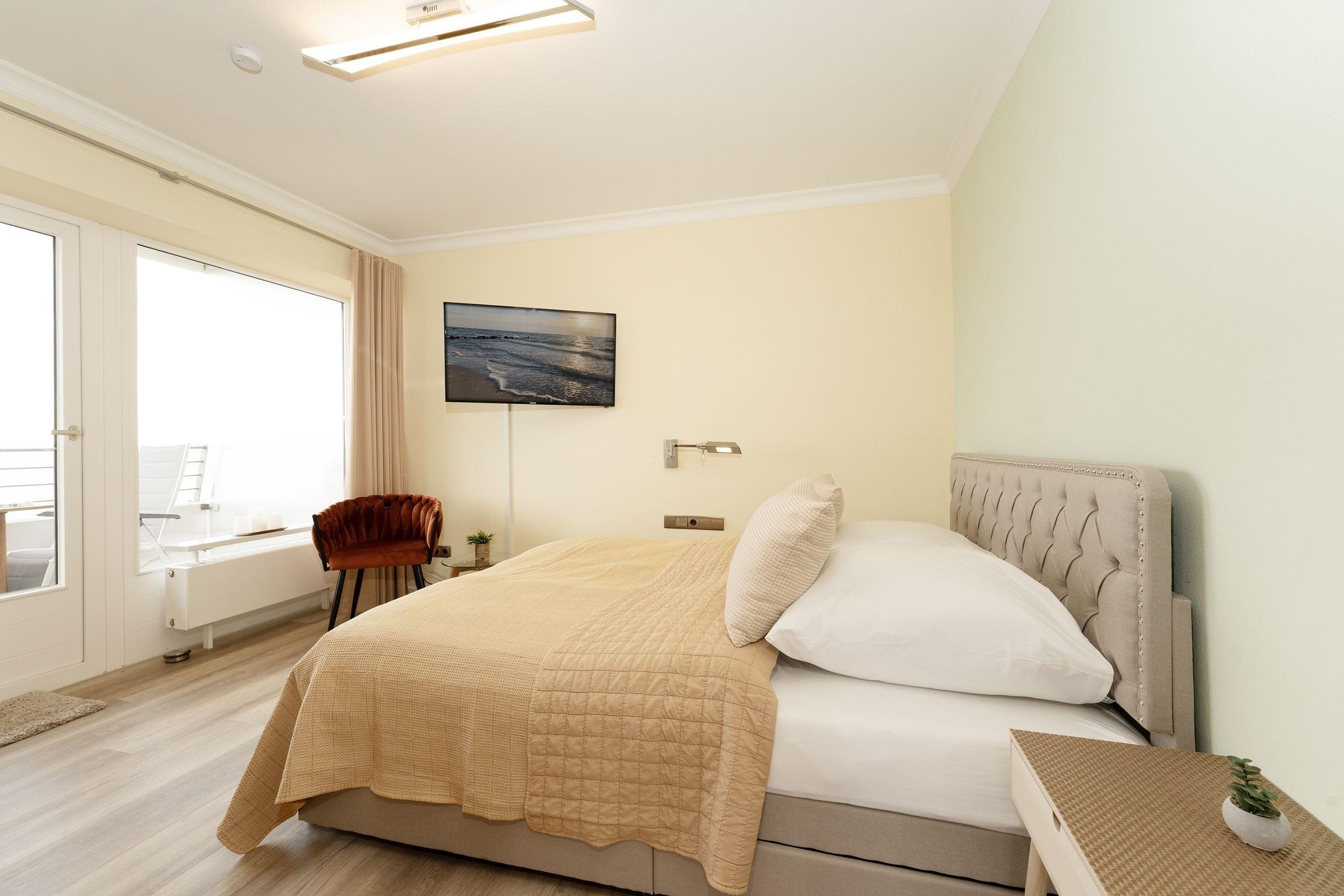 Urlaub der Extraklasse: Die Wohnung Waterfront punktet mit ihren drei Balkonen. Genießen Sie den Weitblick und die gute Seeluft! Im Wohnzimmer wartet eine große Sofalandschaft mit TV-Gerät (Netflix und RTL plus inkl.) auf Sie. Selbst vom Essplatz aus haben Sie die Ostsee im Blick, nehmen Sie auf der gemütlichen Fensterbank Platz und fangen Sie an zu träumen ... Die stylische Küche bietet viele Extras wie Induktionsherd und Spülmaschine. In den beiden Schlafzimmern befinden sich jeweils ein TV-Gerät sowie ein Doppelbett (200x200 cm bzw. 160x200 cm), zudem schenkt die Sofalandschaft 2 Schlafplätze (160x200 cm). Ein modernes Duschbad sowie ein Gäste-WC runden das Angebot ab. WLAN ist inklusive.