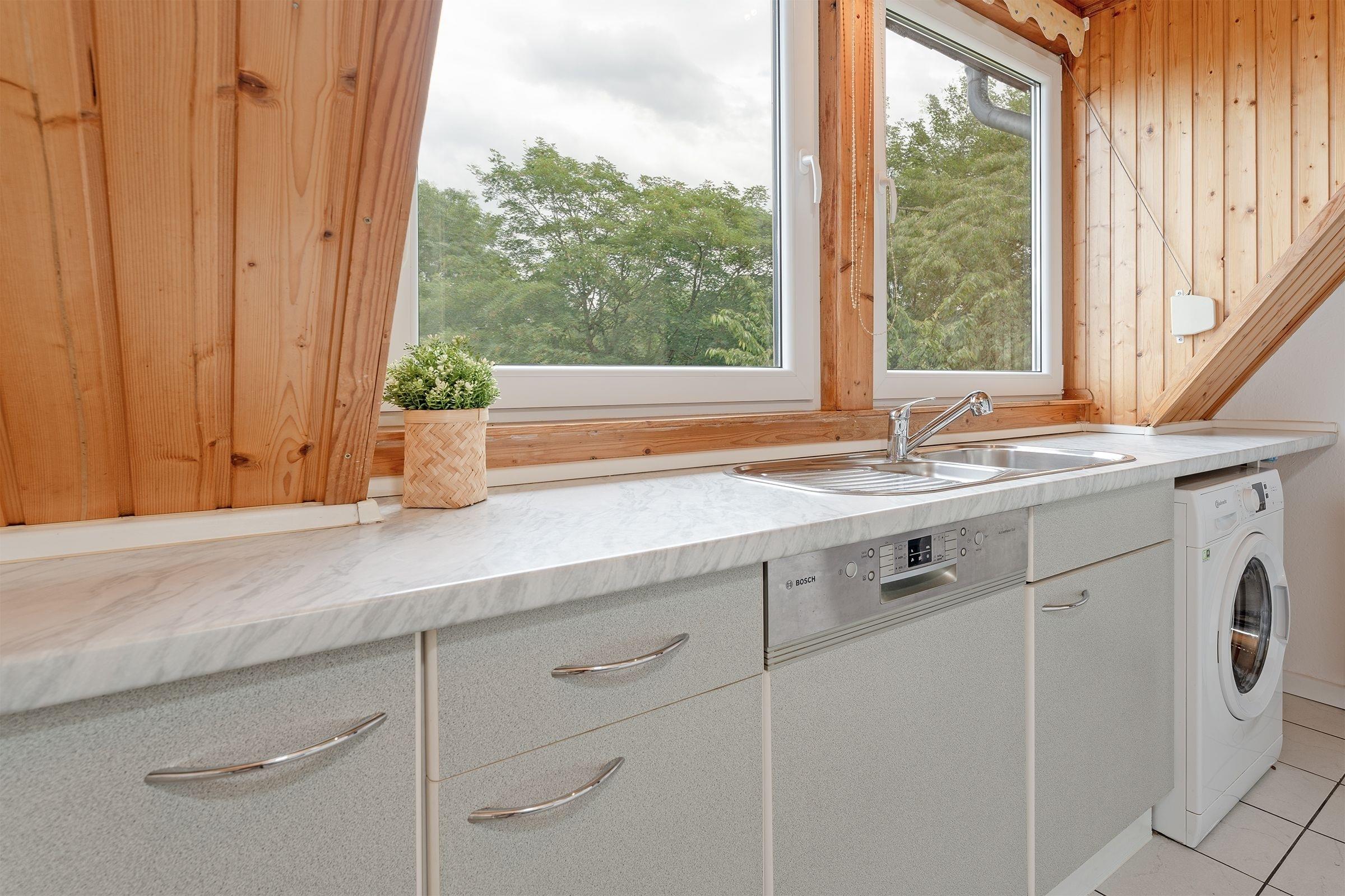 Familien und Freunde aufgepasst: Die Ferienwohnung mit dem passenden Namen Aus-Zeit bietet viel Platz und Raum für Ihre ganz persönliche und wohlverdiente Auszeit. Im gemütlichen Wohnzimmer mit heimeliger Holzvertäfelung stehen zwei kuschelige Sofas für Sie bereit. Sitzen Sie hier bei guten Gesprächen zusammen oder lassen Sie sich vom TV-Programm unterhalten. Der lange Esstisch ist ideal für lustige Spieleabende – und natürlich auch zum Essen. Bereiten Sie Ihre Speisen in der separaten, großzügigen Küche mit schönem Blick ins Grüne zu. Ein Geschirrspüler hilft später beim Abwasch. Auch eine Waschmaschine finden Sie hier. Für traumhafte Nächte sorgen 3 separaten Schlafzimmer: Eins befindet sich im 1. OG mit einem Doppelbett (180x200 cm), die beiden anderen im 2. OG mit jeweils einem Doppelbett (180x200 cm) sowie einem TV-Gerät. Das tageslichthelle Duschbad punktet mit einem Handtuchwärmer. Im gepflegten Gemeinschaftsgarten können Sie zahlreiche Sonnenstunden genießen.