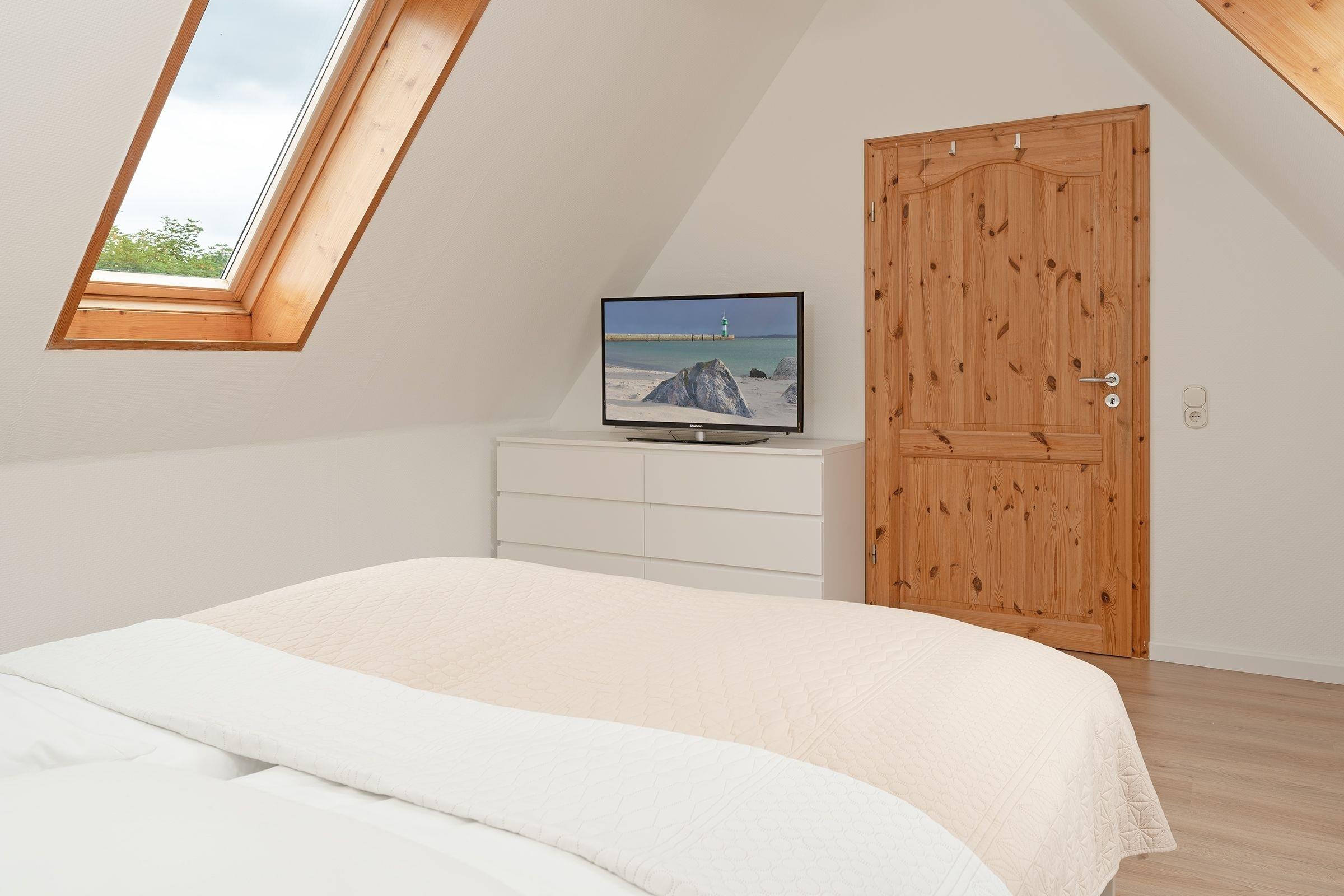 3. Schlafzimmer (2.OG): 1 Doppelbett (180x200 cm), Kleiderschrank, TV, Sichtschutz: Plissees, Platz für Babybett vorhanden
