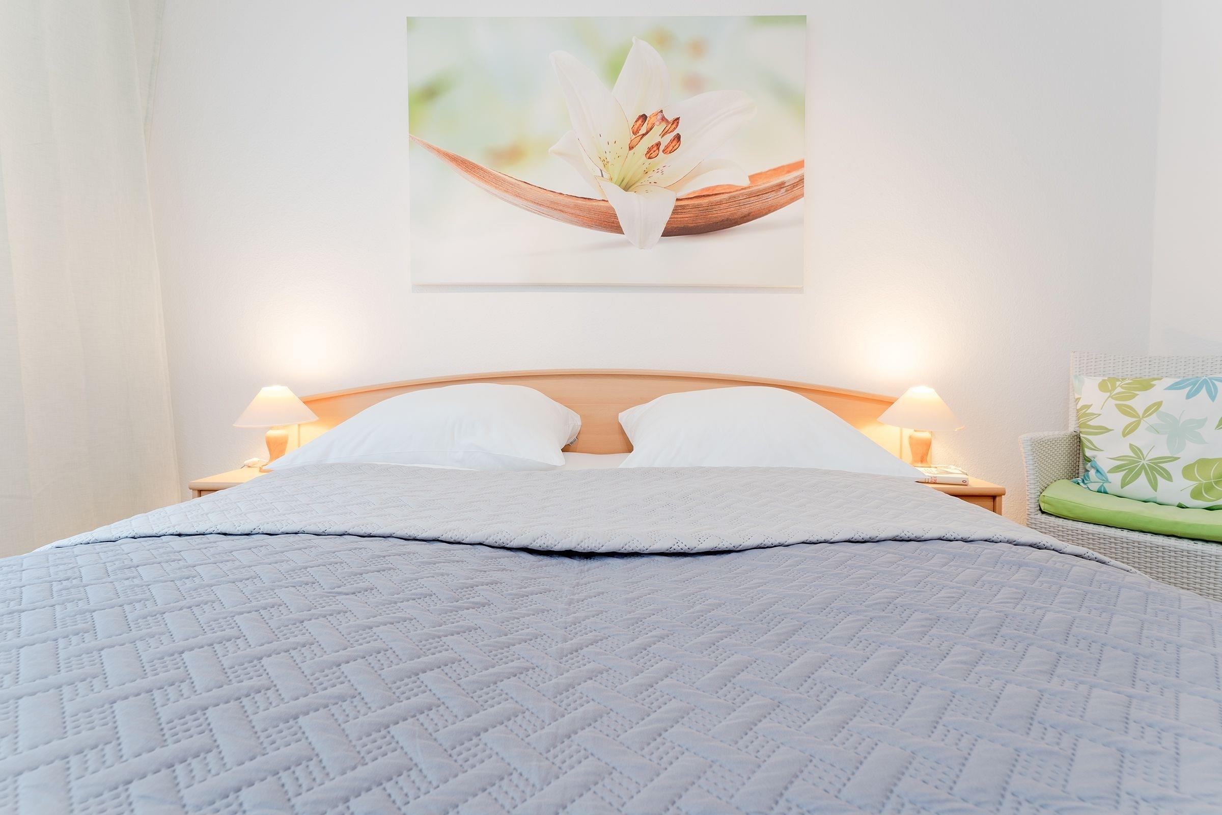Schlafzimmer 1: 1 Doppelbett (2x 90x200 cm), Kleiderschrank, Verdunkelung: Außenjalousien, Platz für Babybett vorhanden