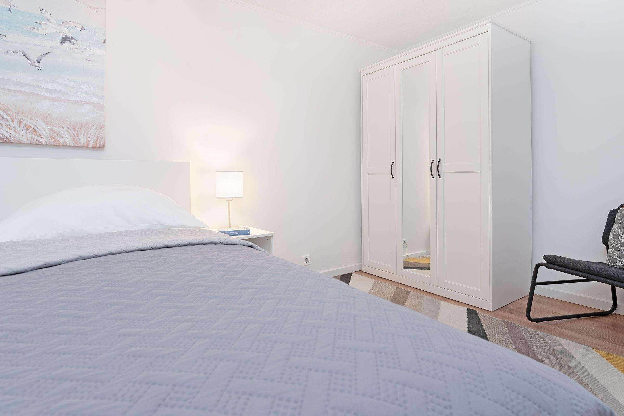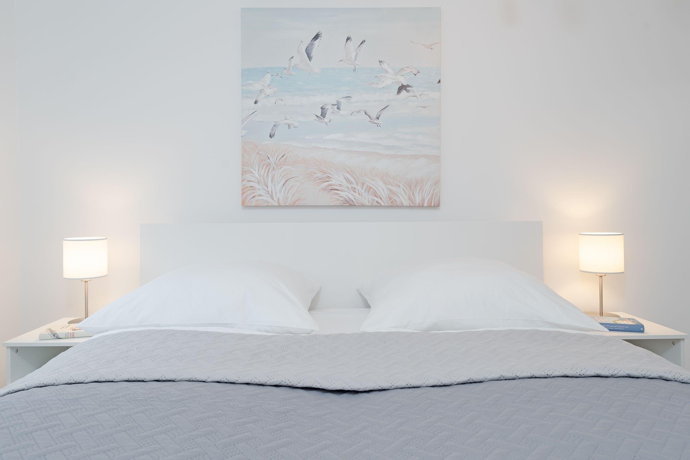 Die Küche ist gut ausgestattet und bietet alles, was Sie für die Zubereitung köstlicher Mahlzeiten benötigen. Im separaten Schlafzimmer mit komfortablem Doppelbett (2x 90x200 cm) lässt es sich herrlich relaxen und träumen. Auch hier gibt es ausreichend Platz für ein Babybett, falls Sie mit einem Kleinkind anreisen. Für Ihre Privatsphäre und ein angenehmes Schlafklima sorgen Sichtschutz-Plissees an den Fenstern. Das Badezimmer mit einer bodengleichen Dusche und einem beheizbaren Handtuchhalter sorgt für einen guten Start in den neuen Urlaubstag.