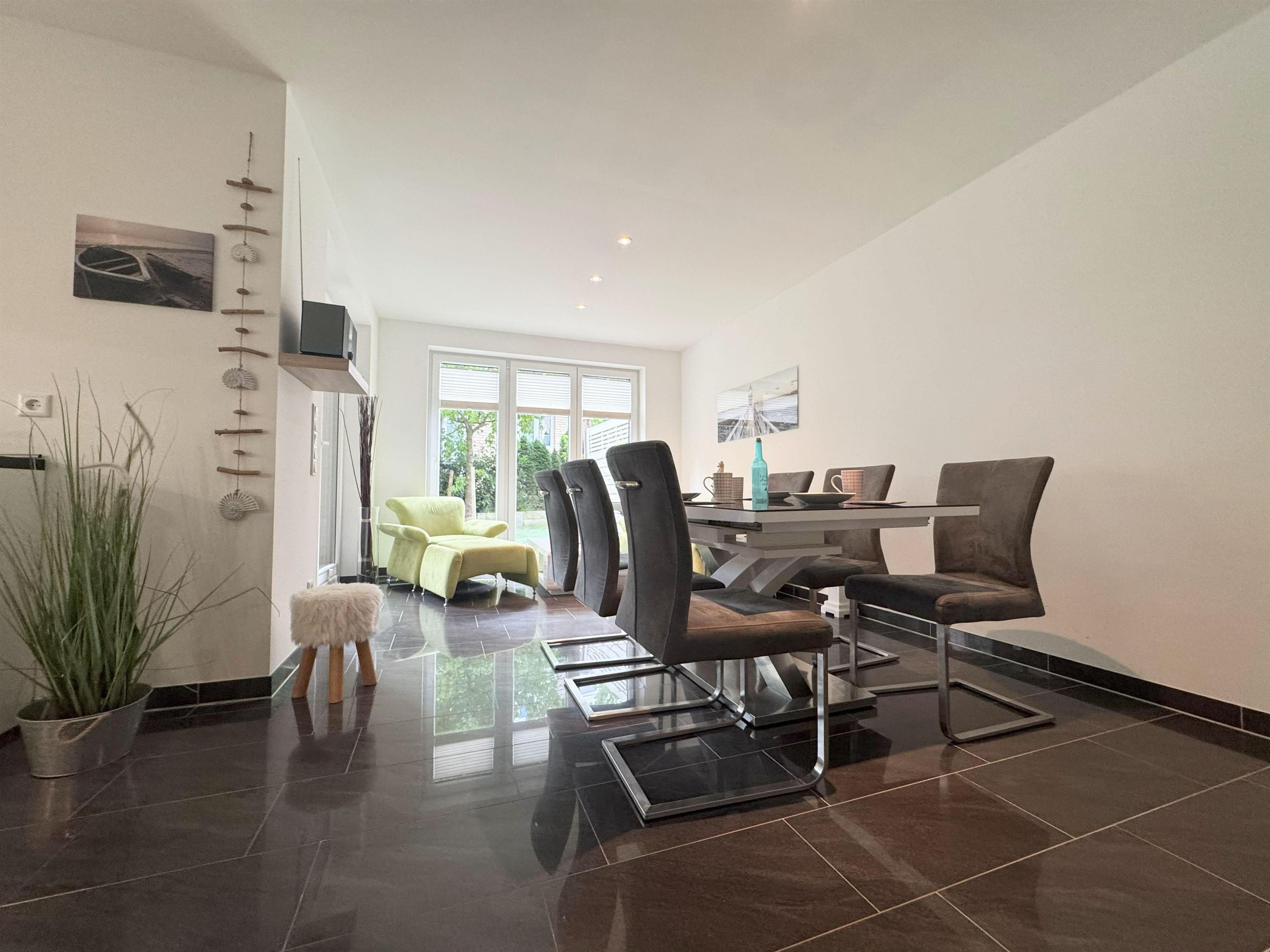 Das Haus zeichnet sich aus mit Sauna, Elektrokamin, Wintergarten, Südgarten, moderne Fernseher und Stellplätzen.