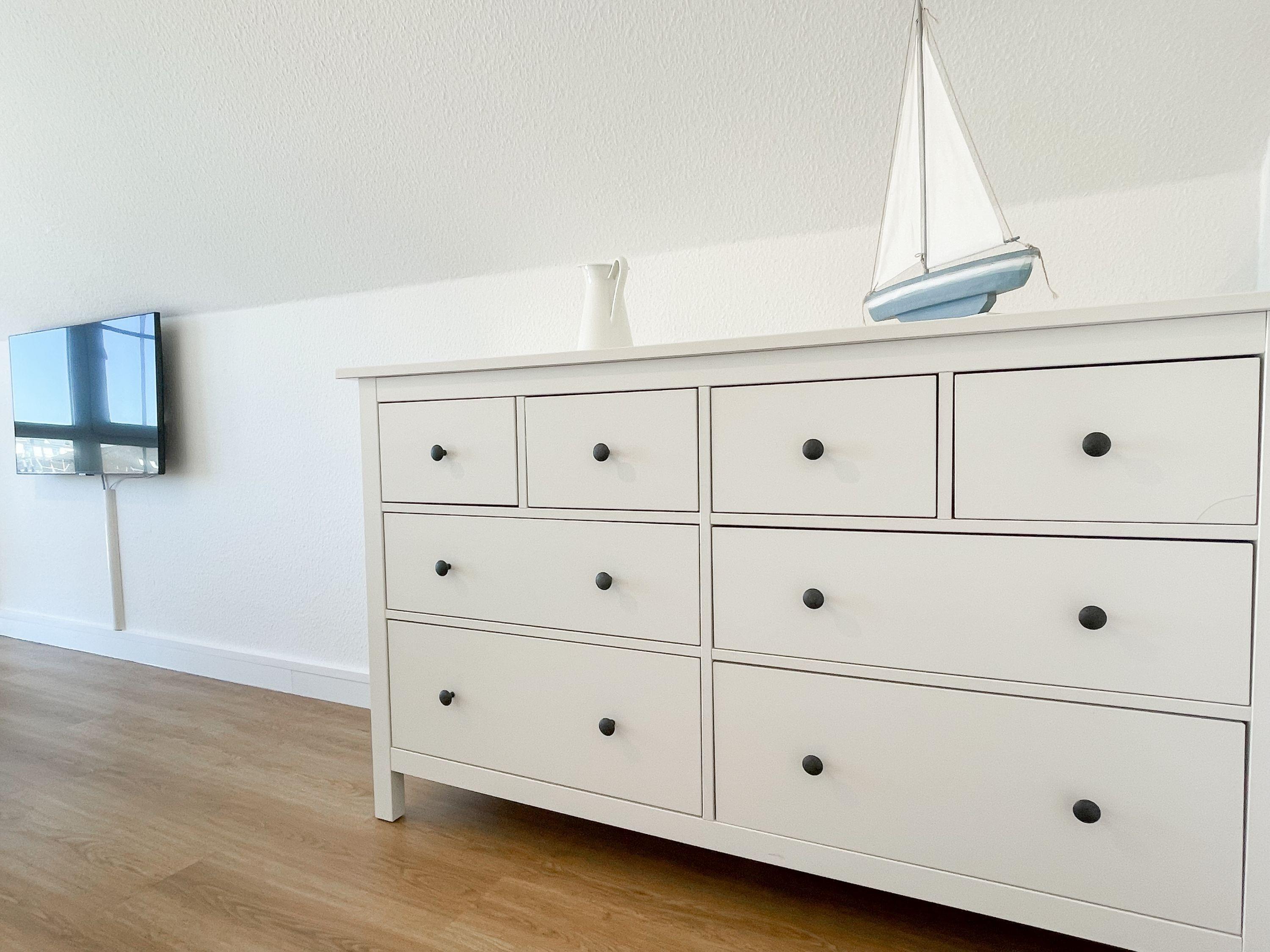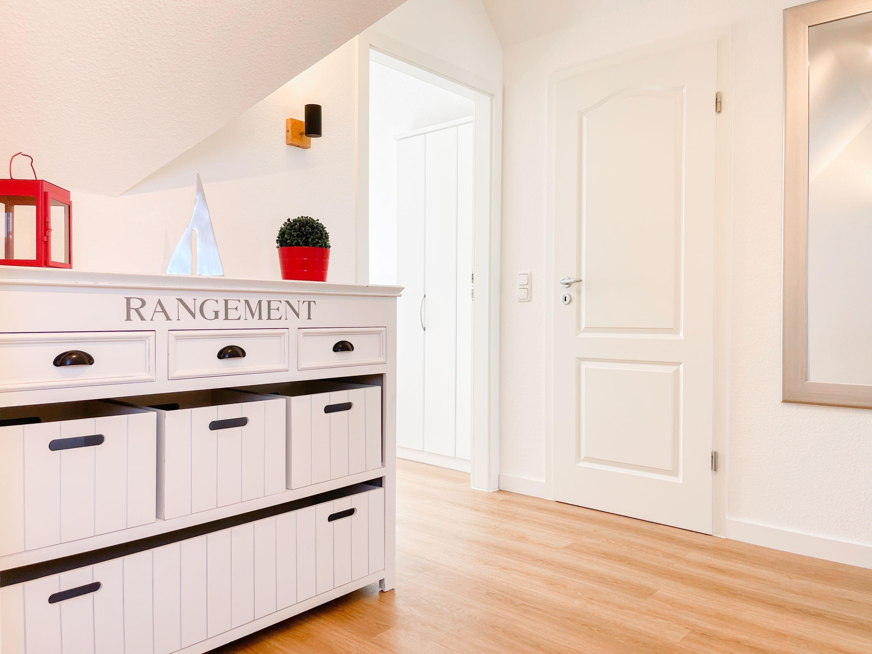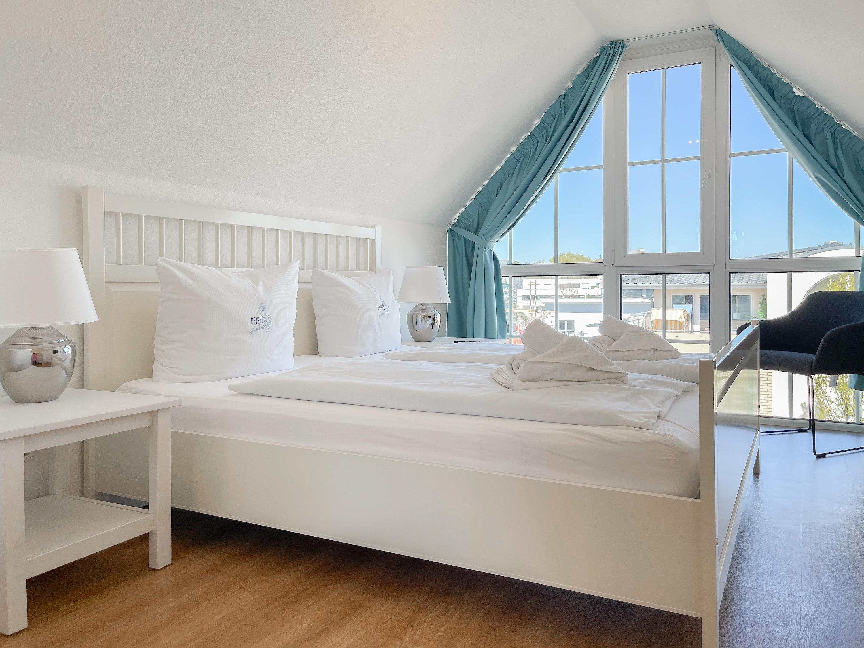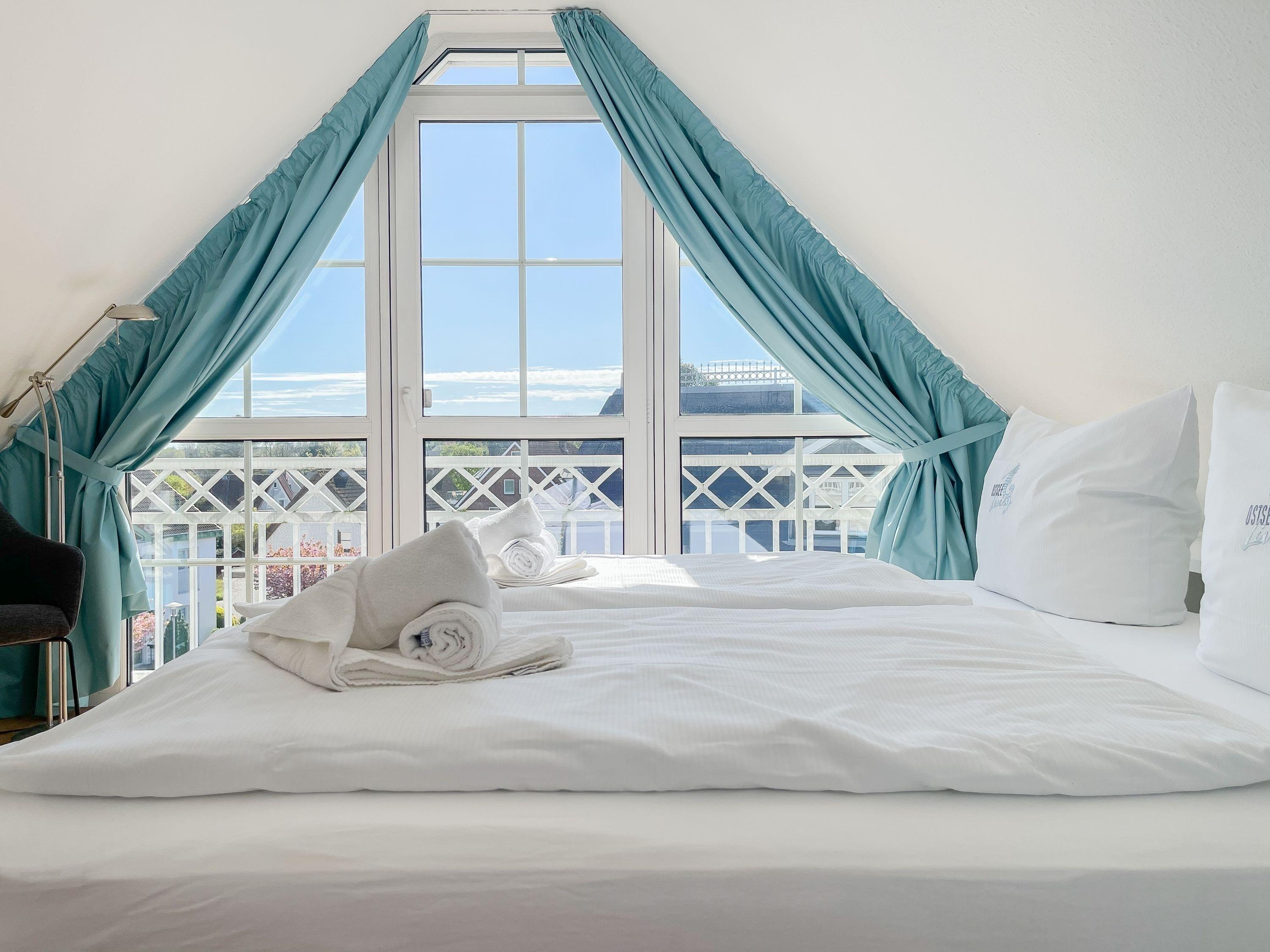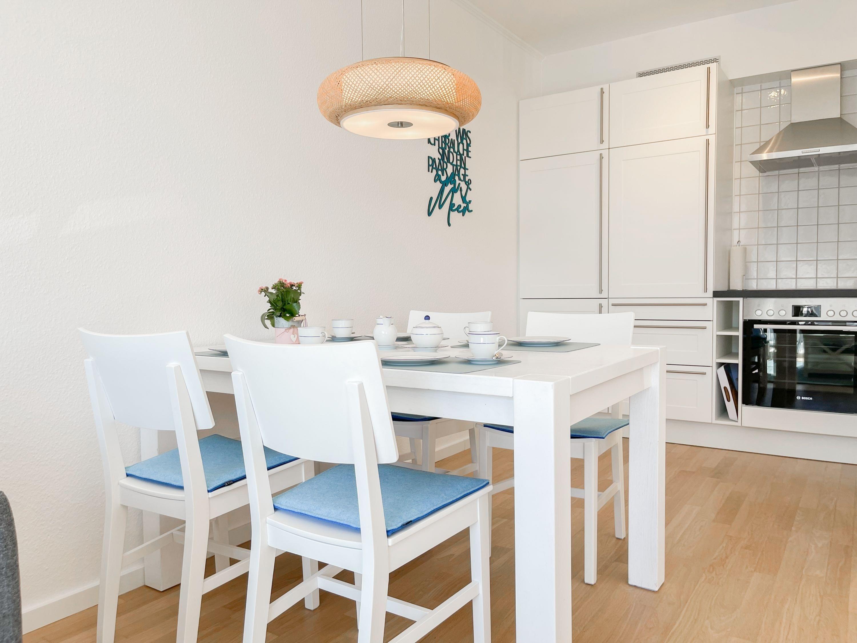 Die Ferienwohnung Ankerplatz[nbsp] liegt[nbsp] in der 2. Etage im Haus Sonnenpark und erstreckt sich über 2 Wohnebenen bis ins Dachgeschoss. Ein herrlicher Sonnenbalkon, ausgestattet mit Gartenmöbeln und einer elektrischen Markise, verläuft über den[nbsp] gesamten Wohnbereich und bietet einen tollen Rückzugsort bis zum letzten Sonnenstrahl. Die frisch renovierte Wohnung verfügt über ein gelungenes Raumkonzept mit neuer Küche, neuem Duschbad und Gäste WC. Die Ausstattung ist hochwertig und bietet 4 Personen ausreichend Raum zum Wohlfühlen in Strandnähe. Es erwartet Sie ein heller, großzügiger Wohnraum mit bodentiefen Fensterflächen, geschmackvoll gestaltet und mit einem komfortablen Sofa und zwei Sesseln eingerichtet, TV, Hifi-Anlage und ein Essbereich mit ausreichend Platz für 4 Personen. WLAN steht selbstverständlich zur kostenlosen Nutzung zur Verfügung. Die integrierte Küche ist bestens ausgestattet, unter anderem mit Spülmaschine, Backofen, Nespressomaschine und vielem mehr. Im Eingangsbereich befindet sich eine Garderobe und ein separates Gäste WC. Auf der oberen Ebene, die über eine Treppe vom Wohnbereich zu erreichen ist, bietet die Wohnung zwei separate Schlafzimmer mit Doppelbetten (180x200), Kleiderschränken und Verdunkelungsvorhängen sowie ein äußerst großzügiges, modernes Duschbad mit einem Doppelwaschtisch und viel Tageslicht. Schlafzimmer 1 verfügt zusätzlich über einen TV und Schlafzimmer 2 über einen Schreibtisch und das Bett besteht aus 2 Einzelbetten, die beliebig zusammengeschoben oder getrennt genutzt werden können.