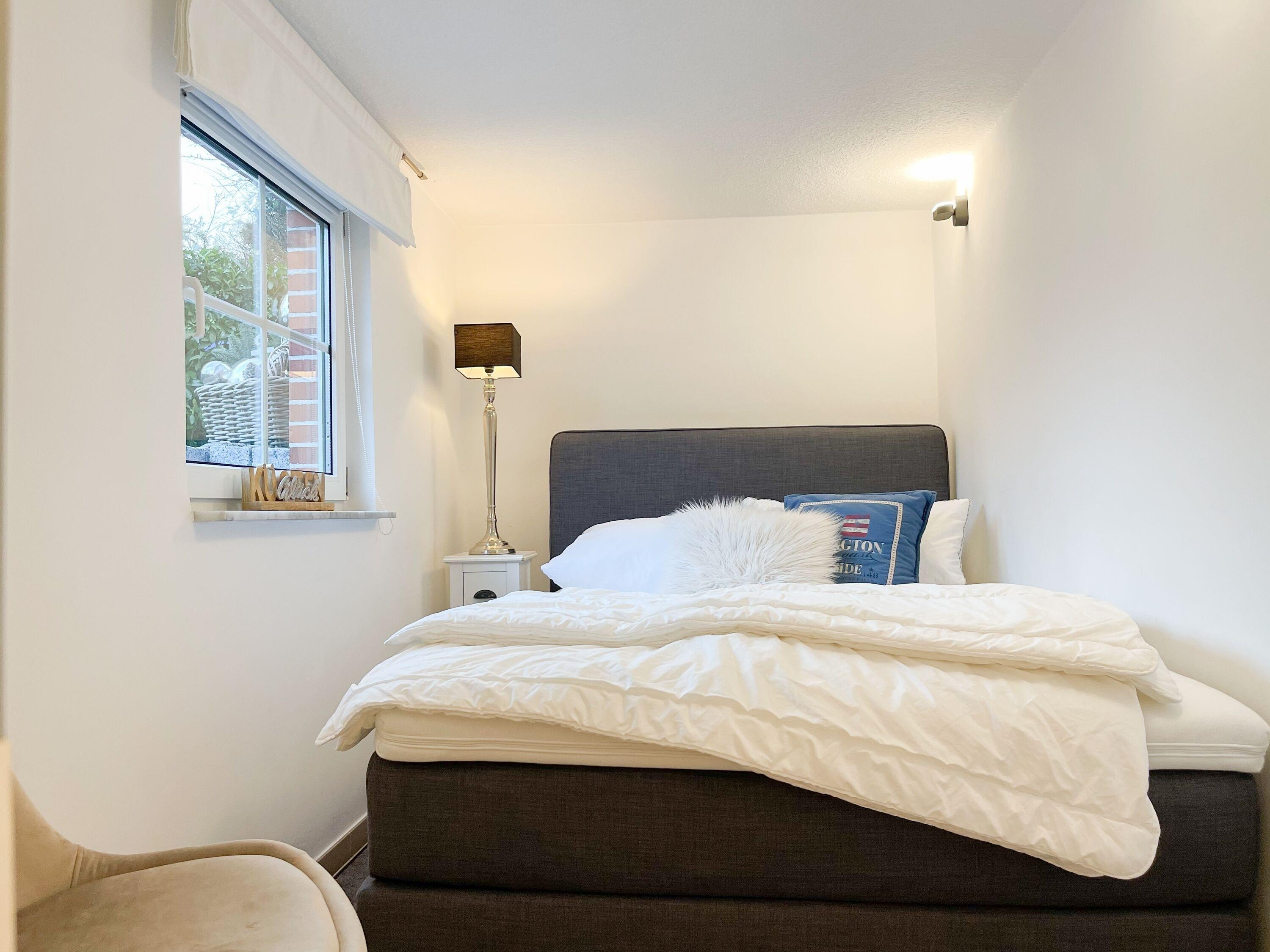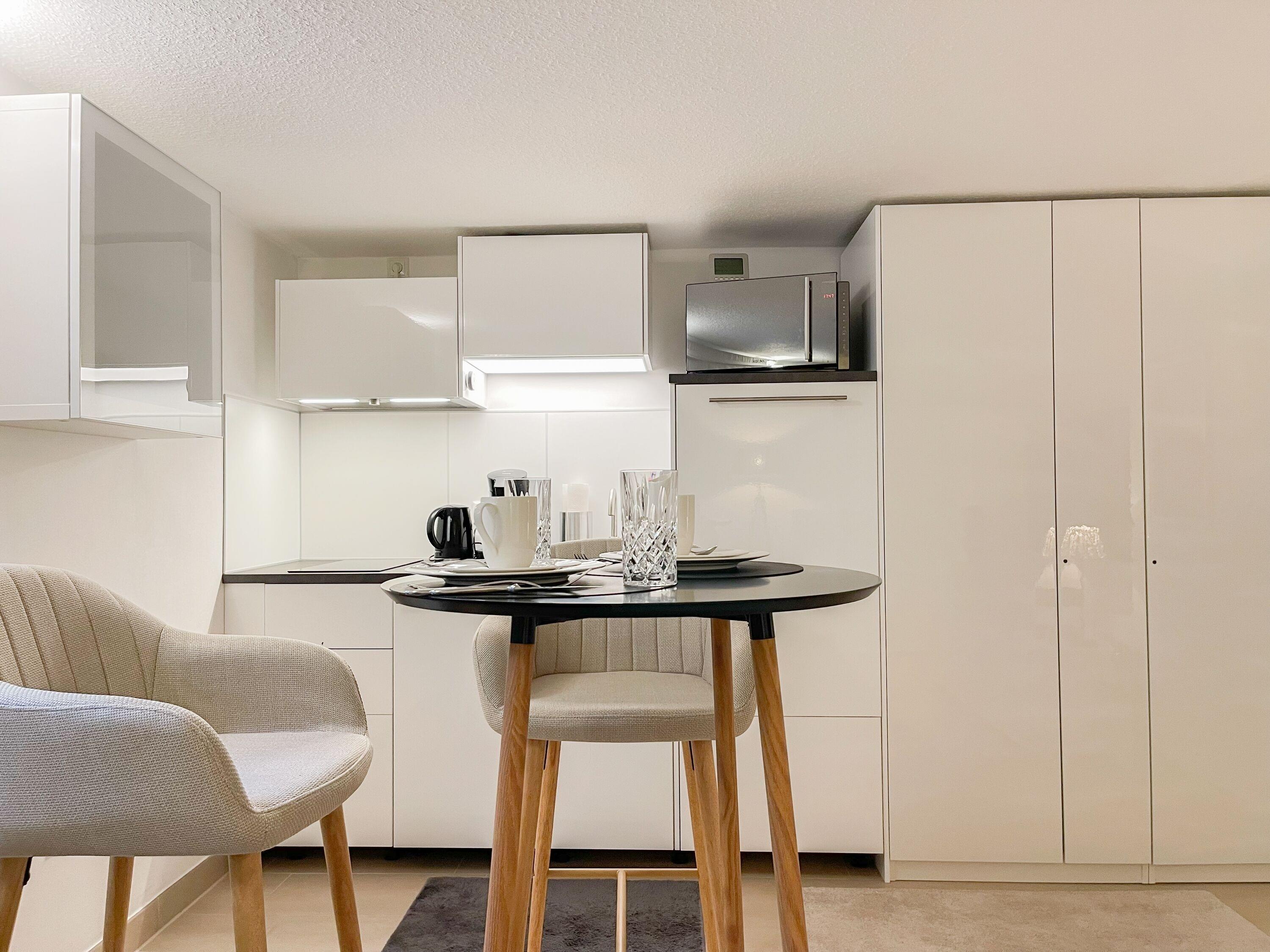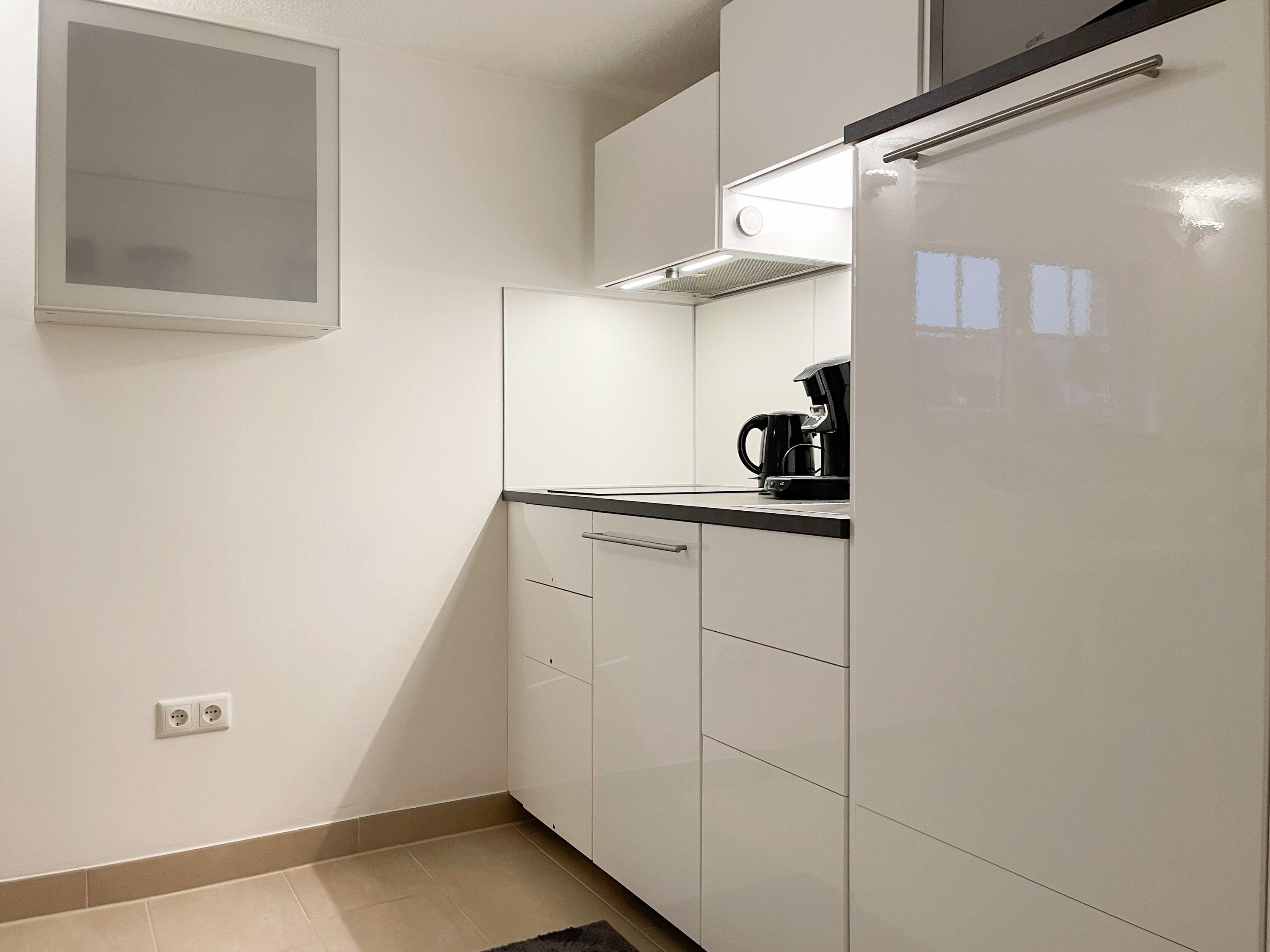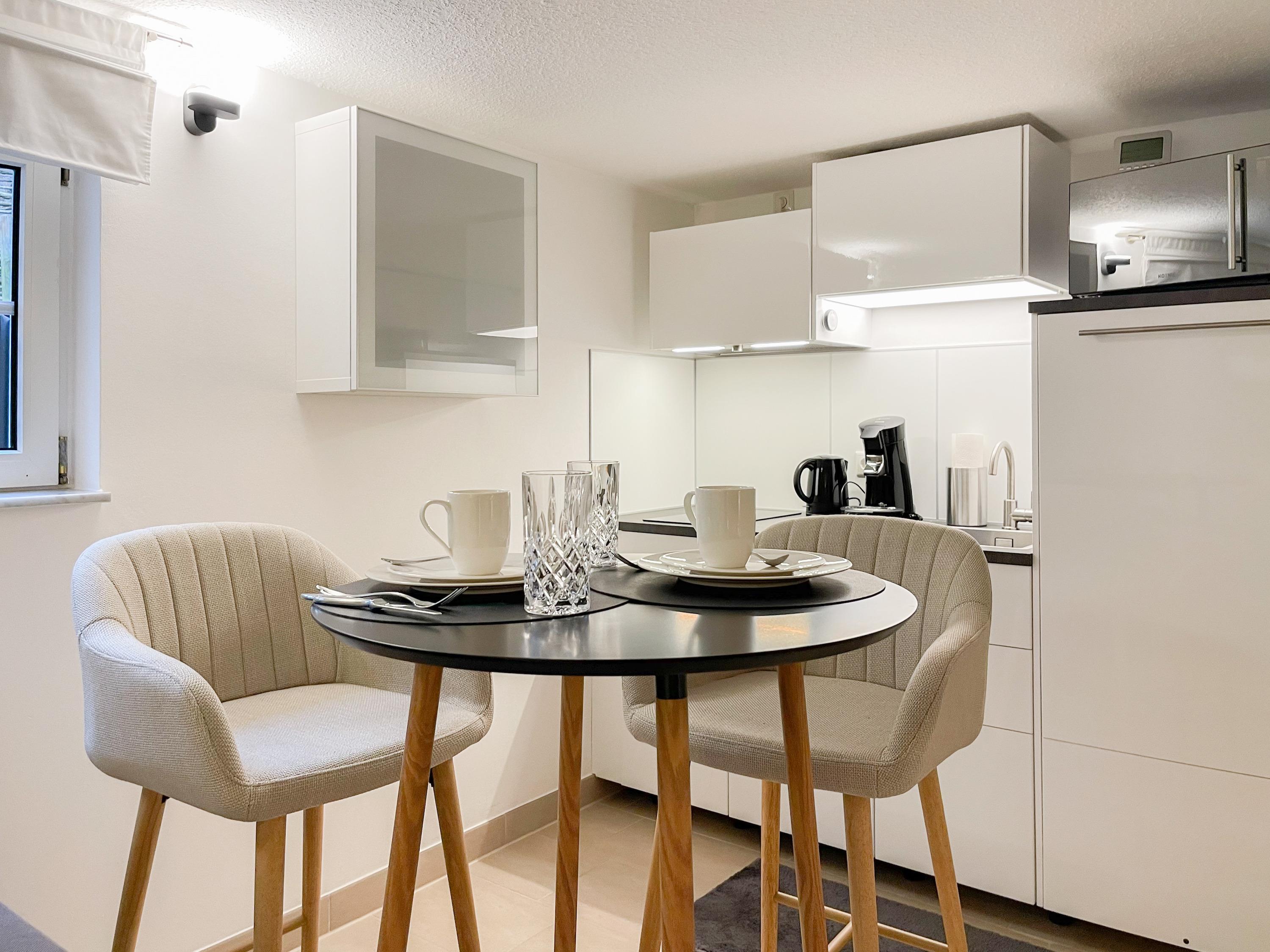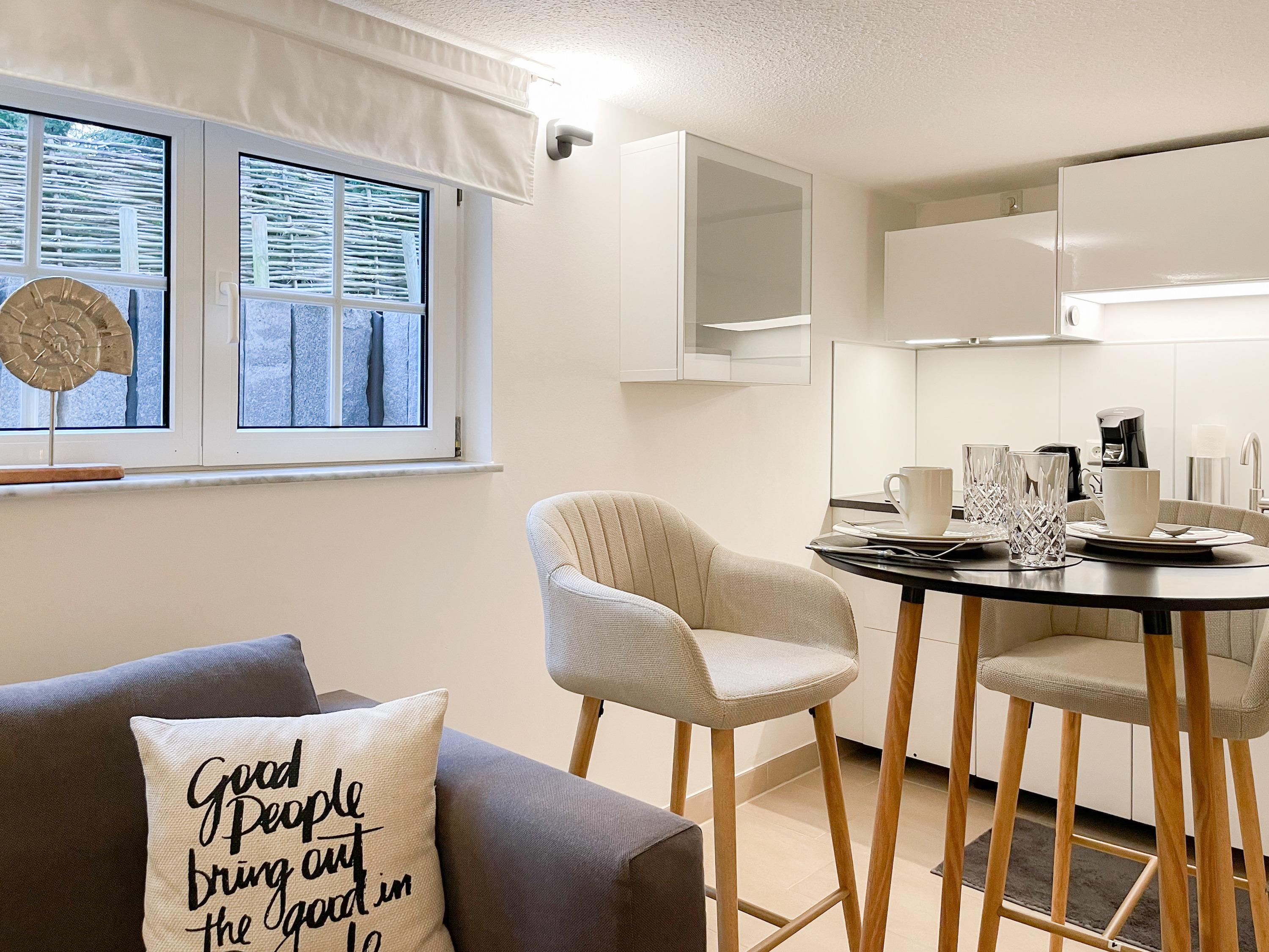 Frisch und aufwendig renoviert in 2024, erwartet Sie eine mit vielen liebevollen Details eingerichtete Ferienwohnung, die im Souterrain liegt und über einen eigenen, privaten Eingang verfügt. Der Wohnbereich ist mit einem bequemen Sofa zum Relaxen sowie einem TV ausgestattet. WLAN steht selbstverständlich zur Verfügung. Die offene Küchenzeile verfügt über Spülmaschine,[nbsp] Mikrowelle, Ceranfeld, Kühlschrank und Gefrierfach. Der Essbereich ist mit einem Bartisch und 2 Stühlen für 2 Personen ausgerichtet. Das separate kleine Schlafzimmer ist mit einem Boxspringbett (140x200) eingerichtet. Das moderne Bad umfasst eine Walk-In Dusche, Waschtisch, Spiegel[nbsp] Beleuchtung, Handtuchtrockner und WC.