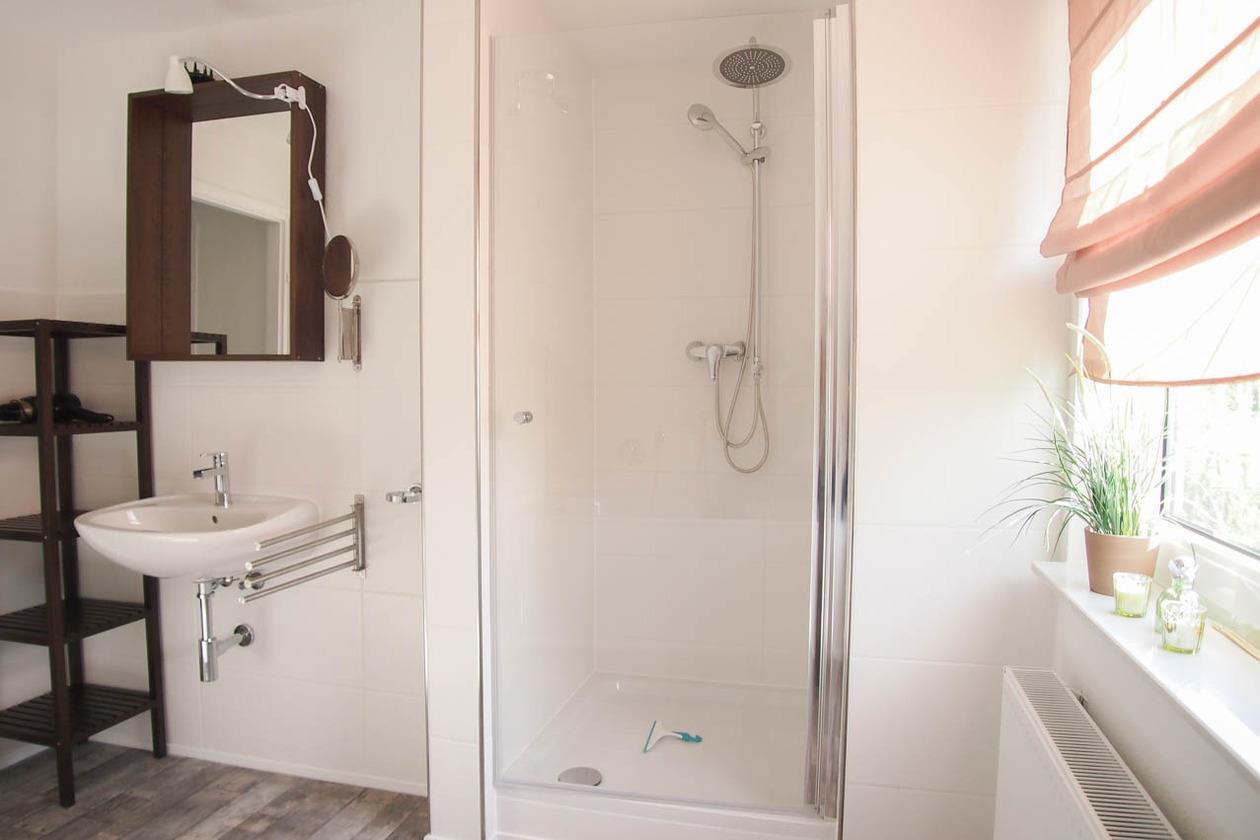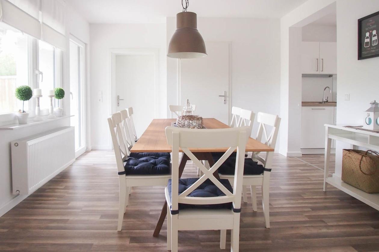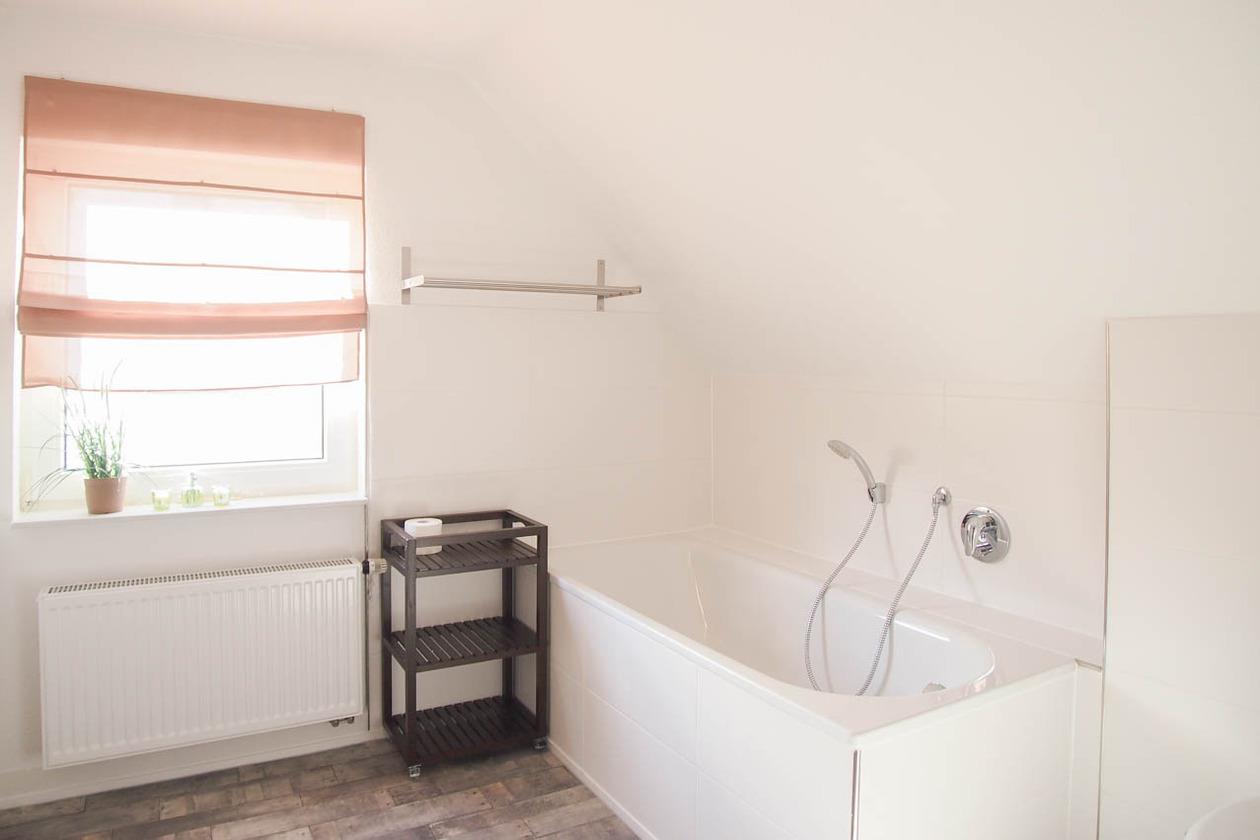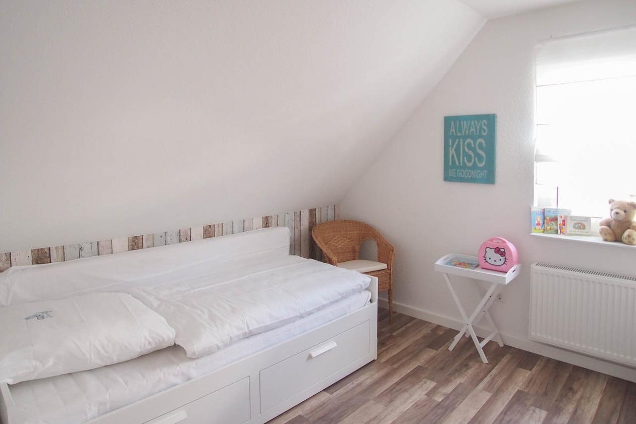 Im Erdgeschoss befindet sich ein geräumiger Wohnbereich mit Leseecke und Kaminofen, ein großzügiger Essbereich für 8 Personen sowie eine moderne Einbauküche, in der neben allen technischen Geräten auch eine Waschmaschine und ein Trockner integriert sind. Zwei Schlafzimmer, eines mit direktem Terrassenzugang und Doppelbett (180x200), ein weiteres mit einem Einzelbett mit Auszug (160x200) und ein modernes, helles Duschbad sind ebenfalls auf dieser Ebene untergebracht. Im Obergeschoss befinden sich 3 weitere Schlafzimmer, eines mit Doppelbett (180x200) und Kinderbett plus Wickeltisch, eines mit zwei Einzelbetten (90x200), ein weiteres mit einem Einzelbett mit Auszug (160x200). Ein großzügiges Bad mit Badewanne und Dusche sowie ein separates Gäste WC stehen im Obergeschoss zur Verfügung. Im Haus befinden sich drei TV.