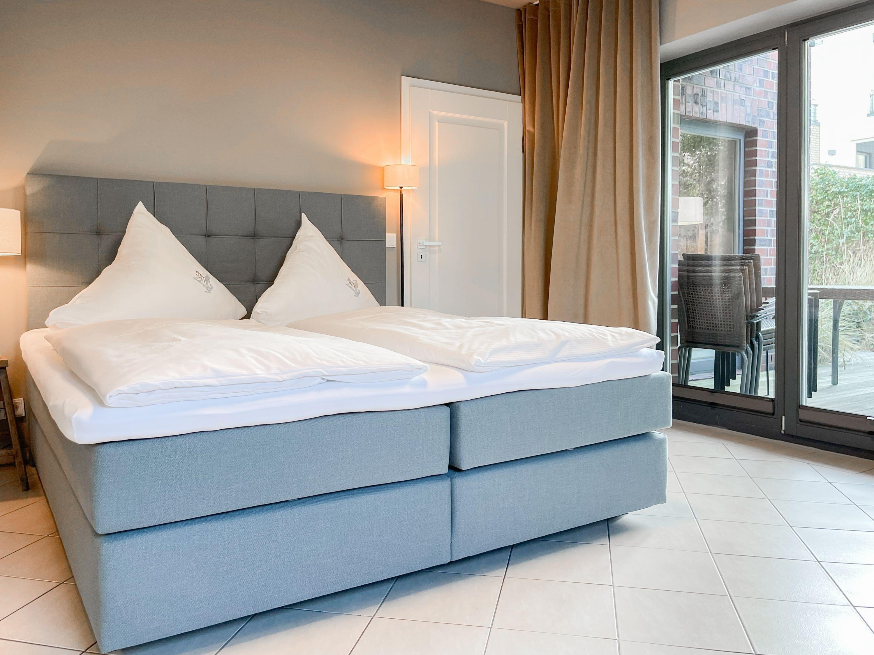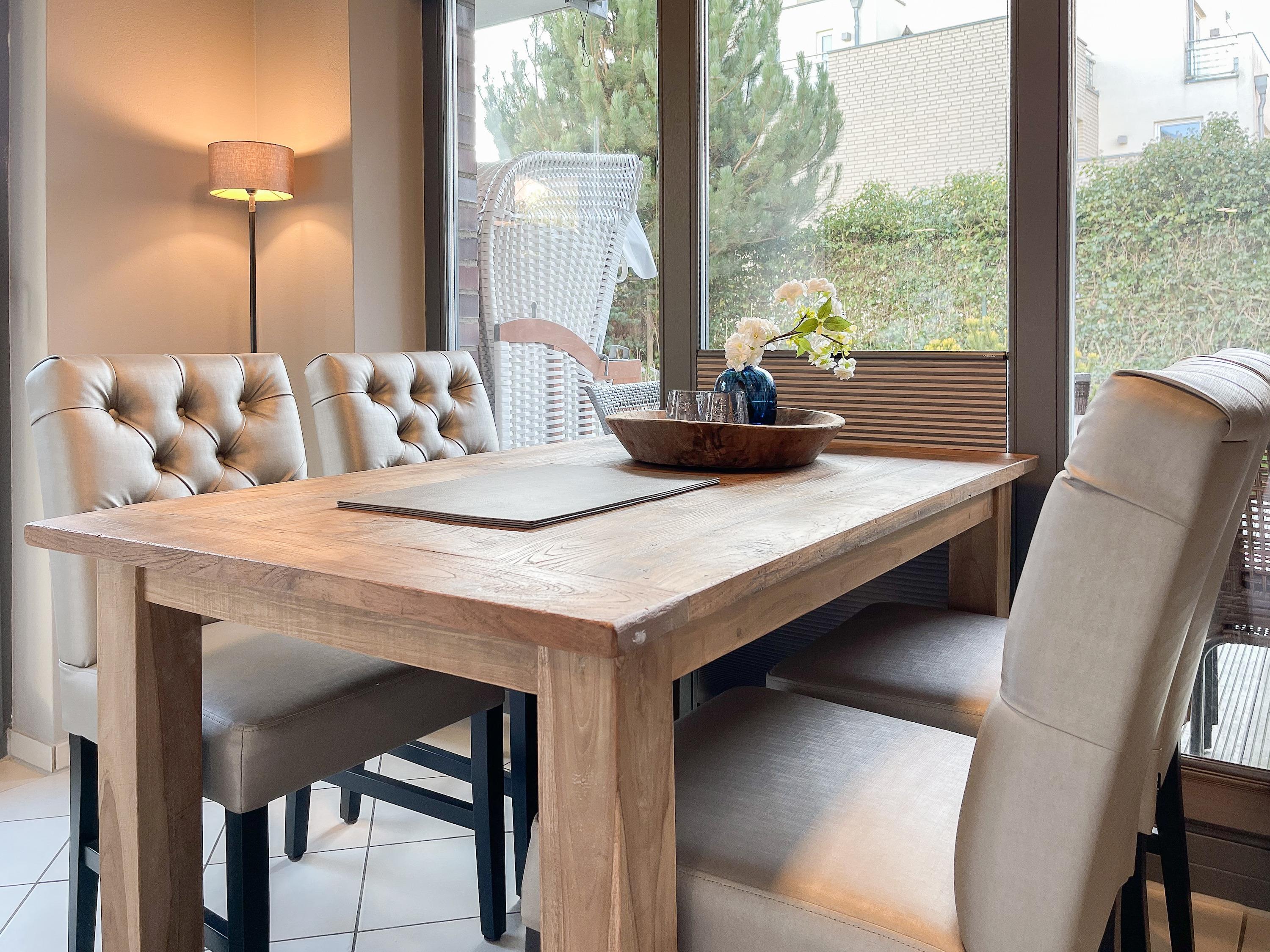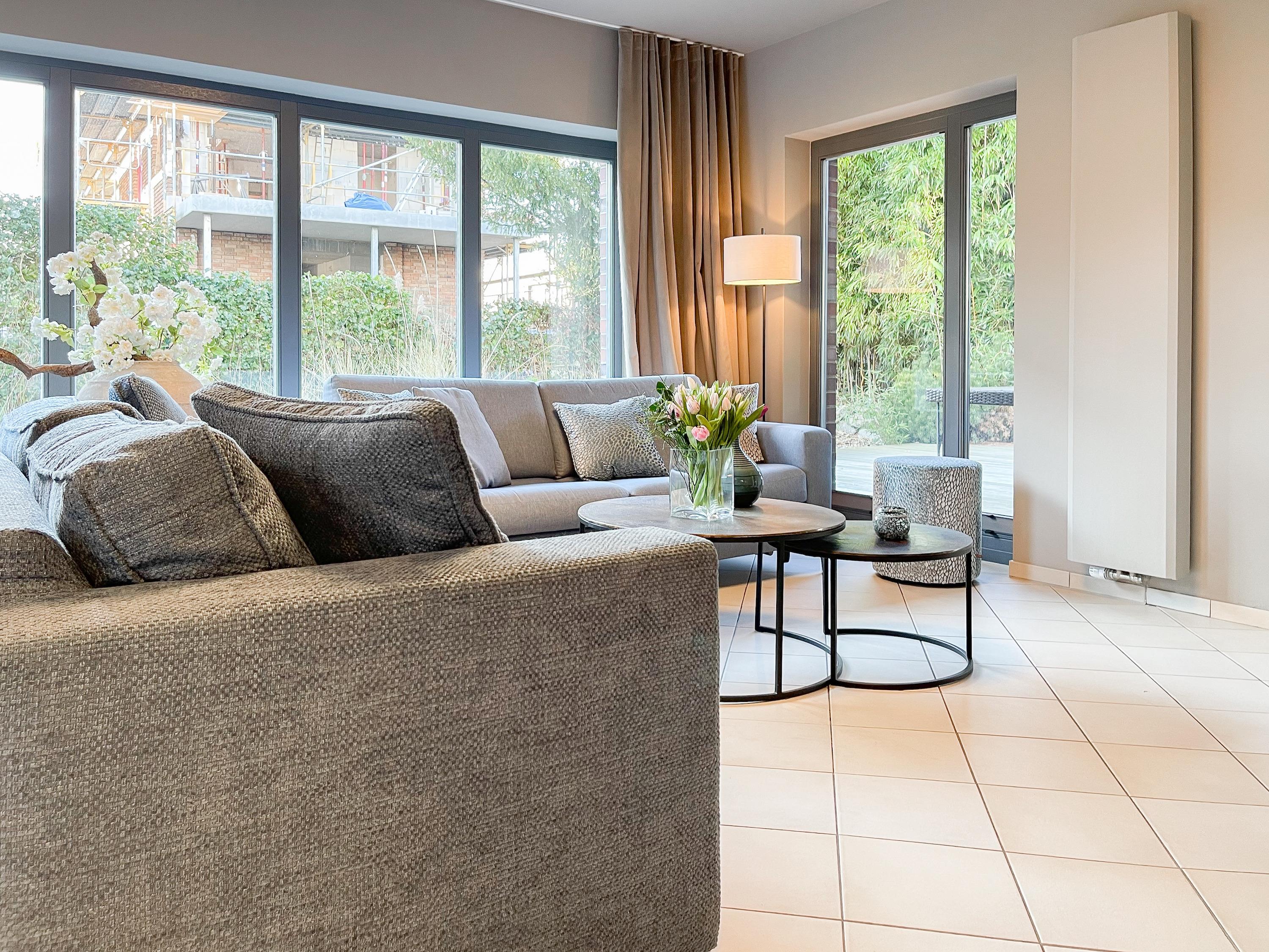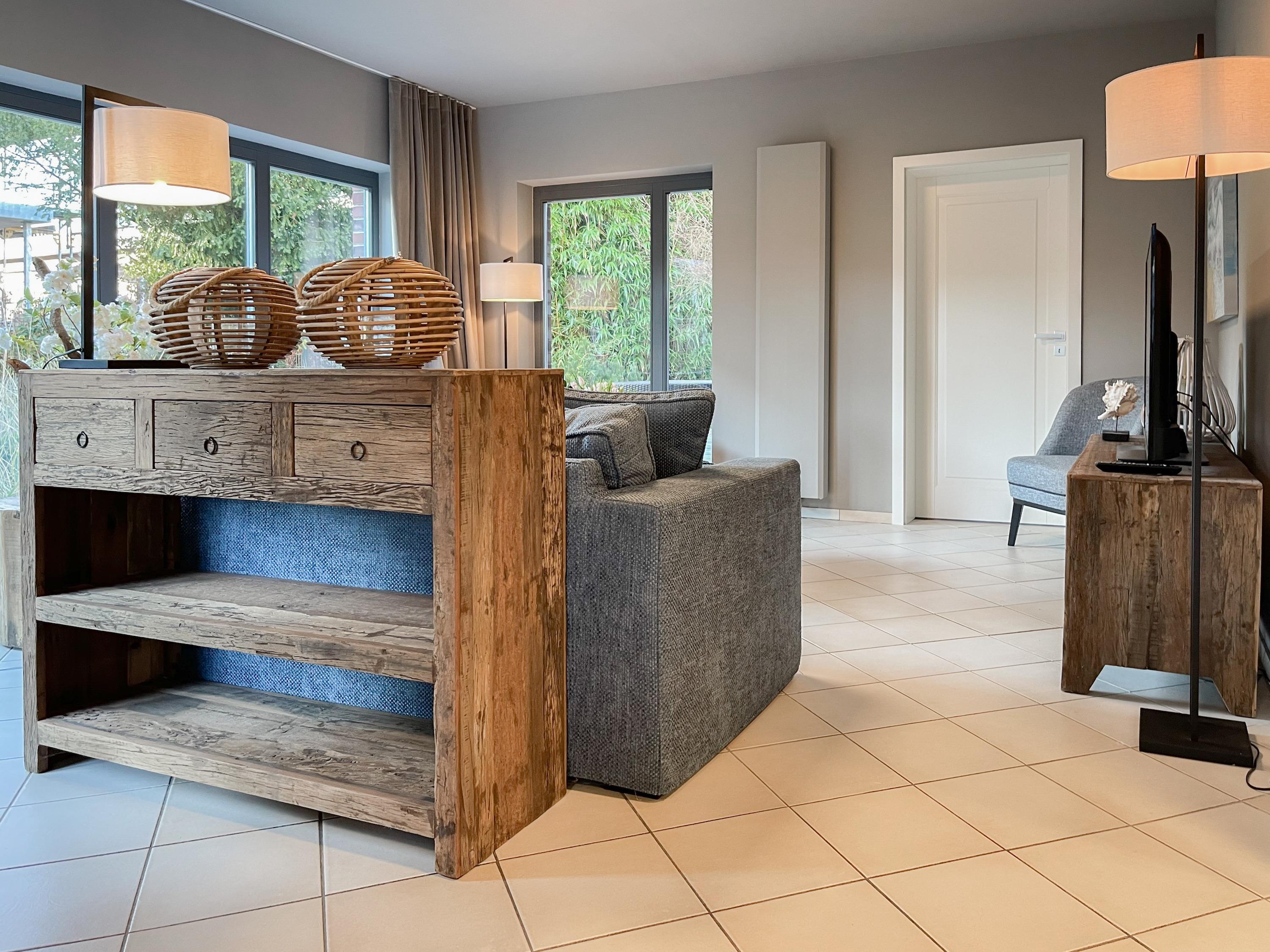 Deck 1 befindet sich im Erdgeschoss eines Ferienhauses mit nur 2 Wohnungen und bietet auf 90 qm Wohnfläche ausreichend Raum für 4 Personen, um einen erholsamen Ostseeurlaub zu verleben. Die hochwertige, äußerst geschmackvolle Einrichtung im Hampton Style schafft ein herrliches Ambiente zum Wohlfühlen, große, bodentiefe Fensterelemente sorgen für lichtdurchflutete Räumlichkeiten. Es stehen zwei separate Schlafzimmer zur Verfügung, die mit Boxspringbetten, Verdunklungsplissees, geräumigen Kleiderschränken und TV ausgestattet sind sowie 2 moderne Bäder mit Walk In Duschen, Waschtisch, WC[nbsp] und Fenster. Mittelpunkt der Wohnung bildet der großzügige Wohnbereich mit gemütlichen Sofas und herrlichem Blick in den wunderschön angelegten Garten. Der anschließende Essbereich ist für 4 Personen eingerichtet und die offene Küche ist selbstverständlich bestens ausgestattet. Der Außenbereich mit der 25 qm großen Terrasse (Südausrichtung), ausgestattet mit[nbsp] 2 Strandkörben und Gartenmöbeln,[nbsp] sowie der liebevoll gestaltete Gartenbereich mit großer Teichanlage, Goldfischen, Gräsern und Bambus stellt ein besonderes Highlight dar und wird garantiert zu jeder Tageszeit zum Lieblingsplatz. So bezaubernd die Teichanlage auch ist, könnte sie insbesondere für kleine Kinder eine Gefahr darstellen. Die Waschmaschine ist in einem separaten Raum innerhalb der Wohnung untergebracht. WLAN steht selbstverständlich zu kostenlosen Nutzung zur Verfügung. Fahrradständer befinden sich vor dem Eingang. Es fester Tiefgaragenstellplatz (Einfahrt 2 m) gehört zur Wohnung.