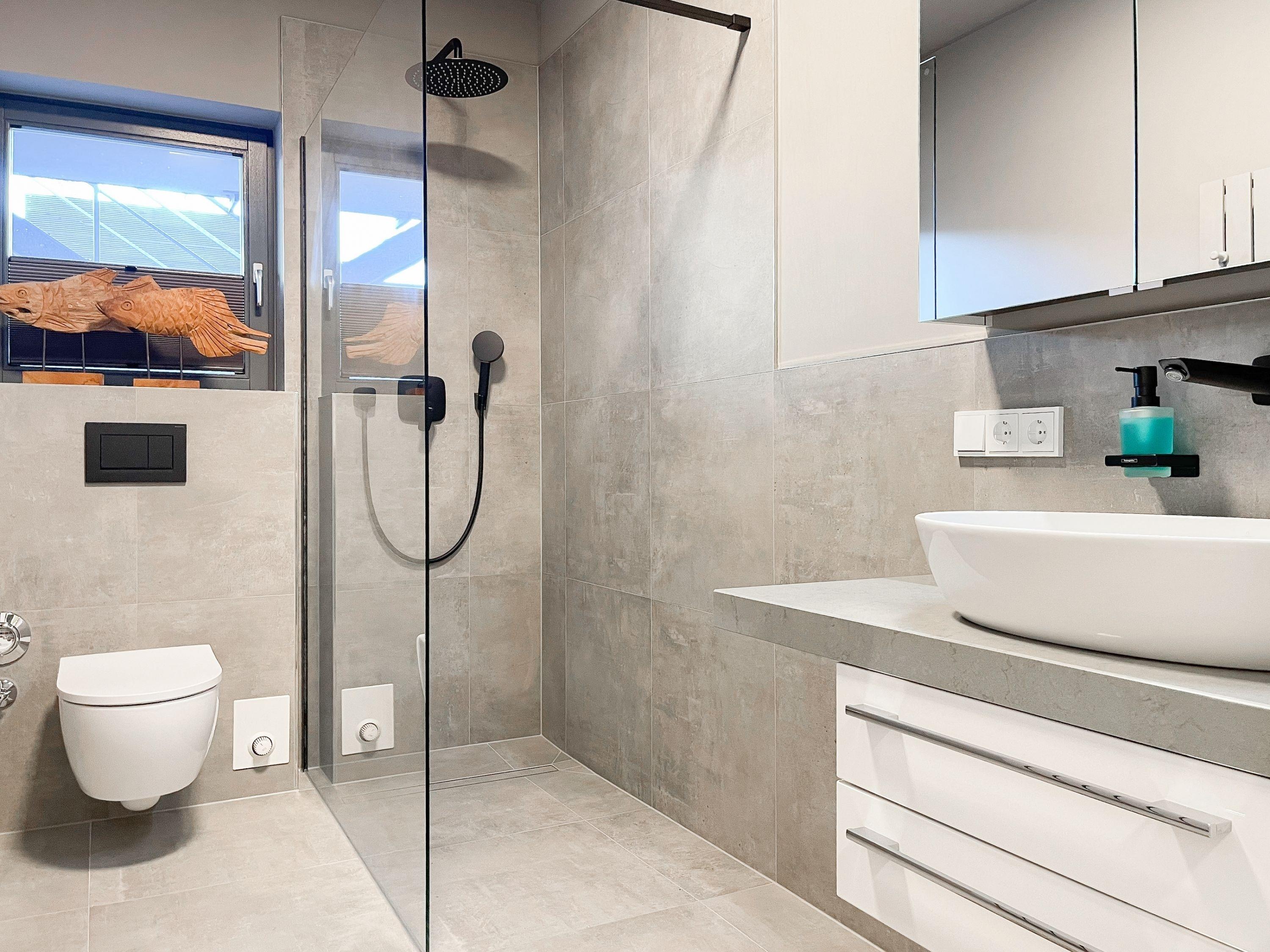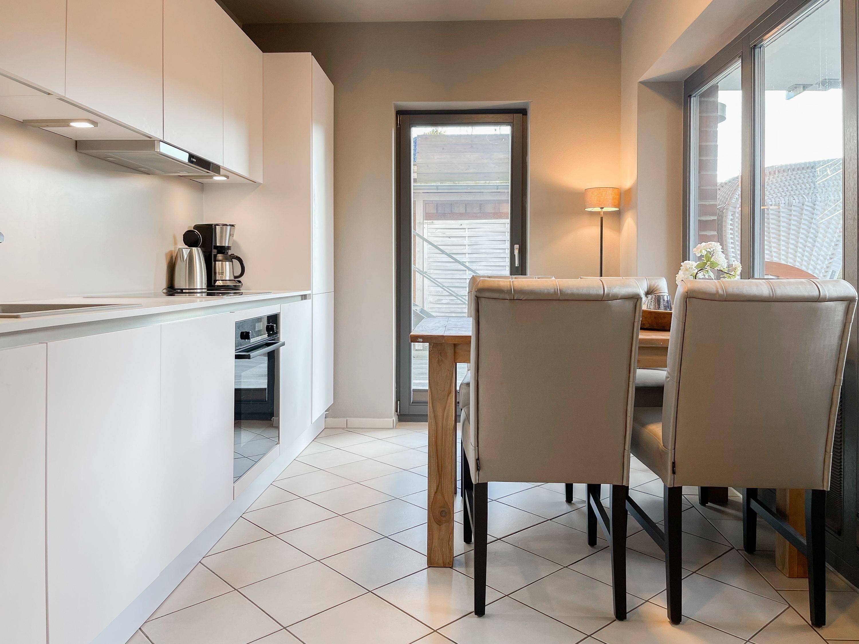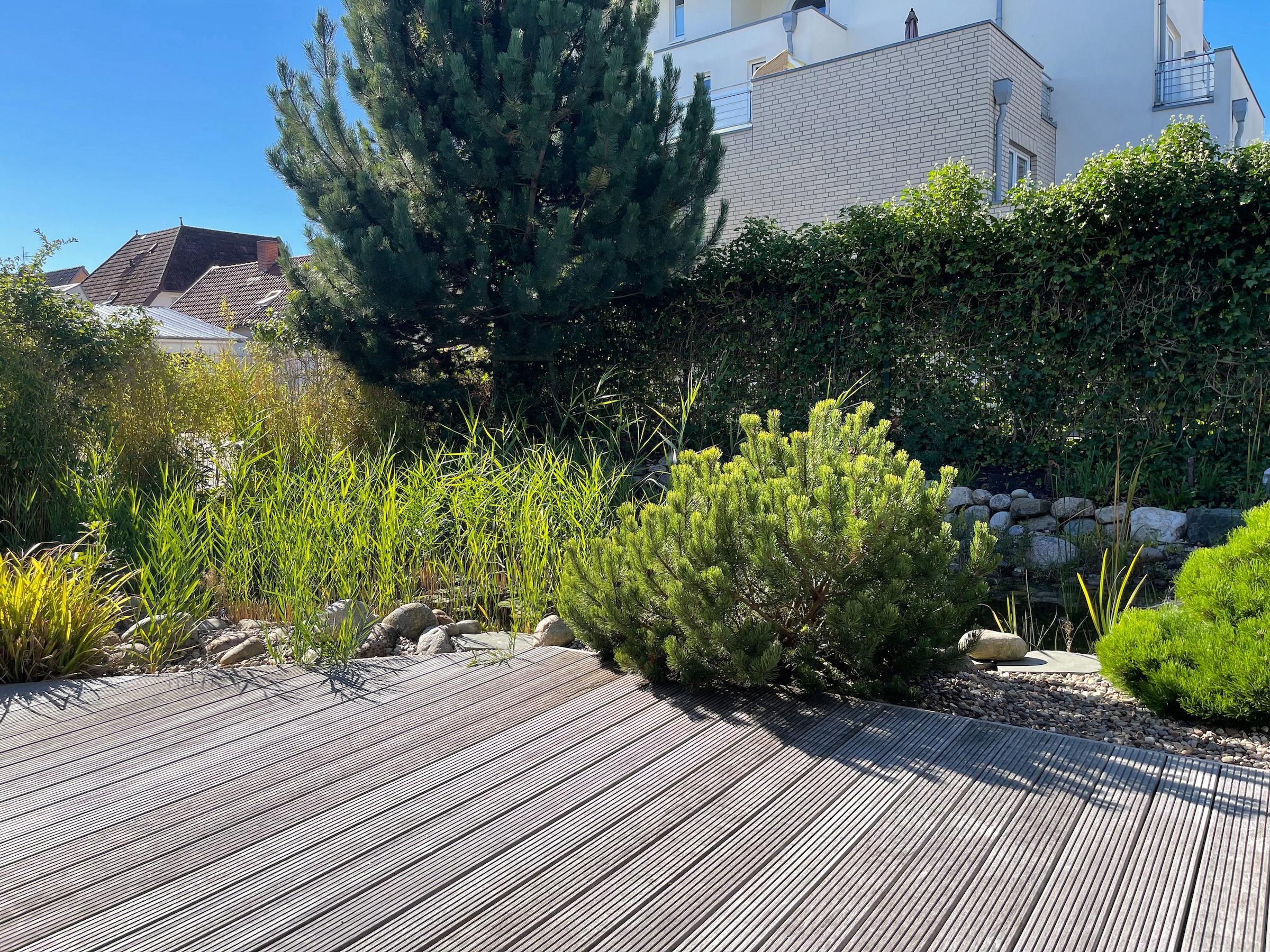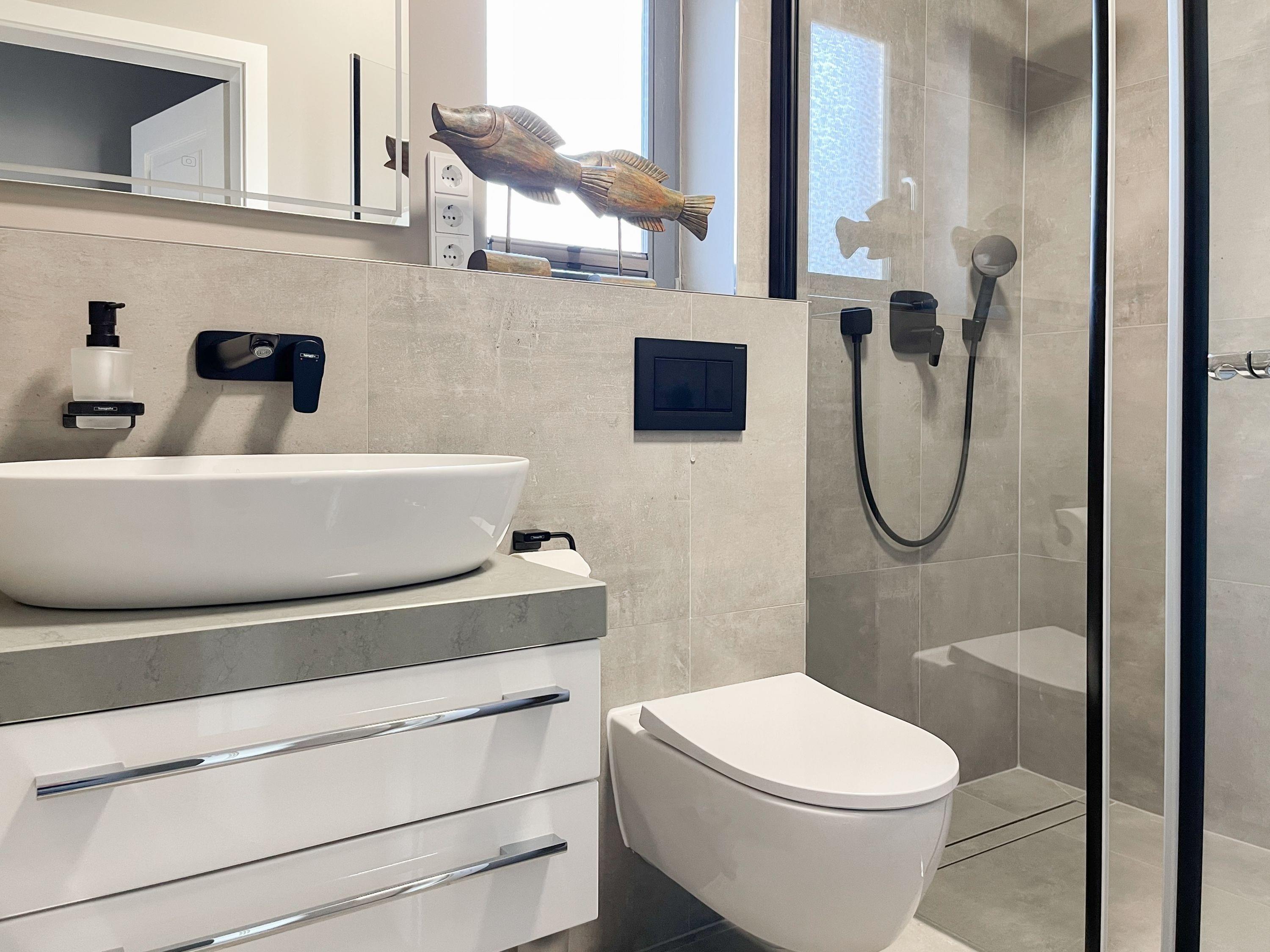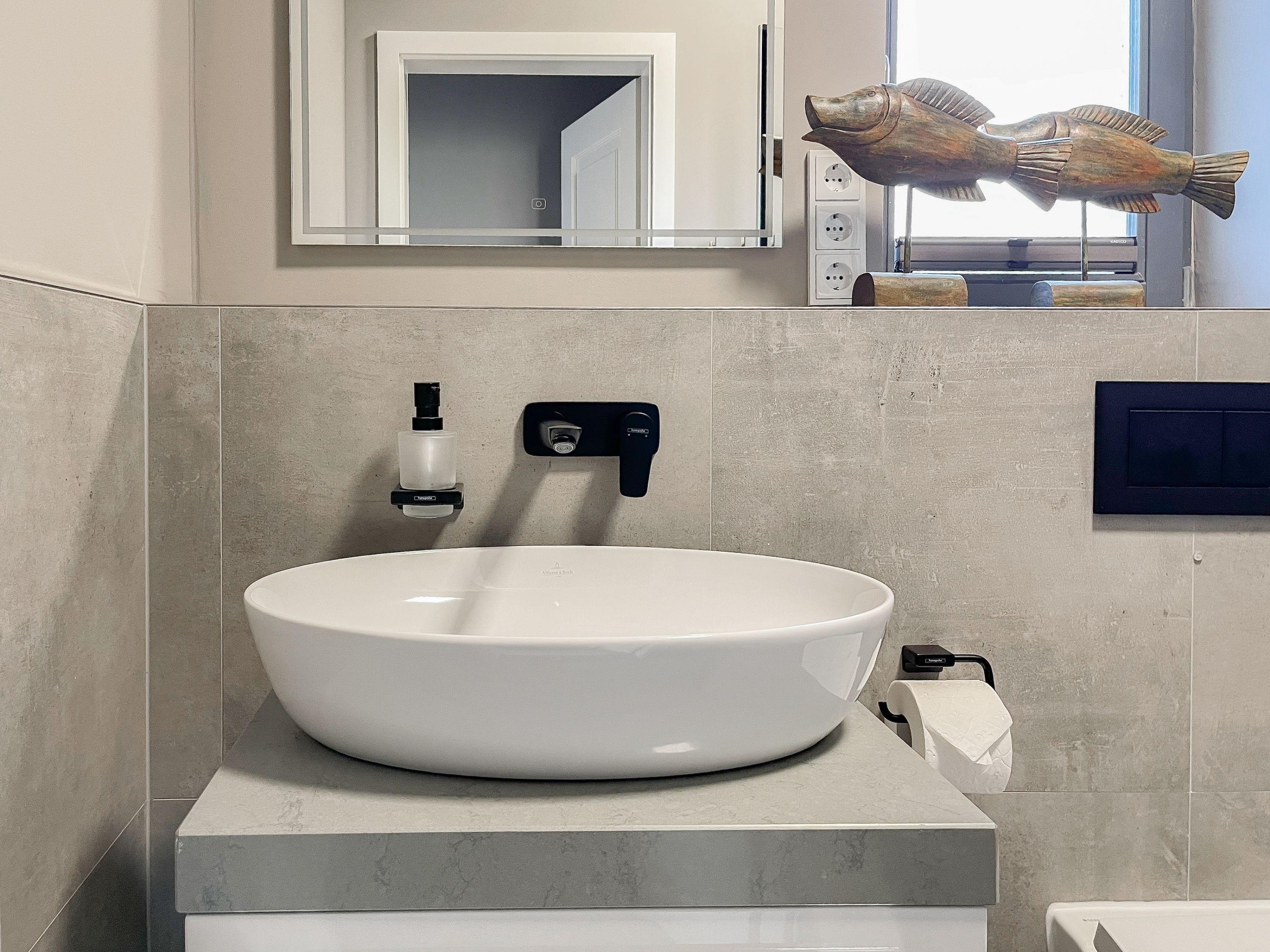 Deck 1 befindet sich im Erdgeschoss eines Ferienhauses mit nur 2 Wohnungen und bietet auf 90 qm Wohnfläche ausreichend Raum für 4 Personen, um einen erholsamen Ostseeurlaub zu verleben. Die hochwertige, äußerst geschmackvolle Einrichtung im Hampton Style schafft ein herrliches Ambiente zum Wohlfühlen, große, bodentiefe Fensterelemente sorgen für lichtdurchflutete Räumlichkeiten. Es stehen zwei separate Schlafzimmer zur Verfügung, die mit Boxspringbetten, Verdunklungsplissees, geräumigen Kleiderschränken und TV ausgestattet sind sowie 2 moderne Bäder mit Walk In Duschen, Waschtisch, WC[nbsp] und Fenster. Mittelpunkt der Wohnung bildet der großzügige Wohnbereich mit gemütlichen Sofas und herrlichem Blick in den wunderschön angelegten Garten. Der anschließende Essbereich ist für 4 Personen eingerichtet und die offene Küche ist selbstverständlich bestens ausgestattet. Der Außenbereich mit der 25 qm großen Terrasse (Südausrichtung), ausgestattet mit[nbsp] 2 Strandkörben und Gartenmöbeln,[nbsp] sowie der liebevoll gestaltete Gartenbereich mit großer Teichanlage, Goldfischen, Gräsern und Bambus stellt ein besonderes Highlight dar und wird garantiert zu jeder Tageszeit zum Lieblingsplatz. So bezaubernd die Teichanlage auch ist, könnte sie insbesondere für kleine Kinder eine Gefahr darstellen. Die Waschmaschine ist in einem separaten Raum innerhalb der Wohnung untergebracht. WLAN steht selbstverständlich zu kostenlosen Nutzung zur Verfügung. Fahrradständer befinden sich vor dem Eingang. Es fester Tiefgaragenstellplatz (Einfahrt 2 m) gehört zur Wohnung.
