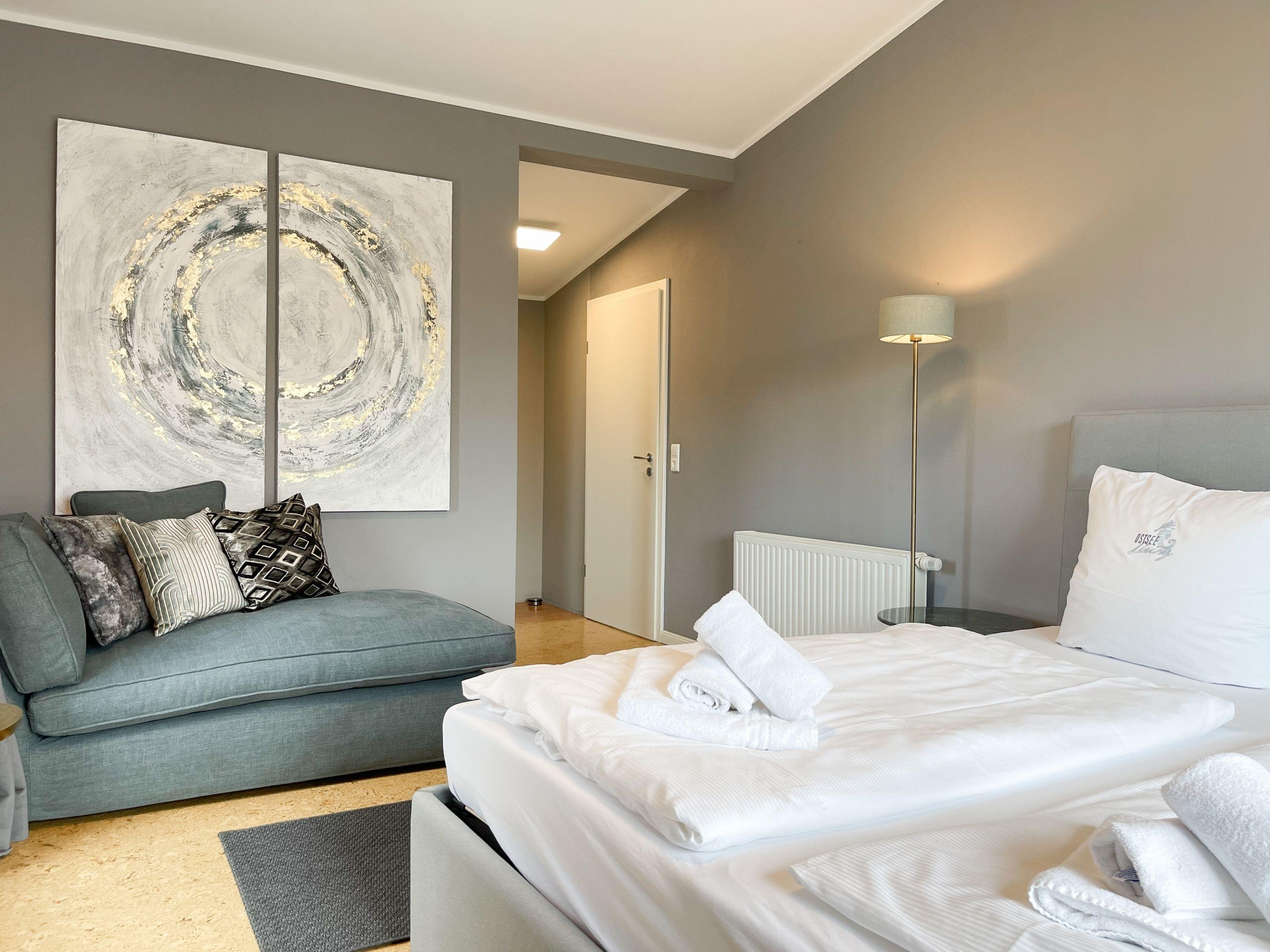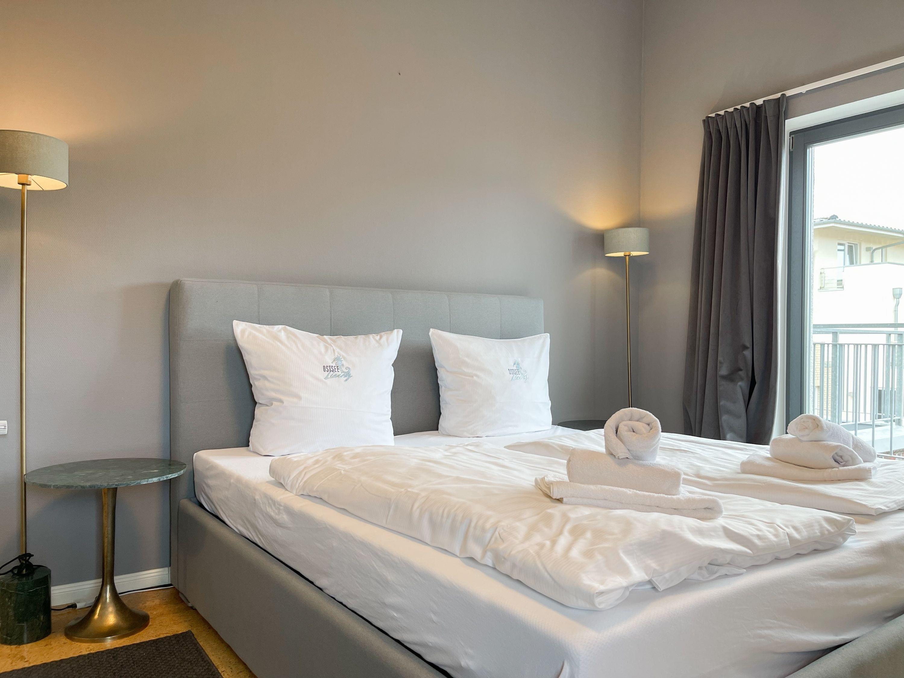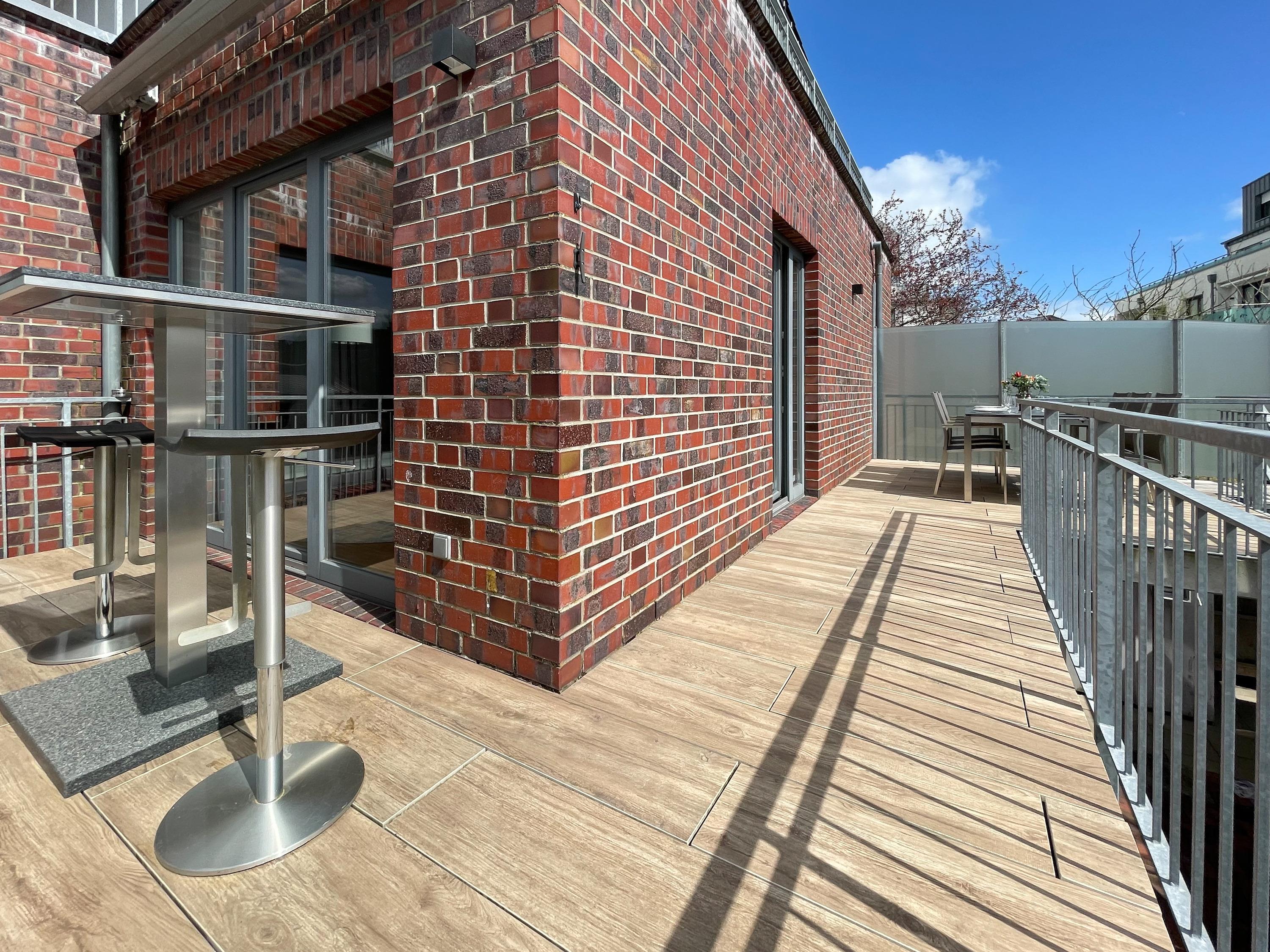 Luxuriöse Ferienwohnung Deck 2 in Timmendorfer Strand, nur 3 Minuten zum Strand, mit Sauna und zwei Terrassen.