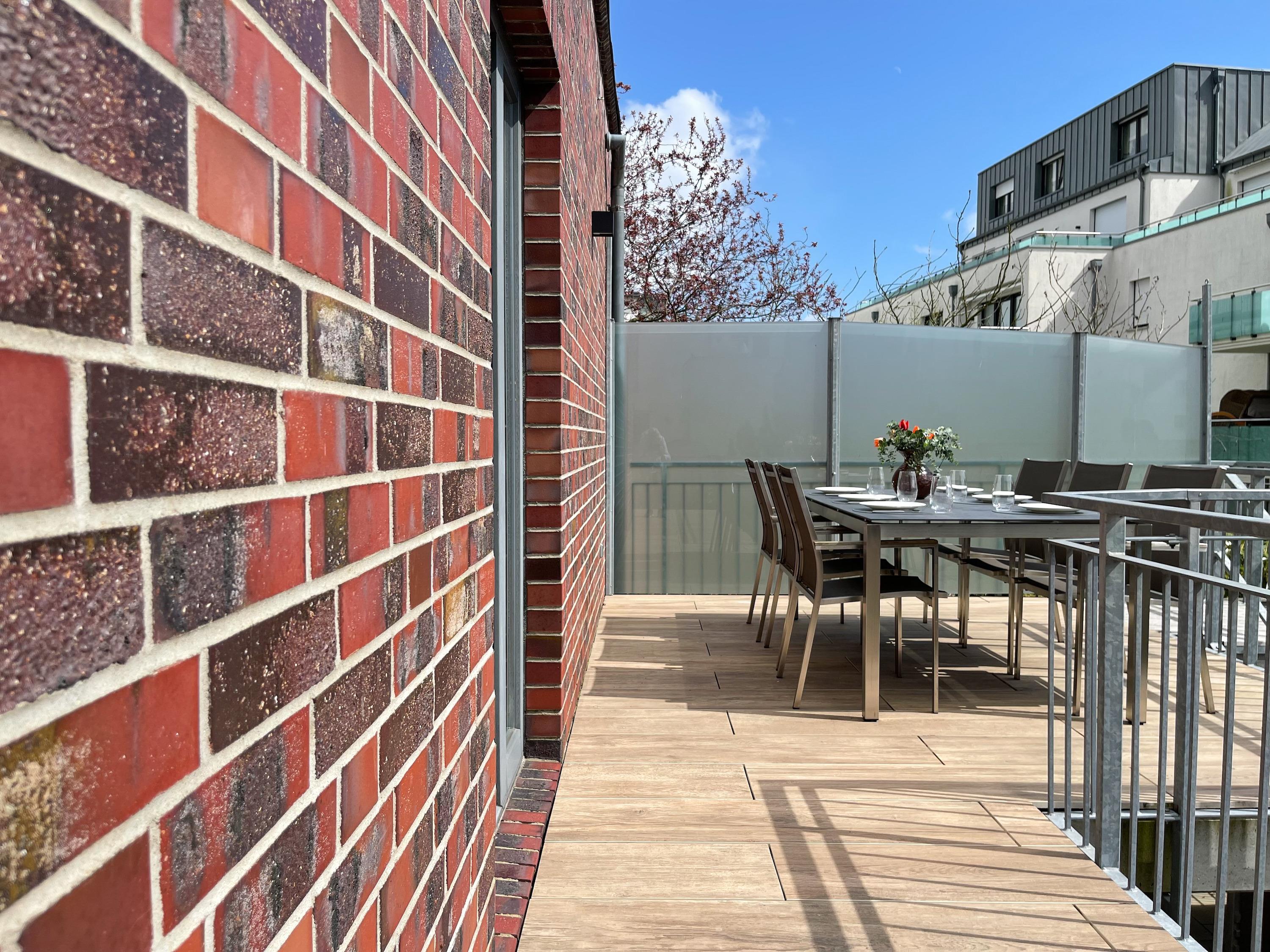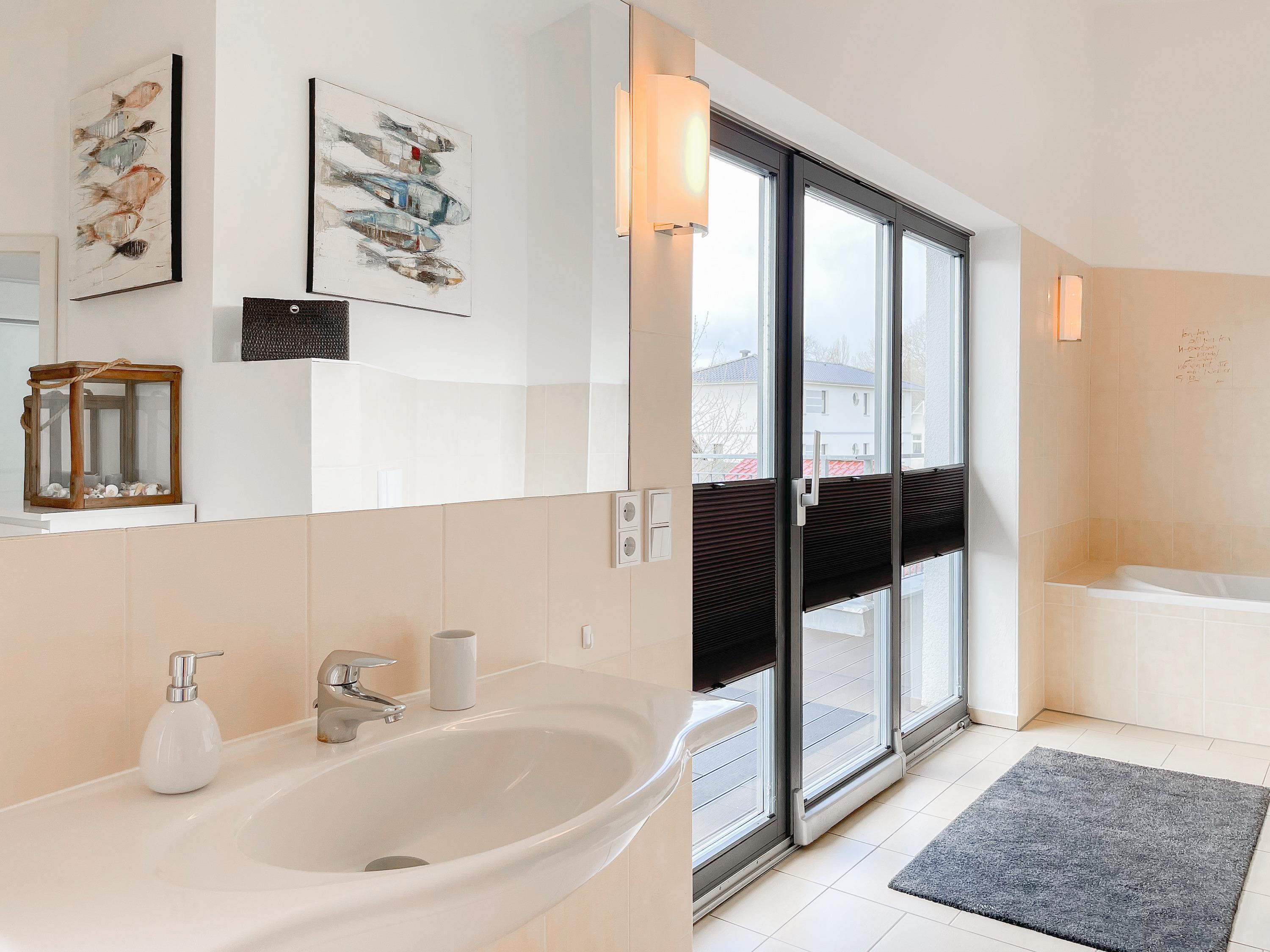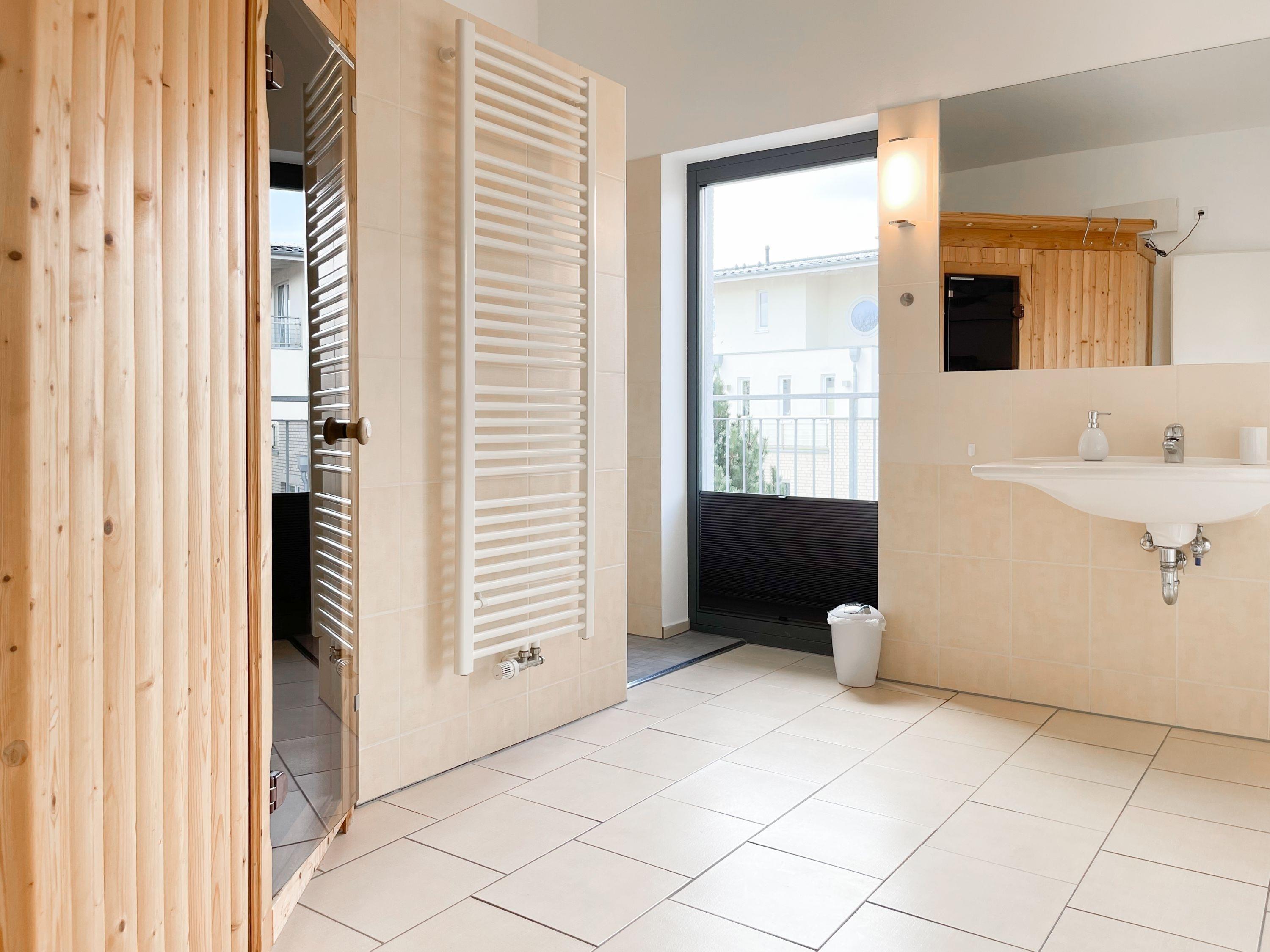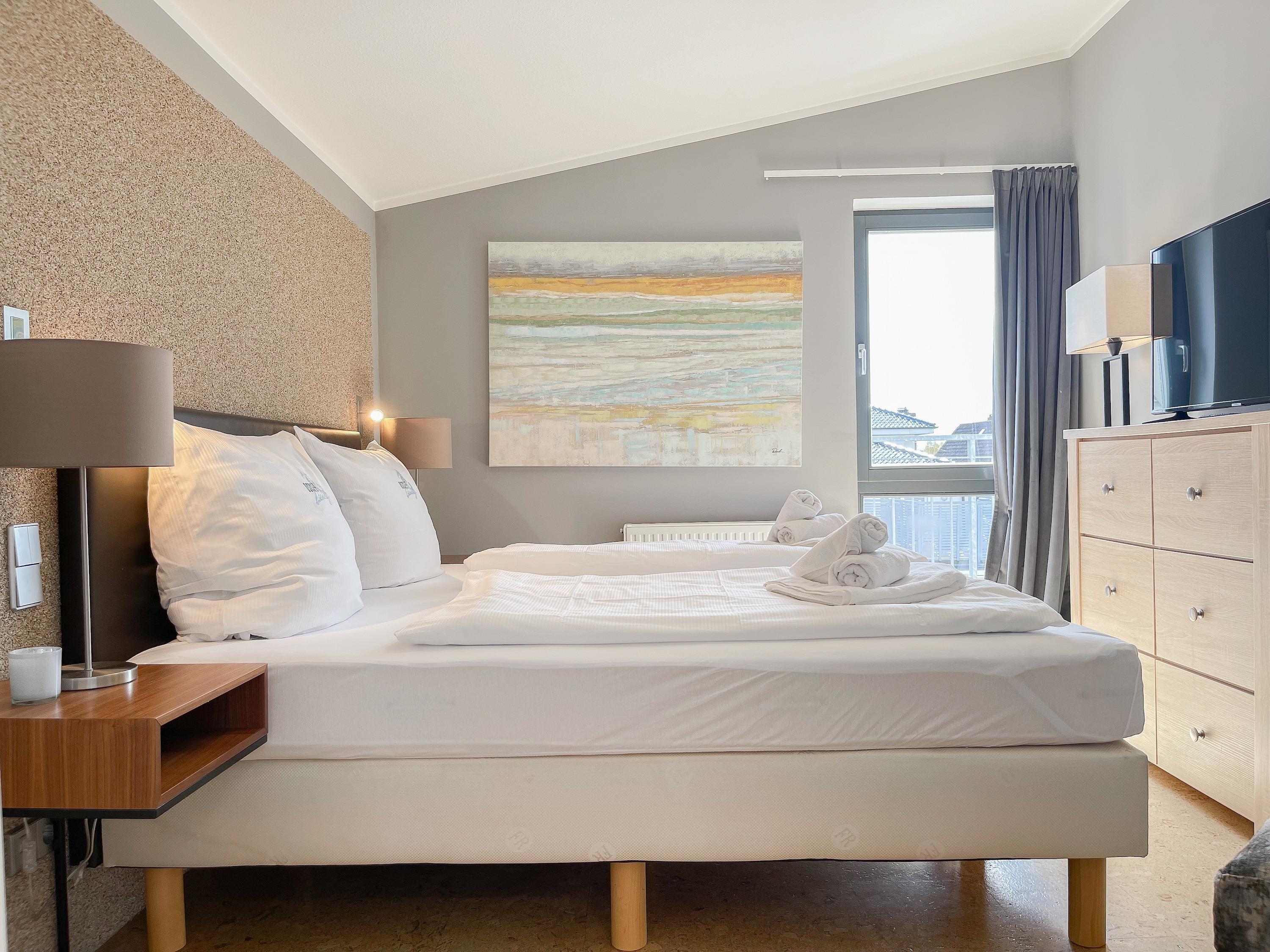 Luxuriöse Ferienwohnung Deck 2 in Timmendorfer Strand, nur 3 Minuten zum Strand, mit Sauna und zwei Terrassen.