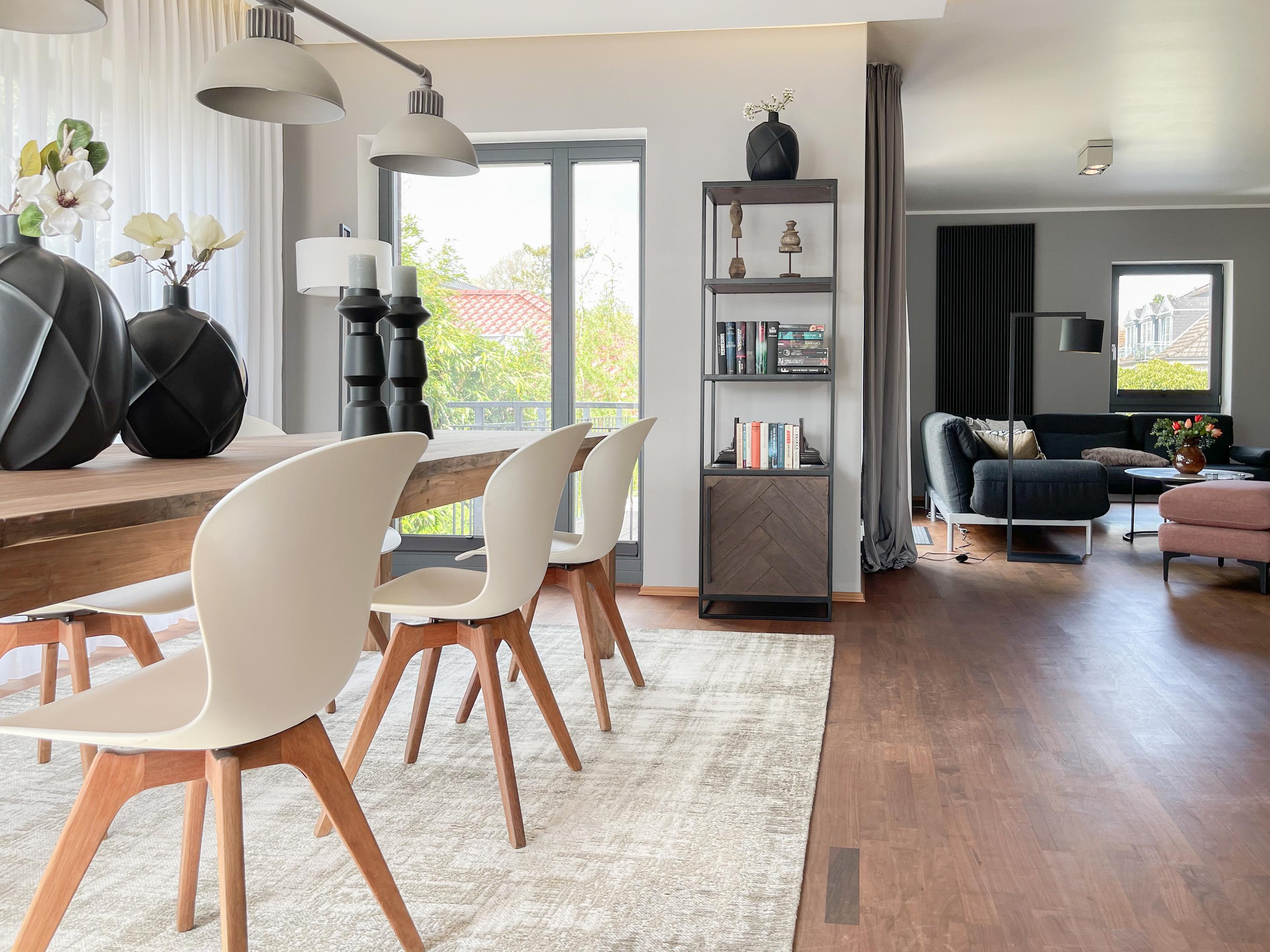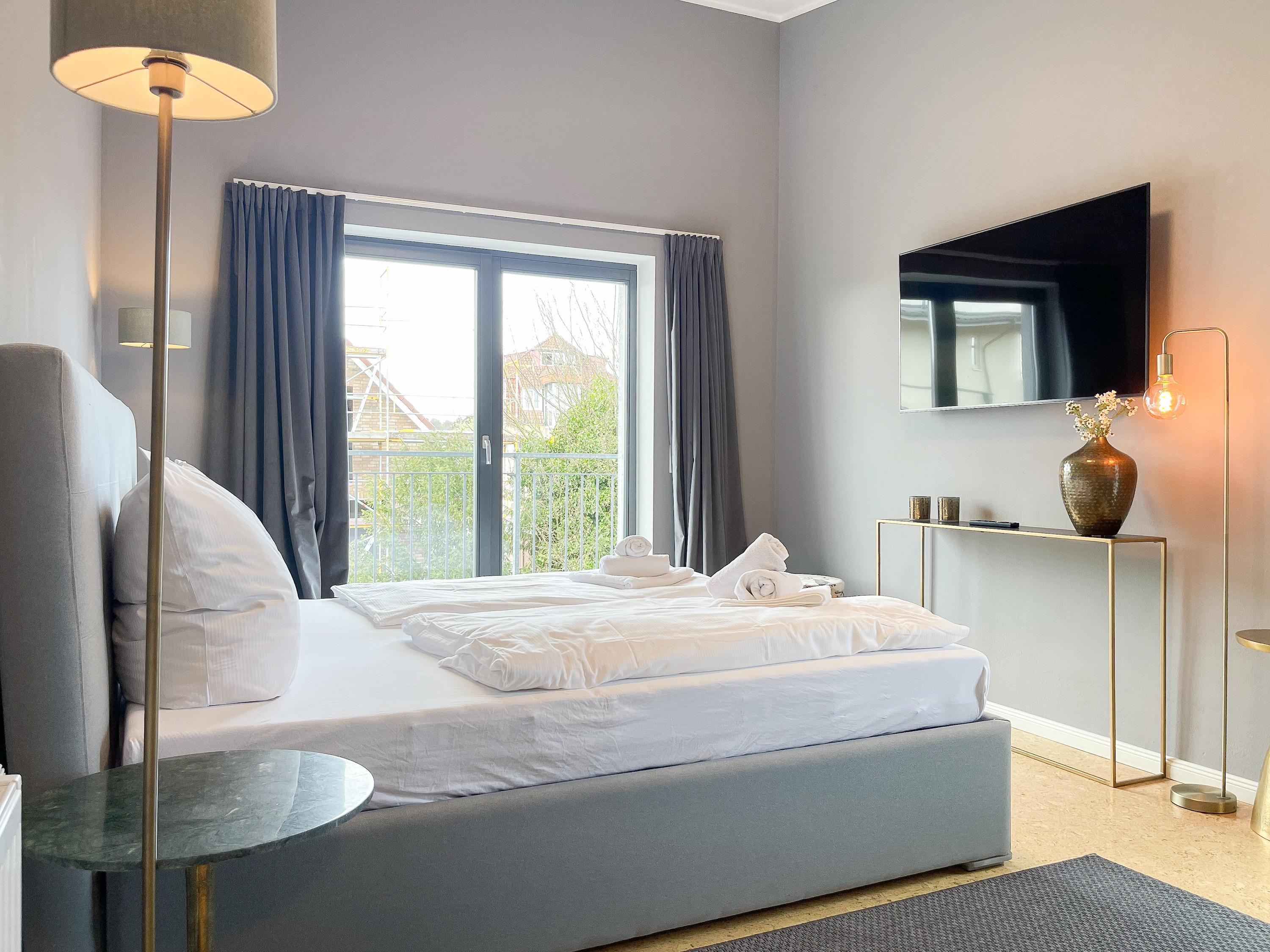 Das Penthouse Deck 2 erstreckt sich über 2 Ebenen im ersten und zweiten Obergeschoss eines Ferienhauses mit nur 2 Wohnungen und bietet auf 180 qm Wohnfläche (zzgl. Terrassen) ausreichend Raum für 6 Personen, um einen erholsamen Ostseeurlaub zu verleben. Der Zugang zur Wohnung erfolgt über das Erdgeschoss mit großzügigem Eingangsbereich, Garderobe und reichlich Stellfläche für Kinderwagen usw. Über die offene Treppe ist das erste Obergeschoss zu erreichen. Hier erwarten Sie lichtdurchflutete, unglaublich großzügige Räumlichkeiten mit bodentiefen Fensterelementen, hochwertig eingerichtet im Hampton Style. Das Leben spielt sich im äußerst weitläufigen Wohn- Essbereich ab, der mit einer hochwertigen Sofalandschaft, einem riesigen Essbereich für gemütliches Beisammensein und einer Leseecke eingerichtet ist. Es gibt drei Zugänge zu den vorgelagerten Dachterrassen, die mit Gartenmöbeln und elektrischer Markise ausgestattet sind. Genießen Sie die Sonne von früh bis spät mit Blick auf den liebevoll gestalteten Garten mit Teichanlage und Goldfischen von der Wohnung Deck 1. Die offene Einbauküche mit Kochinsel bietet viel Platz und lädt zum gemeinsamen Kochen ein. Auf dieser Ebene befindet sich weiterhin ein Schlafzimmer mit einem Doppelbett (180x200), Verdunkelungsvorhängen, Kinderbettchen und Wickelkommode sowie ein Gäste WC und ein Hauswirtschaftsraum, in dem auch Waschmaschine und Trockner untergebracht sind. Über das offene Treppenhaus ist die zweite Wohnebene zu erreichen. Hier befinden sich zwei weitere Schlafzimmer, ausgestattet mit Doppelbetten, Verdunkleungsvorhänge und TV sowie ein großzügig angelegtes Wellnessbad mit Dusche, Badewanne. Eines der Schlafzimmer verfügt über ein weiteres Duschbad ensuite und im Flurbereich ist ein Kleiderschrank untergebracht, der reichlich Stauraum für die Urlaubsgarderobe bietet.