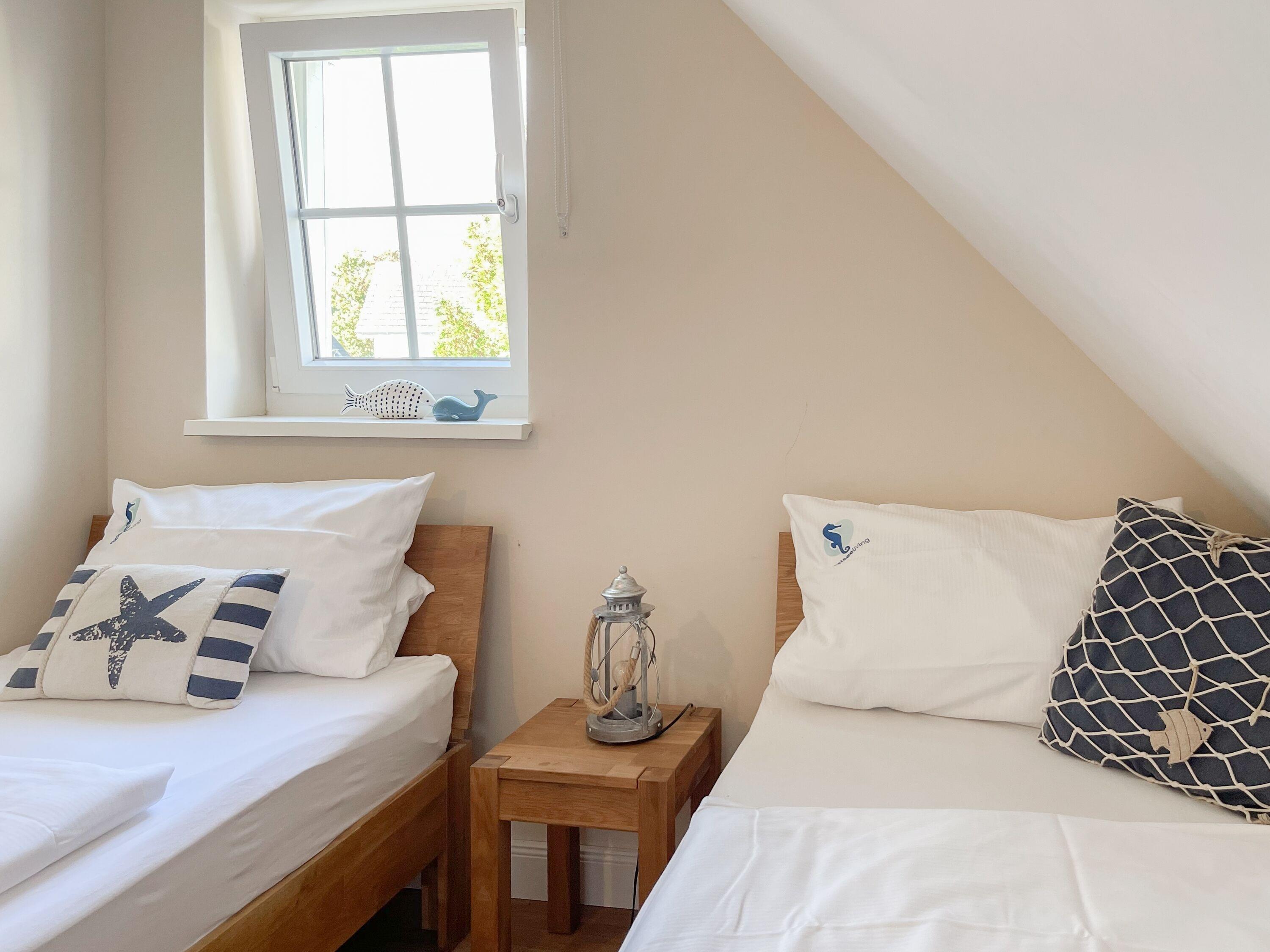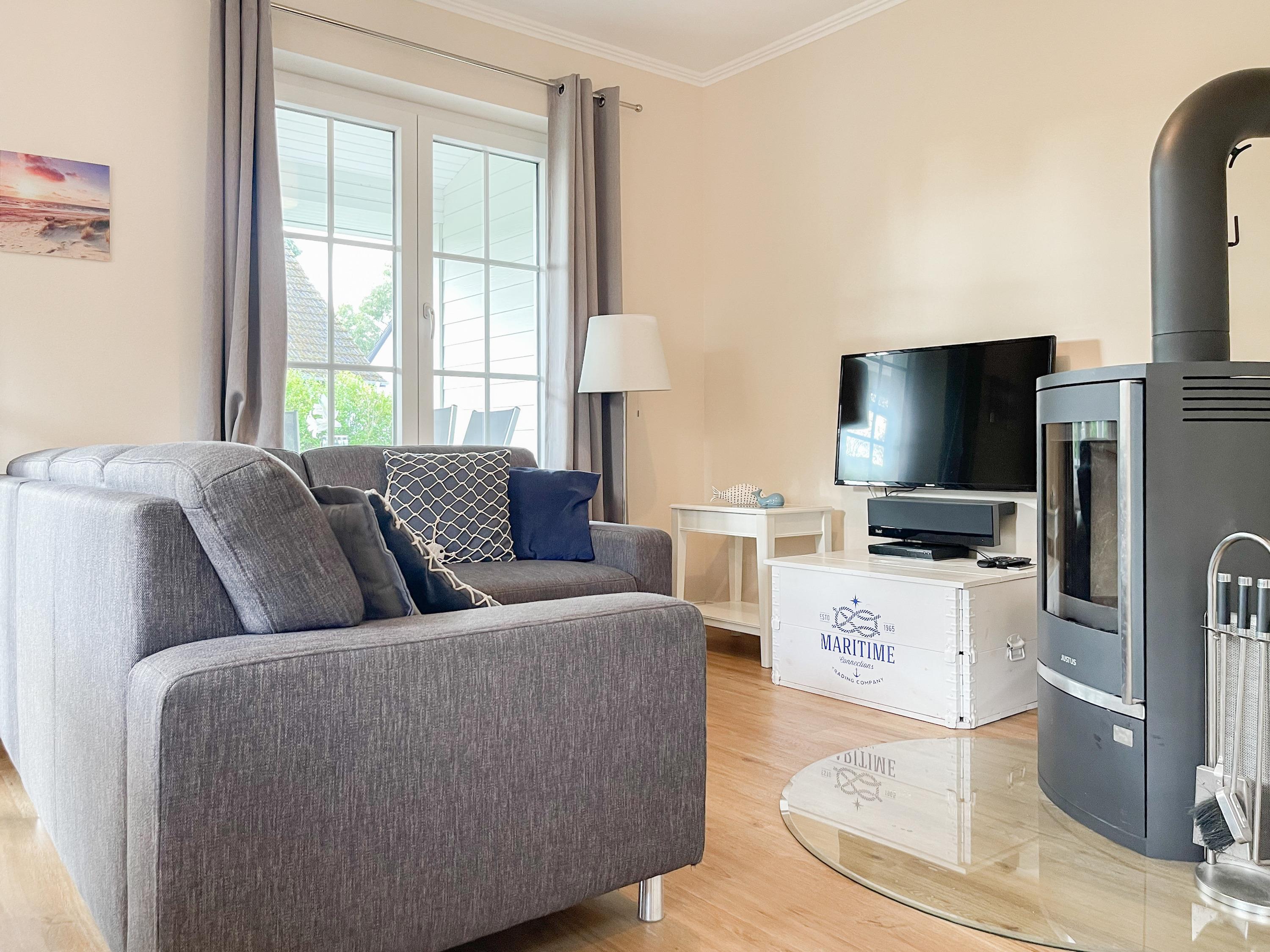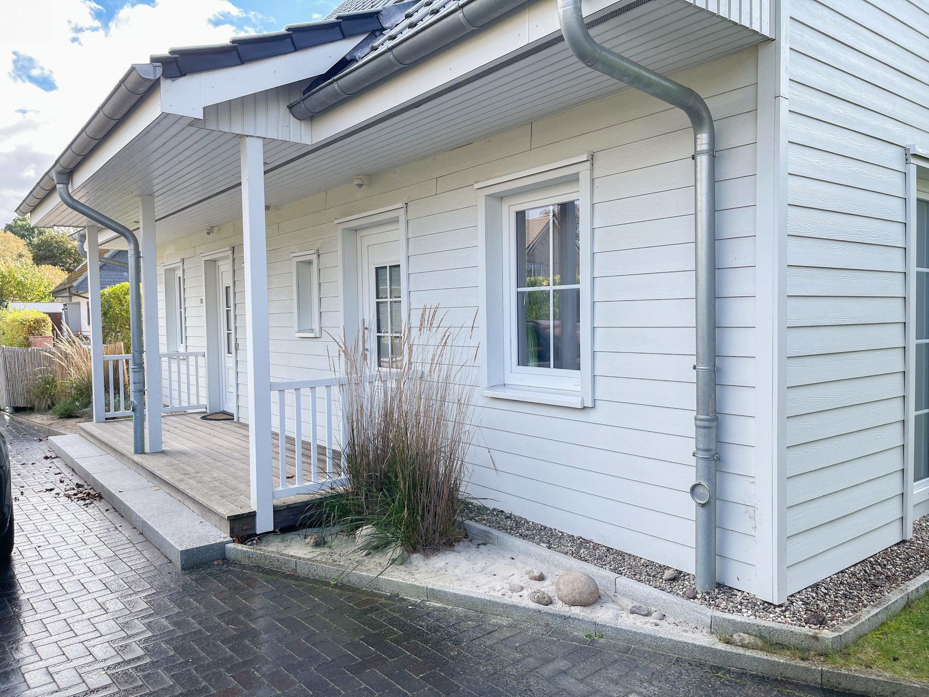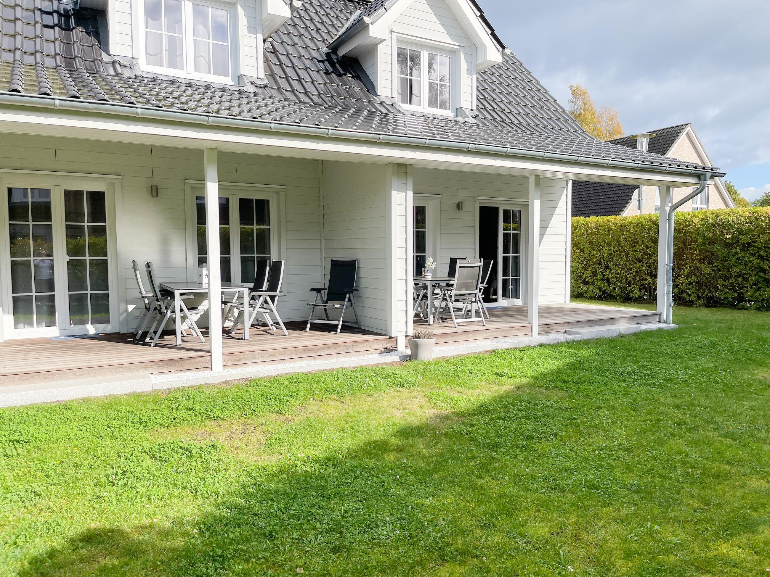 Es erwartet Sie ein wunderschönes Doppelhaus im Hampton Style. Sonnige Räumlichkeiten und die hochwertige Ausstattung sorgen für hohen Wohnstandard in einem schönen Ambiente. Mit 3 Schlafzimmern, einem modernen Bad mit Dusche und Badewanne sowie einem zusätzlichen Gäste WC, bietet das Haus auf[nbsp] 75 qm Wohnfläche ausreichend Raum für 5 Personen, um einen erholsamen Ostseeurlaub ganz nah am Strand zu verbringen. Im Erdgeschoss erwartet Sie ein gemütlich eingerichteter Wohnbereich mit Sofa, TV und Kaminofen, ein anschließender Essbereich sowie eine offene Einbauküche in bester Ausstattung zum gemeinsamen Kochen. Die vorgelagerte überdachte Veranda in Südausrichtung mit Garten ist ein herrlicher Platz zum Entspannen oder für Outdoor Aktivitäten. Ein Schlafzimmer, ausgestattet mit einem Einzelbett (90x200) und einer Kommode[nbsp] sowie ein Gäste WC, sind ebenfalls im Erdgeschoss untergebracht. Im Obergeschoss gibt es zwei separate Schlafzimmer, eines ist mit einem Doppelbett (180x200), einem Kleiderschrank und einem weiteren[nbsp] TV ausgestattet. Das andere ist mit 2 Einzelbetten (90x200), einem Kleiderschrank und einem Schreibtisch für das Homeoffice eingerichtet. Das hochwertige Bad mit Badewanne, Dusche und integrierter Waschmaschine, ist modern und lichtdurchflutet. Die Fenster der Schlafzimmer lassen sich abdunkeln (keine Blackout Verdunkelung). WLAN steht selbstverständlich zur Verfügung.
