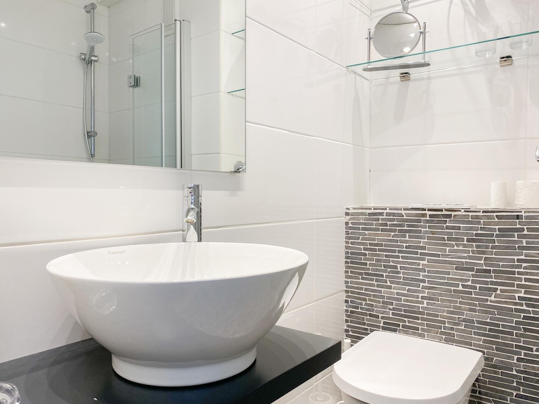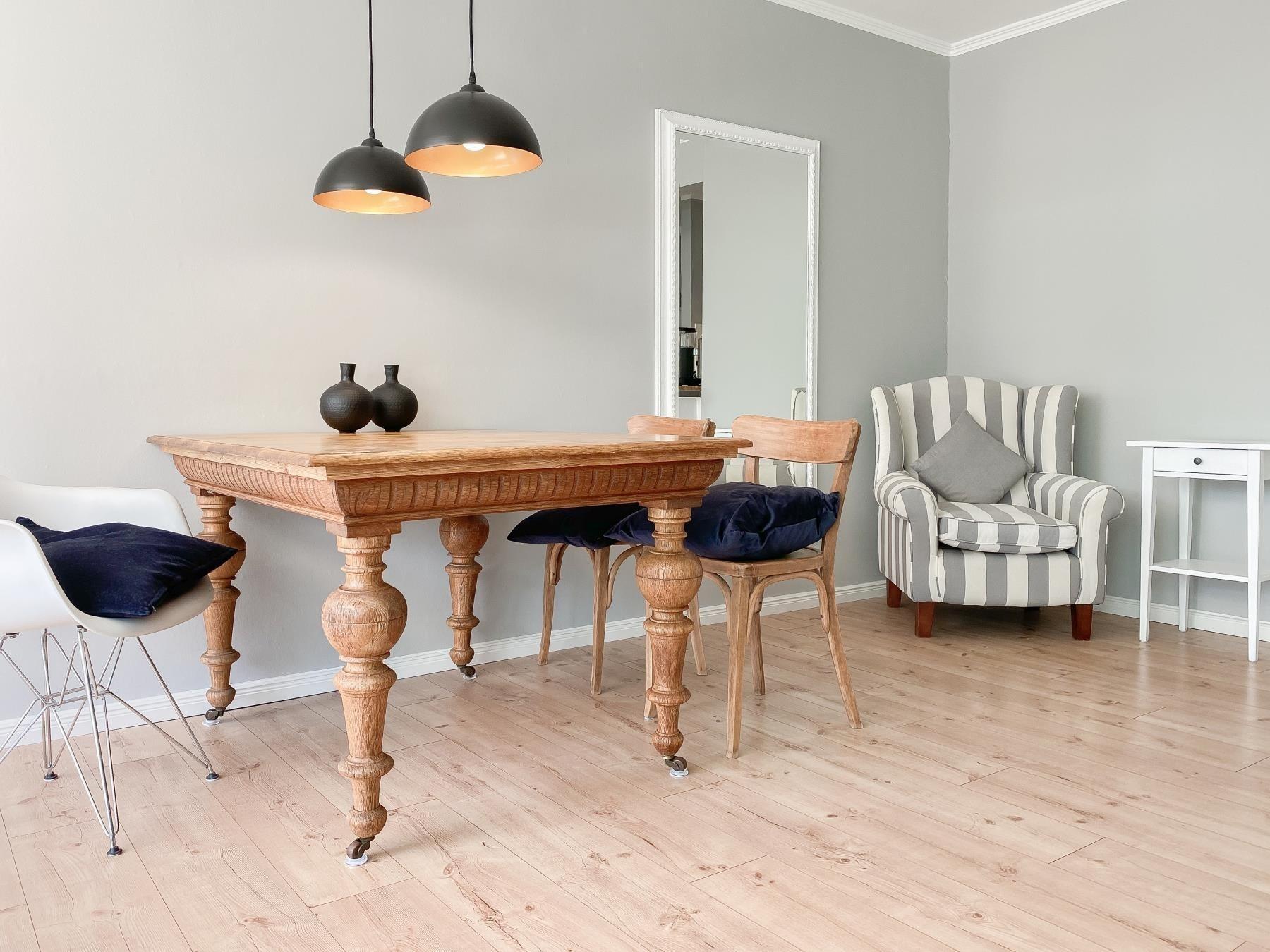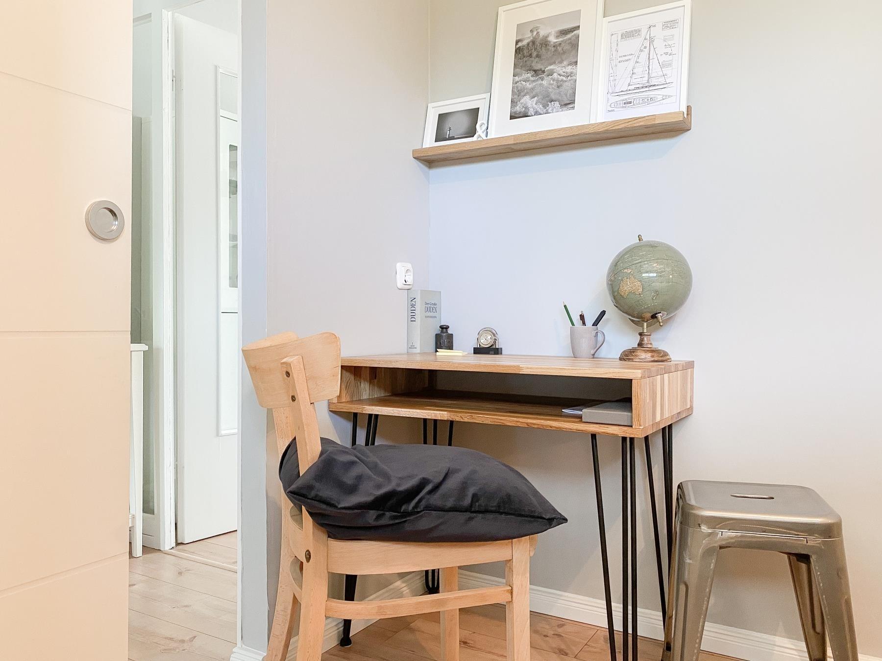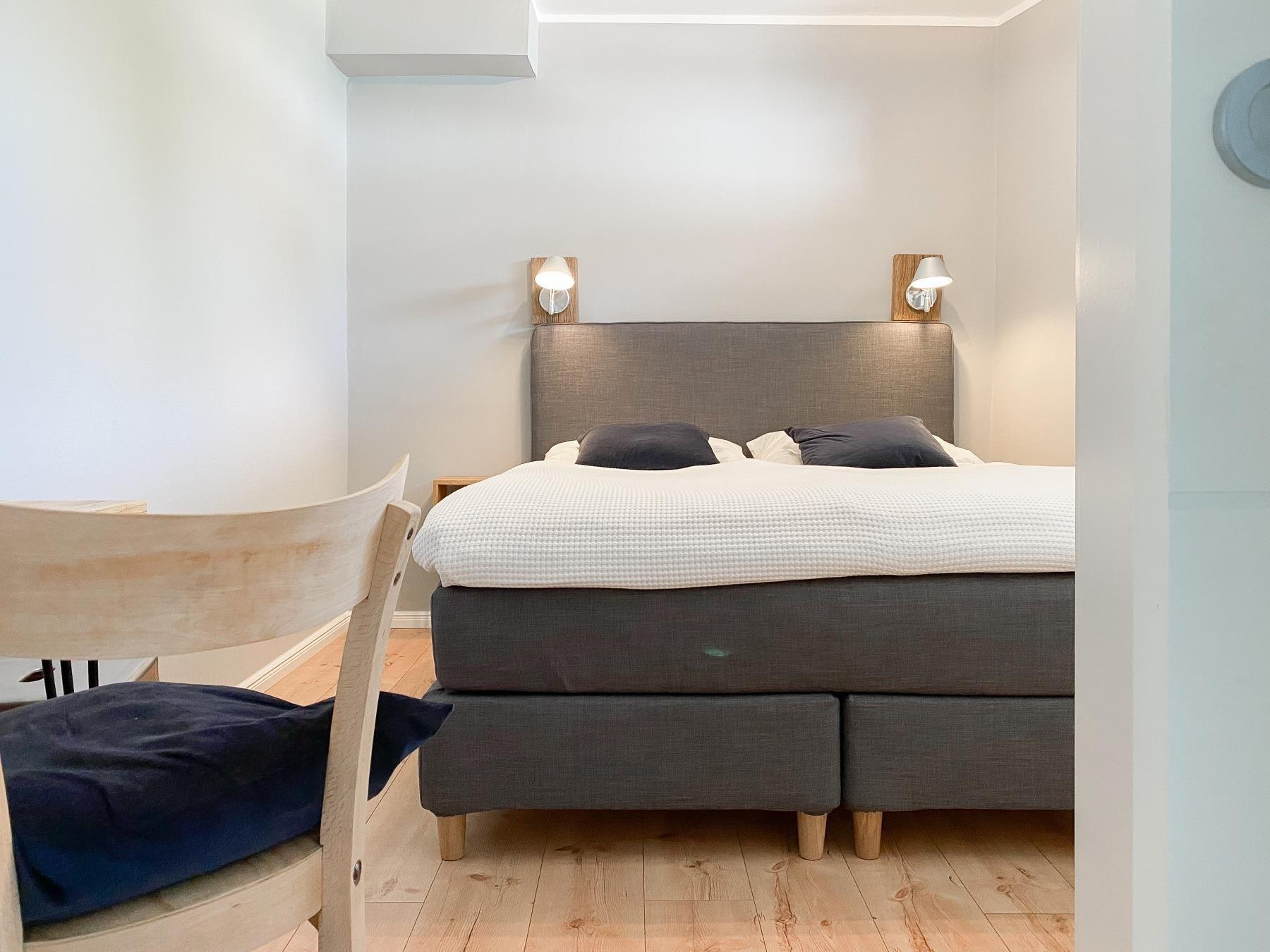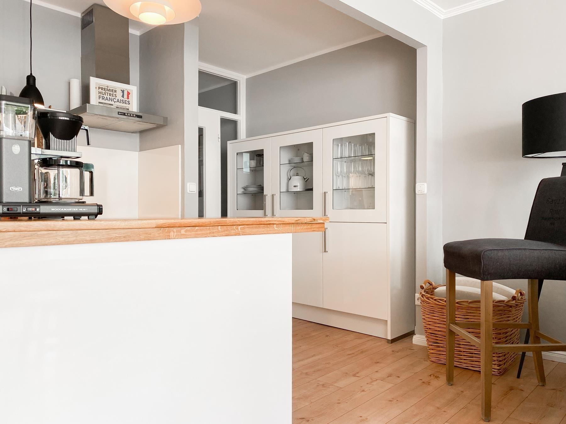 Die Ferienwohnung liegt im 1. Obergeschoss einer terrassenförmigen Wohnanlage zur lichtdurchfluteten Südseite. Der äußerst großzügig angelegte Sonnenbalkon, ausgestattet mit Gartenmöbeln, Sonnenliegen und Markise, ist ein besonderes Highlight. Die "Freibeuter-Höhle" besticht durch ihr offenes Raumkonzept mit vielen liebevollen Details und lädt 2 bis 3 Personen zum Wohlfühlen in Strandnähe ein. Es erwartet Sie ein heller, freundlicher Wohnraum mit bodentiefen Fensterflächen, geschmackvoll gestaltet und hochwertig eingerichtet mit einem Schlafsofa (140x200), TV, Hifi Anlage und einem Essbereich für 3 Personen. WLAN steht selbstverständlich zur kostenlosen Nutzung zur Verfügung. Die integrierte Küche ist bestens ausgestattet, unter anderem mit Spülmaschine, Backofen und Induktionskochfeld. Im separaten Schlafzimmer befinden sich neben einem hochwertigen Boxspringdoppelbett (160x200) und einem Kleiderschrank auch ein kleiner Schreibtisch. Es gibt ein kleines Bad mit Walk In Dusche. Die Freibeuter-Höhle liegt direkt neben dem kleinen Strandräuber, ideal zum Urlauben unter Freunden, ganz nah beieinander mit Privatsphäre.