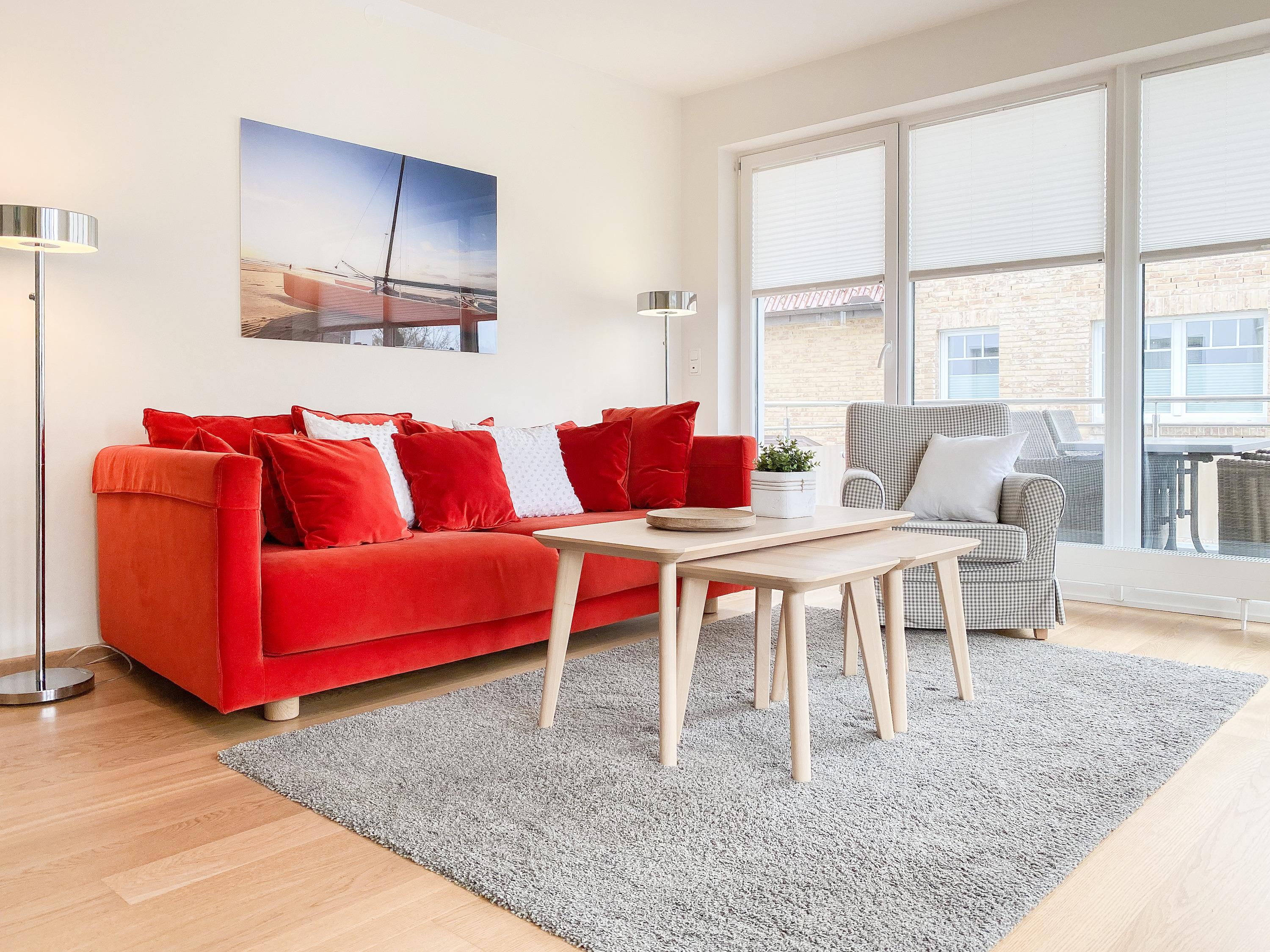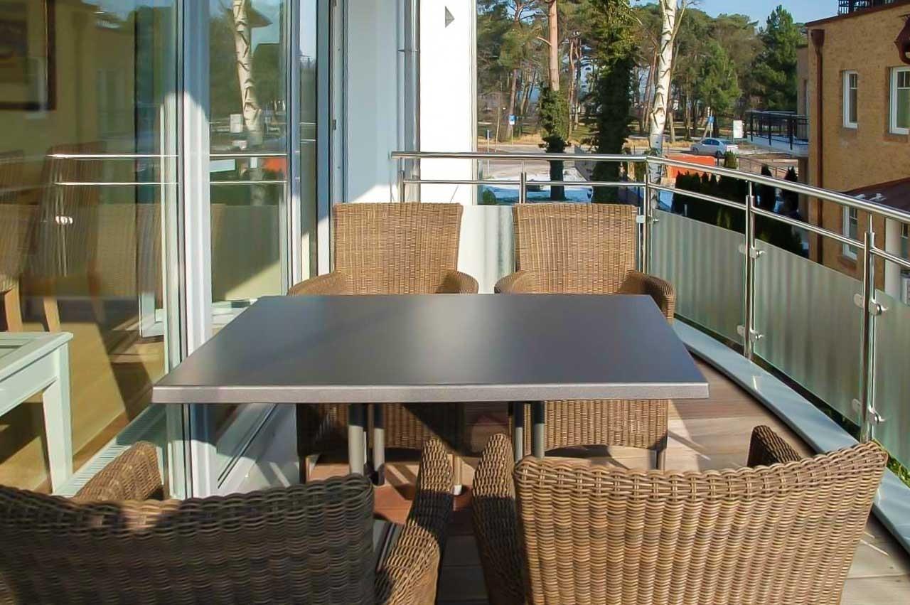 Moderne Ferienwohnung am Meer in Timmendorfer Strand mit Balkon und Meerblick.