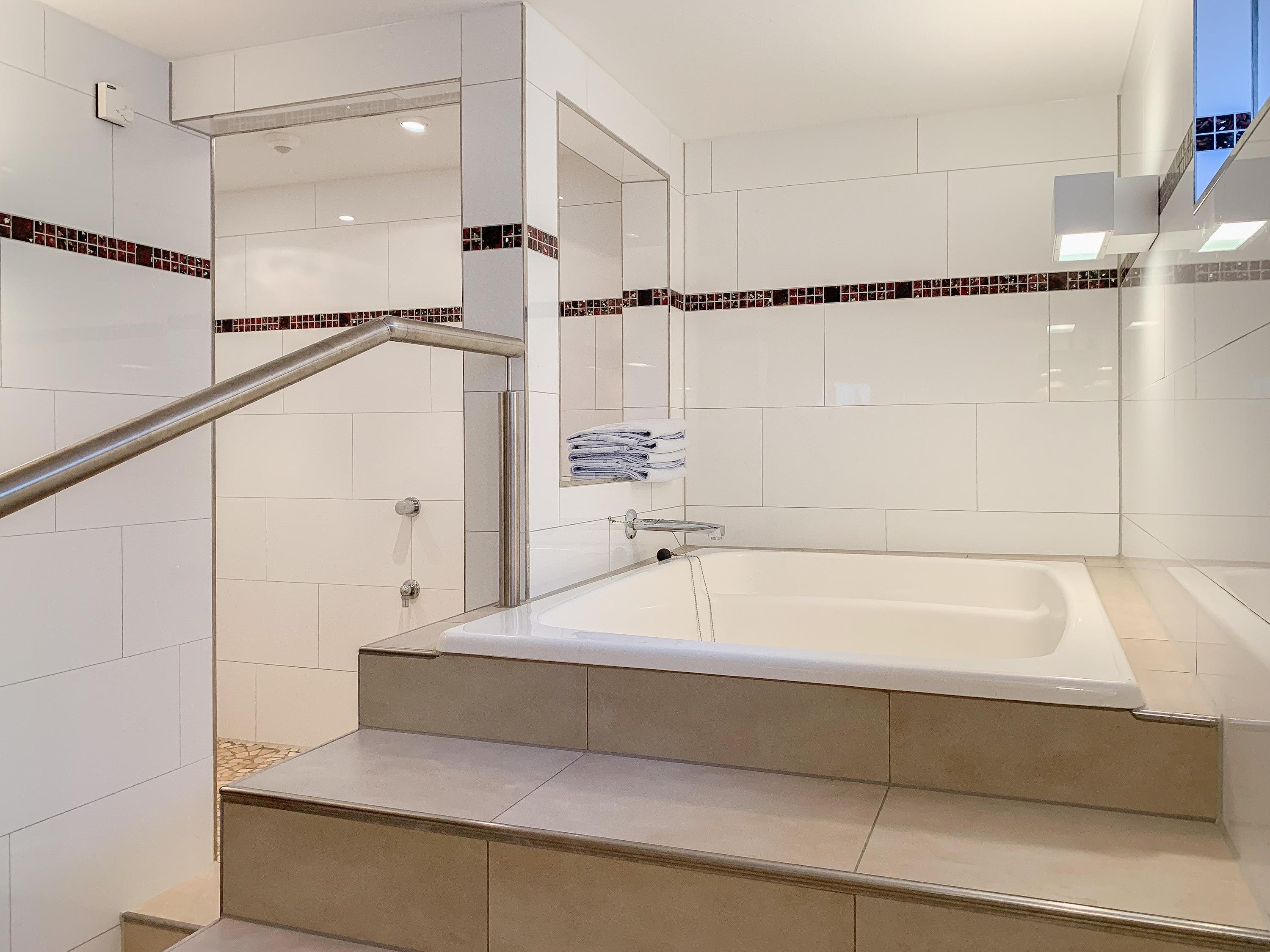 Ein sehr schöner Wellnessbereich mit Sauna (Nutzung gegen[nbsp] Gebühr), Tauchbecken, Dusche und Ruheraum sowie[nbsp] Crosstrainer und[nbsp] Kicker stehen den Gästen des Hauses zur gemeinschaftlichen Nutzung zur Verfügung. Ebenso eine Waschmaschine und ein Trockner (Münzgeräte).