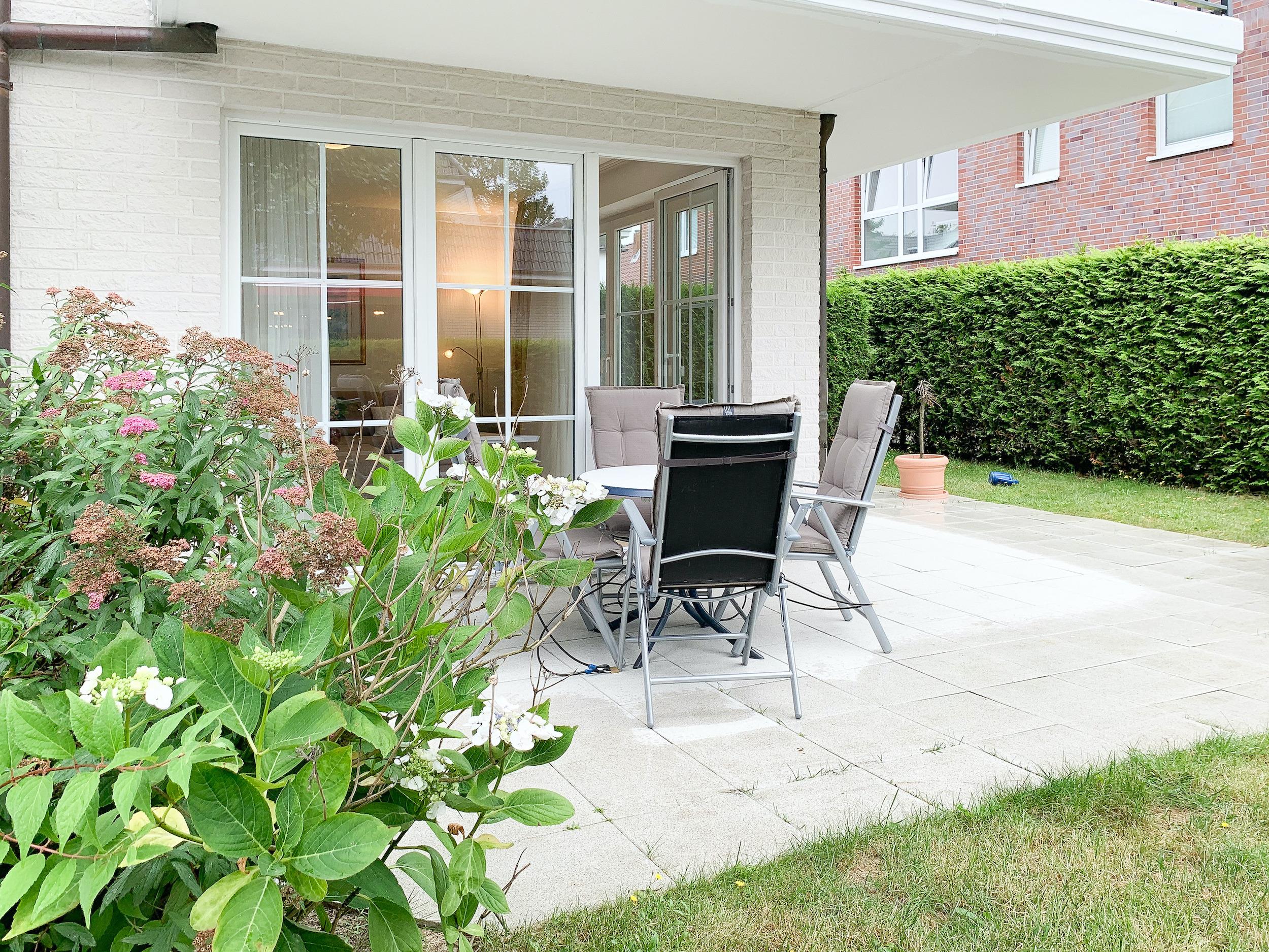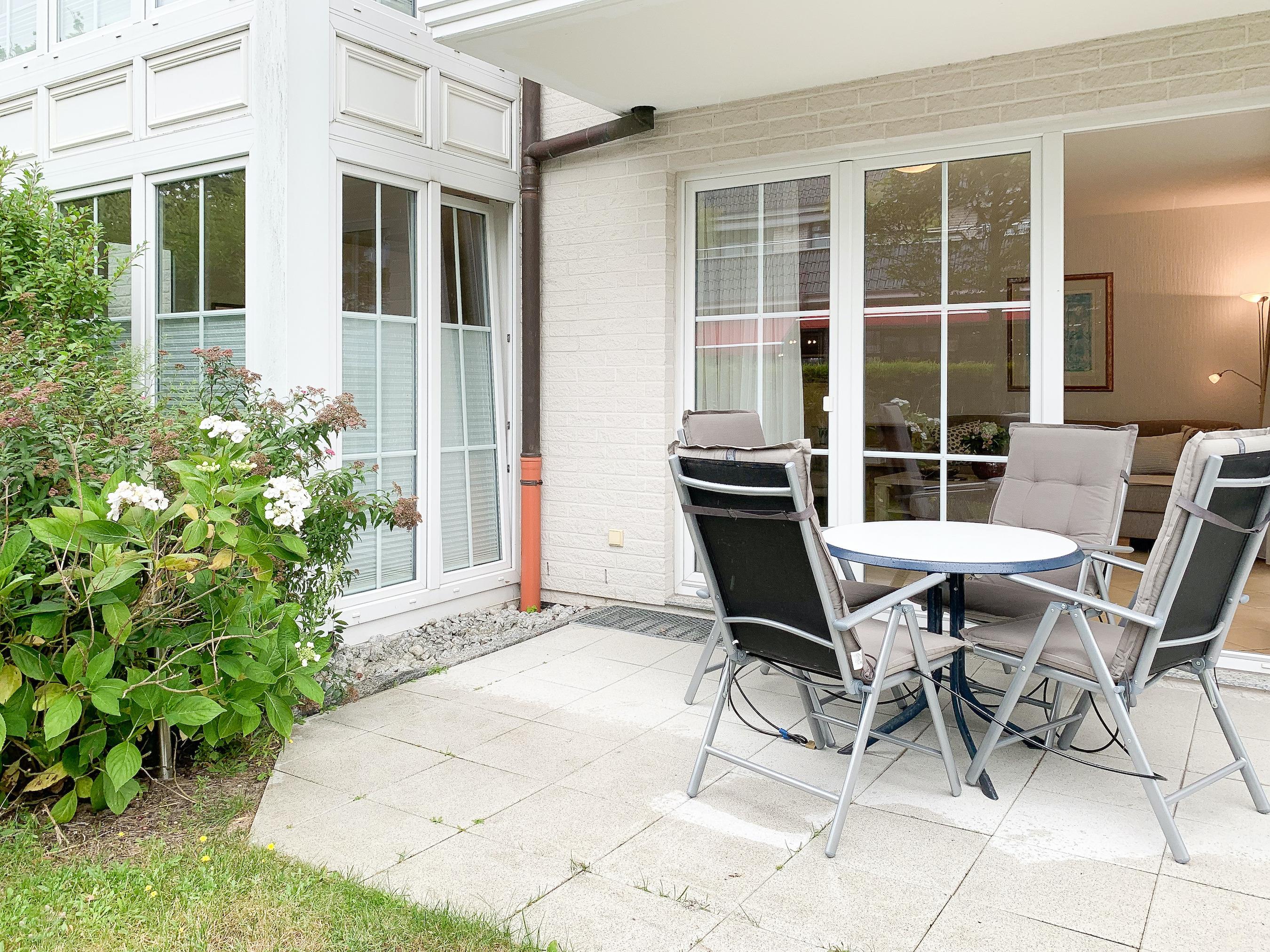 Komfortable Ferienwohnung am Timmendorfer Strand mit großer Terrasse und gemeinschaftlichem Wellnessbereich.