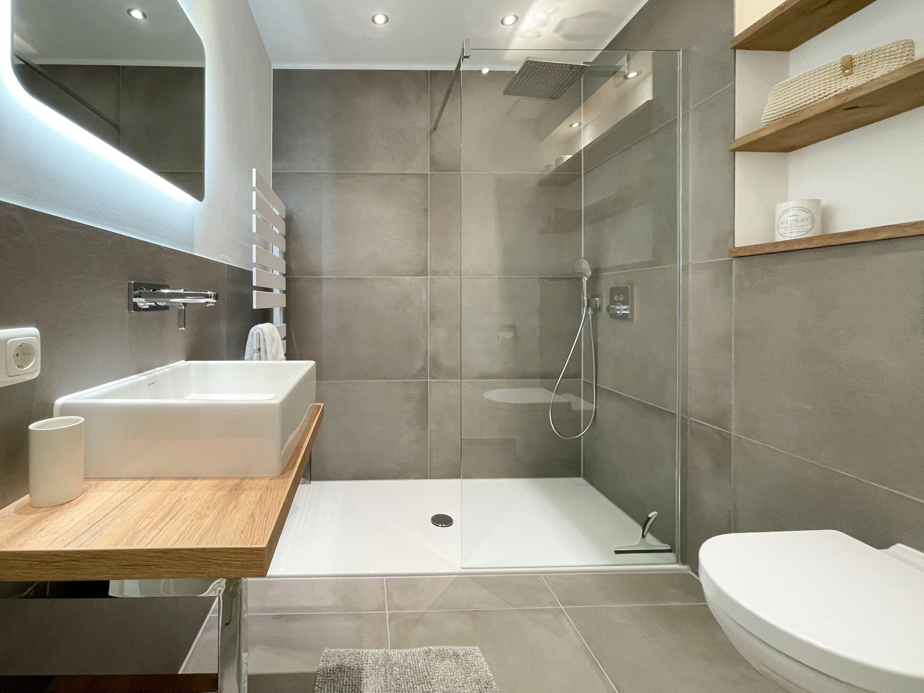 Mit dem hauseigenen Fahrstuhl erreichen Sie bequem den großzügigen Wellnessbereich mit Sauna(Münzbetrieb), Tauchbecken, Dusche, Crosstrainer und Kicker, der im Untergeschoss des Hauses untergebracht ist und den Gästen zur gemeinschaftlichen Nutzung zur Verfügung steht. Waschmaschine und Trockner (Münzgeräte) sind ebenfalls auf dieser Ebene untergebracht.