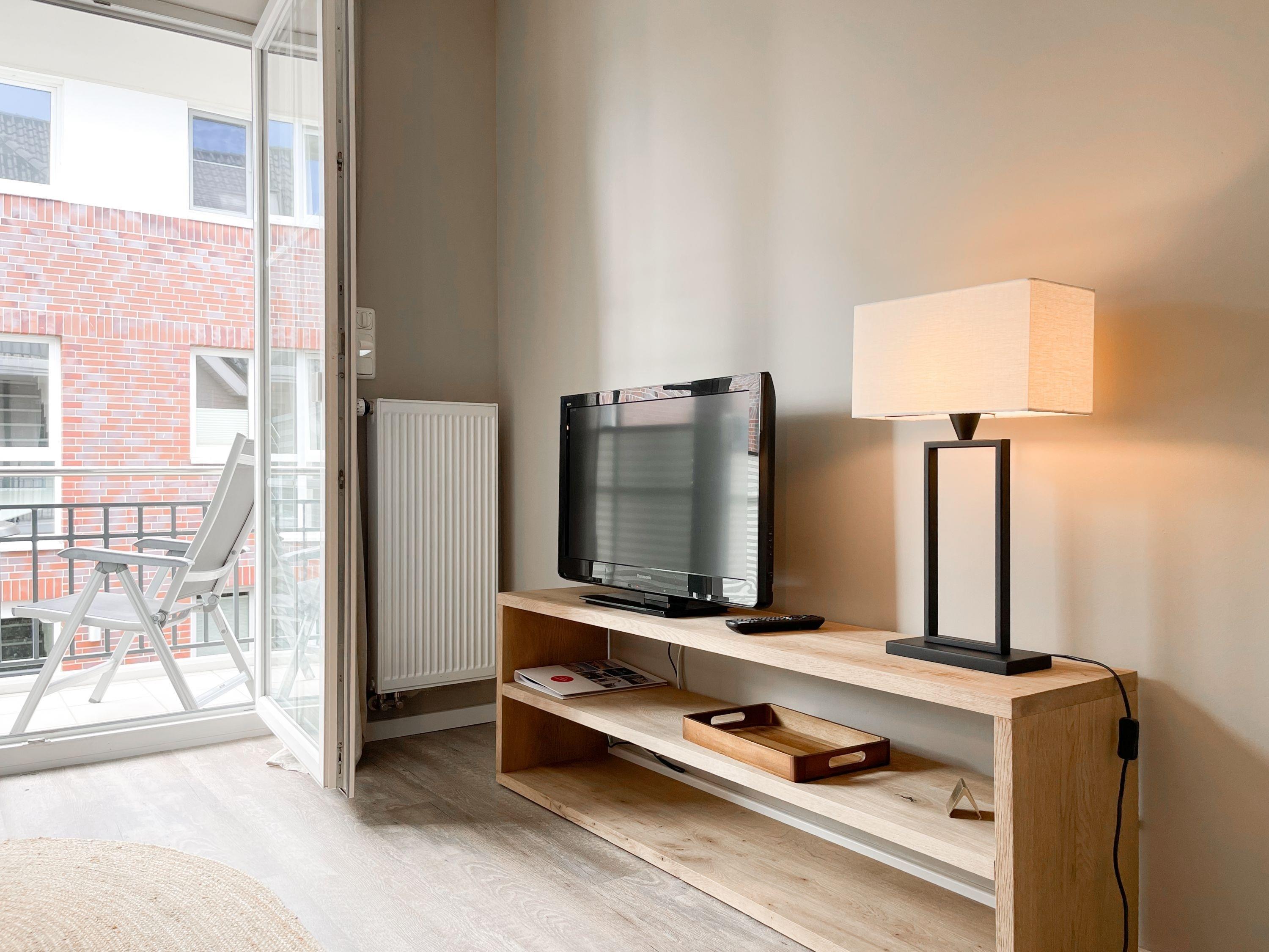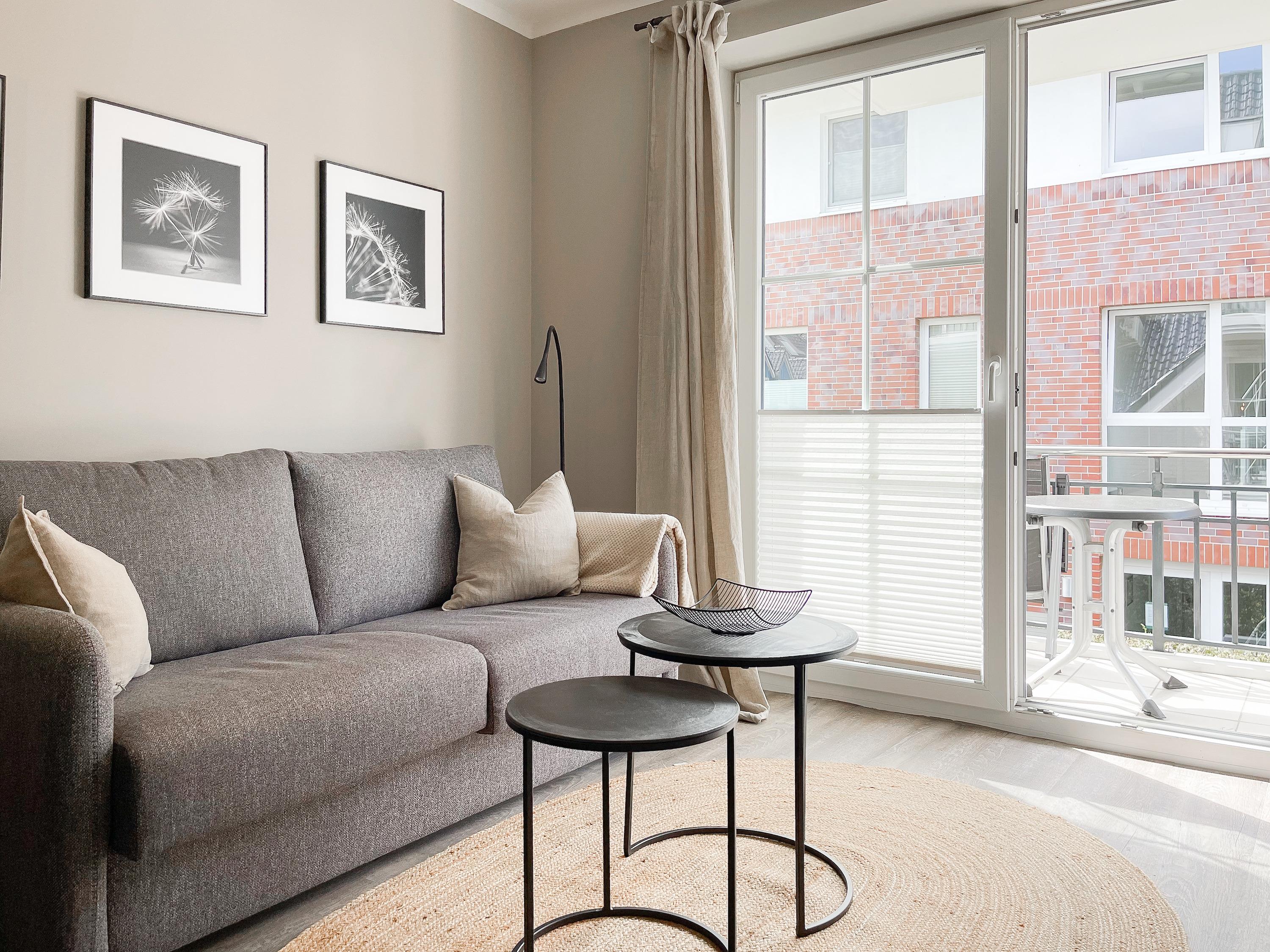 Die in 2022 renovierte Ferienwohnung befindet sich im ersten Obergeschoss im Haus Matito und ist bestens für 3 Personen geeignet, um einen schönen Urlaub zu verbringen. Warme Farben und die hochwertige Einrichtung mit viel Liebe zum Detail sorgen für eine wunderbare Atmosphäre zum wohl fühlen. Die neue Einbauküche ist bestens ausgestattet und der gemütliche Essbereich fügt sich perfekt ein. Das Sofa mit Schlaffunktion bietet eine Liegefläche von 140x200. TV, Radio und kostenloser Internetzugang über WLAN stehen zur Verfügung. Das separate Schlafzimmer ist mit einem Doppelbett (180x200) und einem Kleiderschrank mit ausreichend Staufläche, ausgestattet. Das neue Duschbad ist sehr hochwertig gestaltet. Der Sonnenbalkon erstreckt sich über die gesamte Breite der Wohnung. Ein schöner Platz, um die Sonne zu genießen und zu entspannen! Zur Wohnung gehört ein fester PKW Stellplatz auf dem Grundstück und ein Fahrradständer (außen) ist vorhanden.