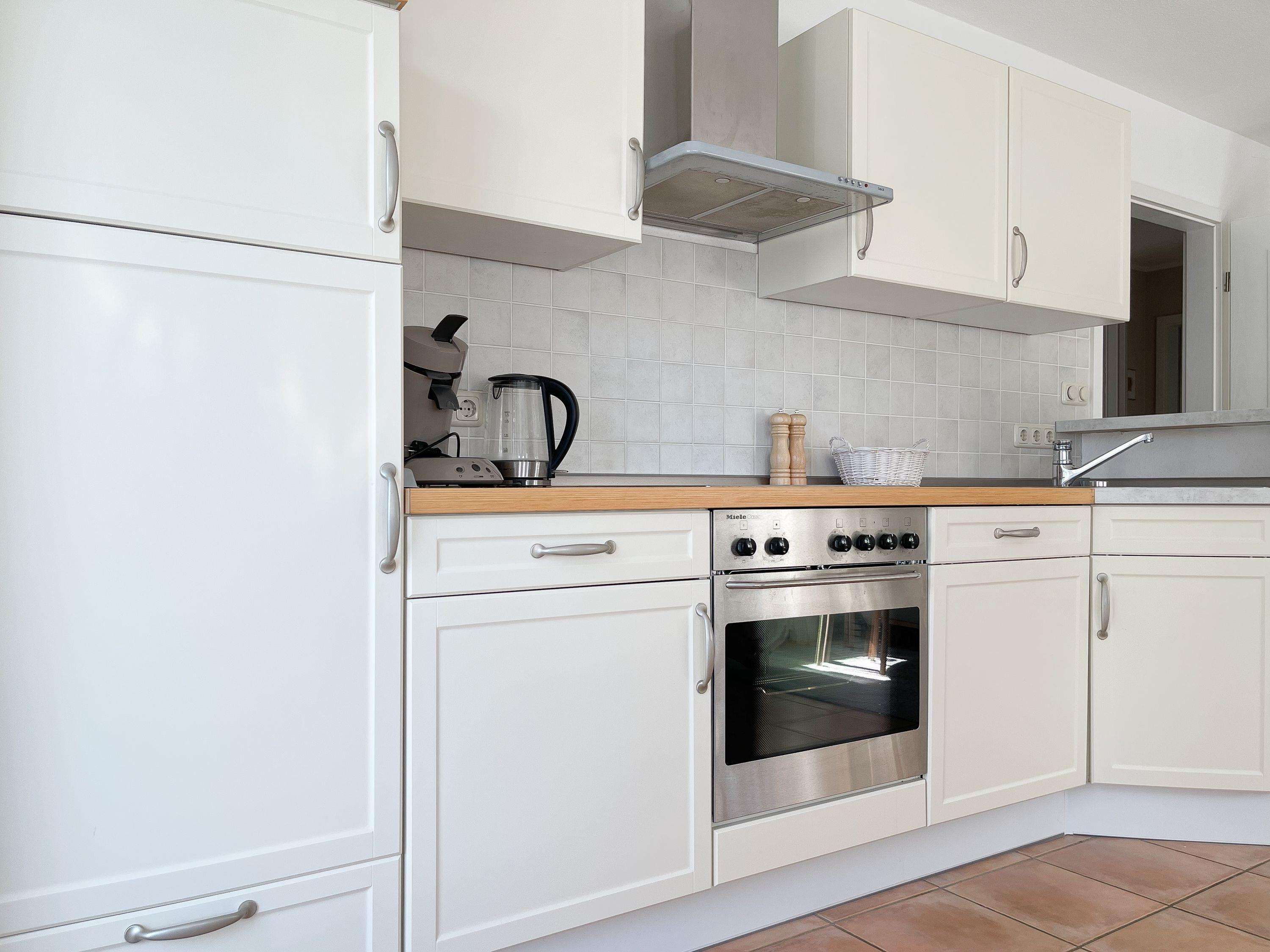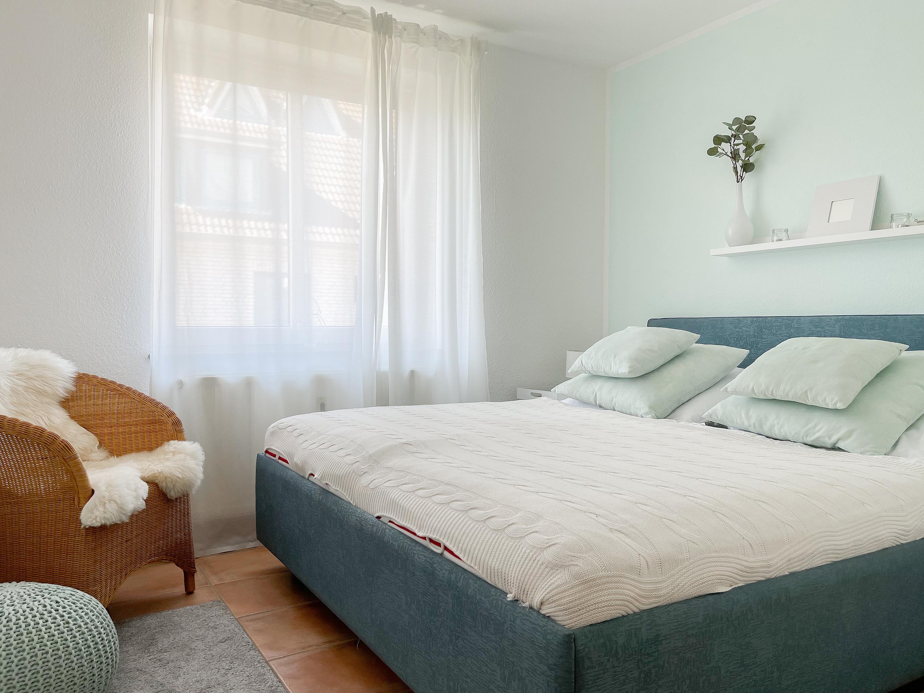 Die sonnige zwei Zimmer Ferienwohnung befindet sich in der 1. Etage und verfügt über kleinen Sonnenbalkon, der mit Gartenmöbeln ausgestattet ist. Der Wohnbereich verfügt über ein Sofa mit Schlaffunktion und TV, eine offene Küche und ein gemütlicher Essbereich, der im Erker untergebracht ist. Das Schlafzimmer ist mit einem Doppelbett (180x200) und einem Kleiderschrank ausgestattet. Das Duschbad verfügt über ein Fenster und ist hell und ansprechend. WLAN steht zur kostenlosen Nutzung zur Verfügung.