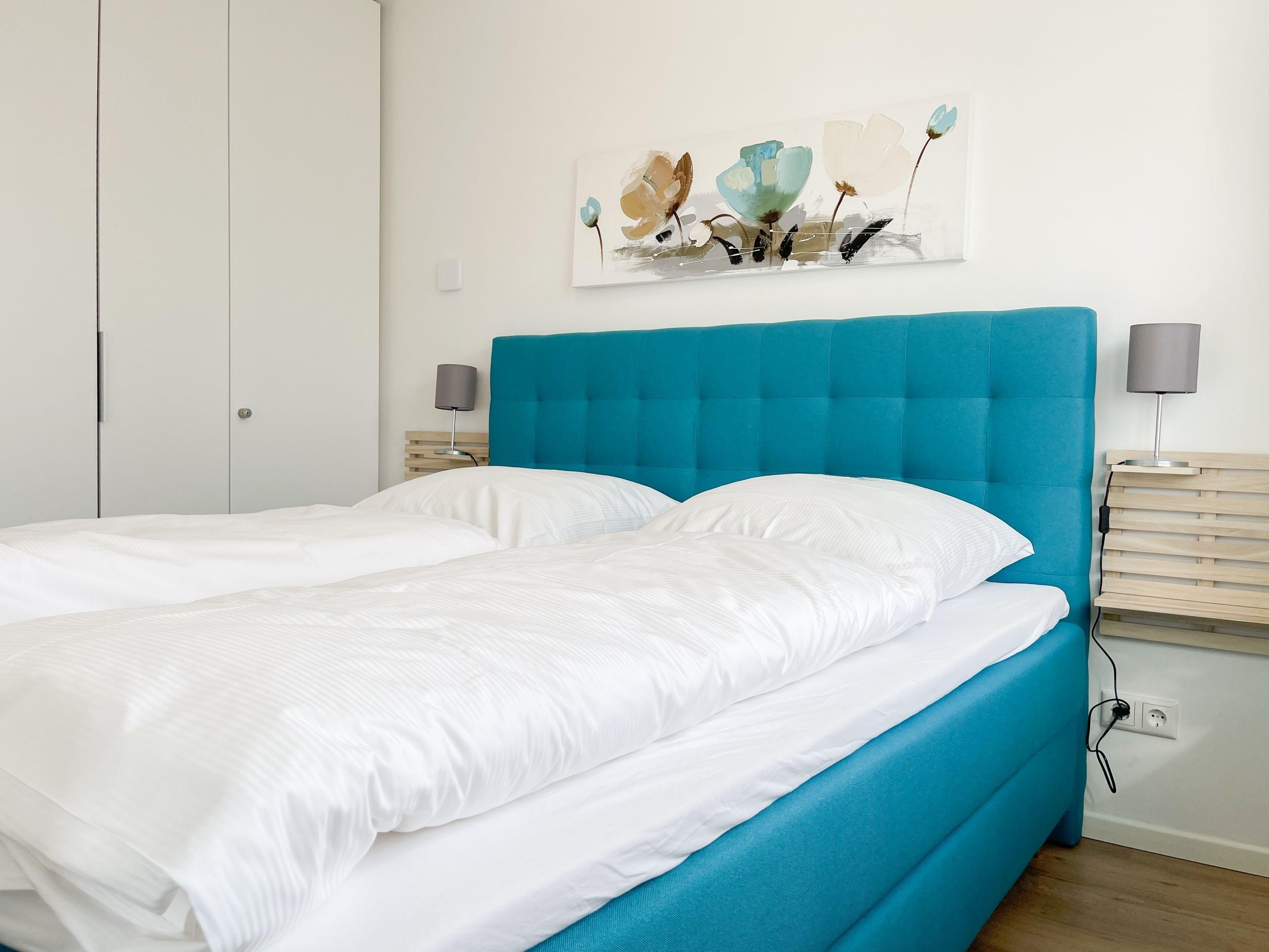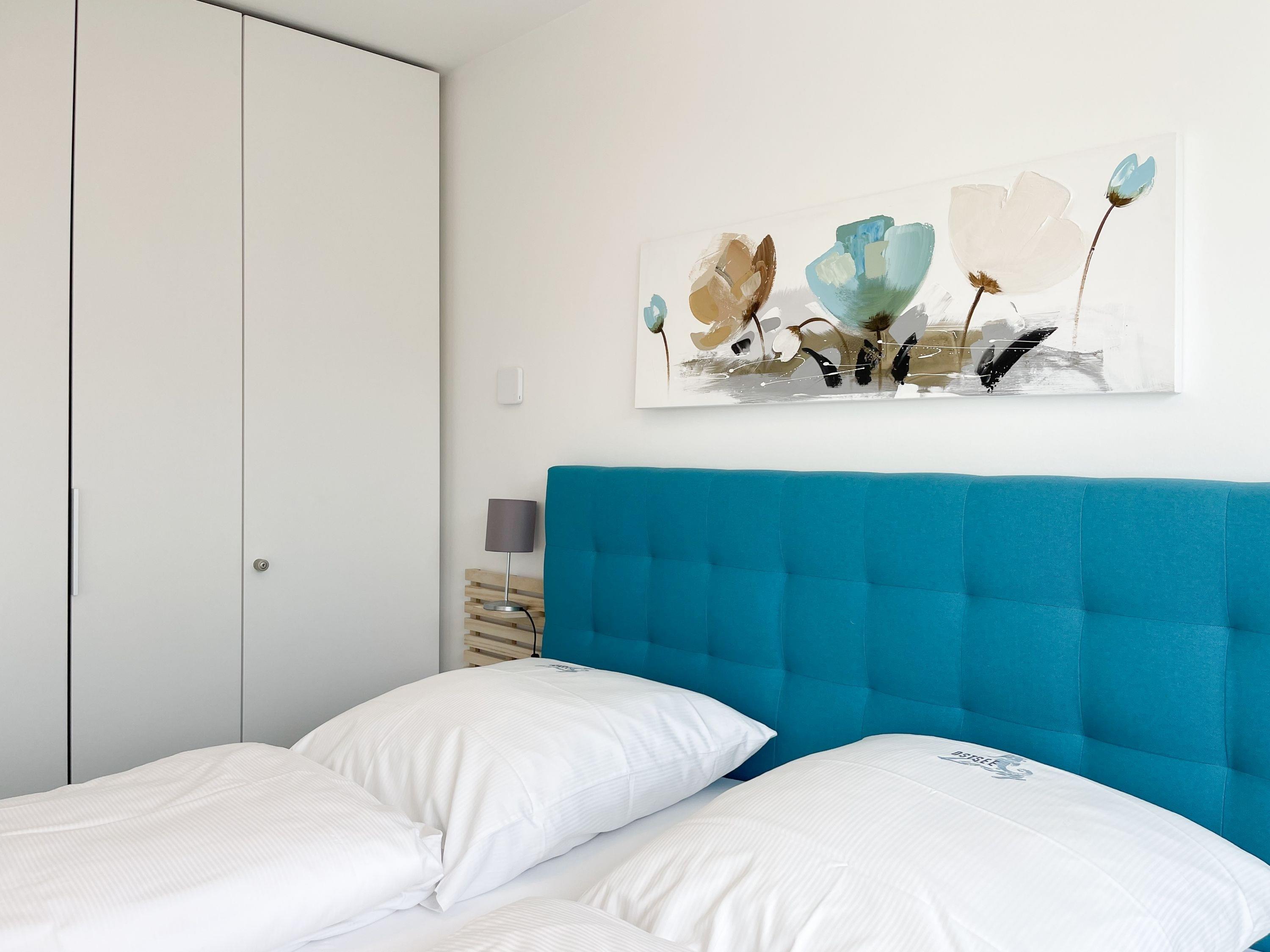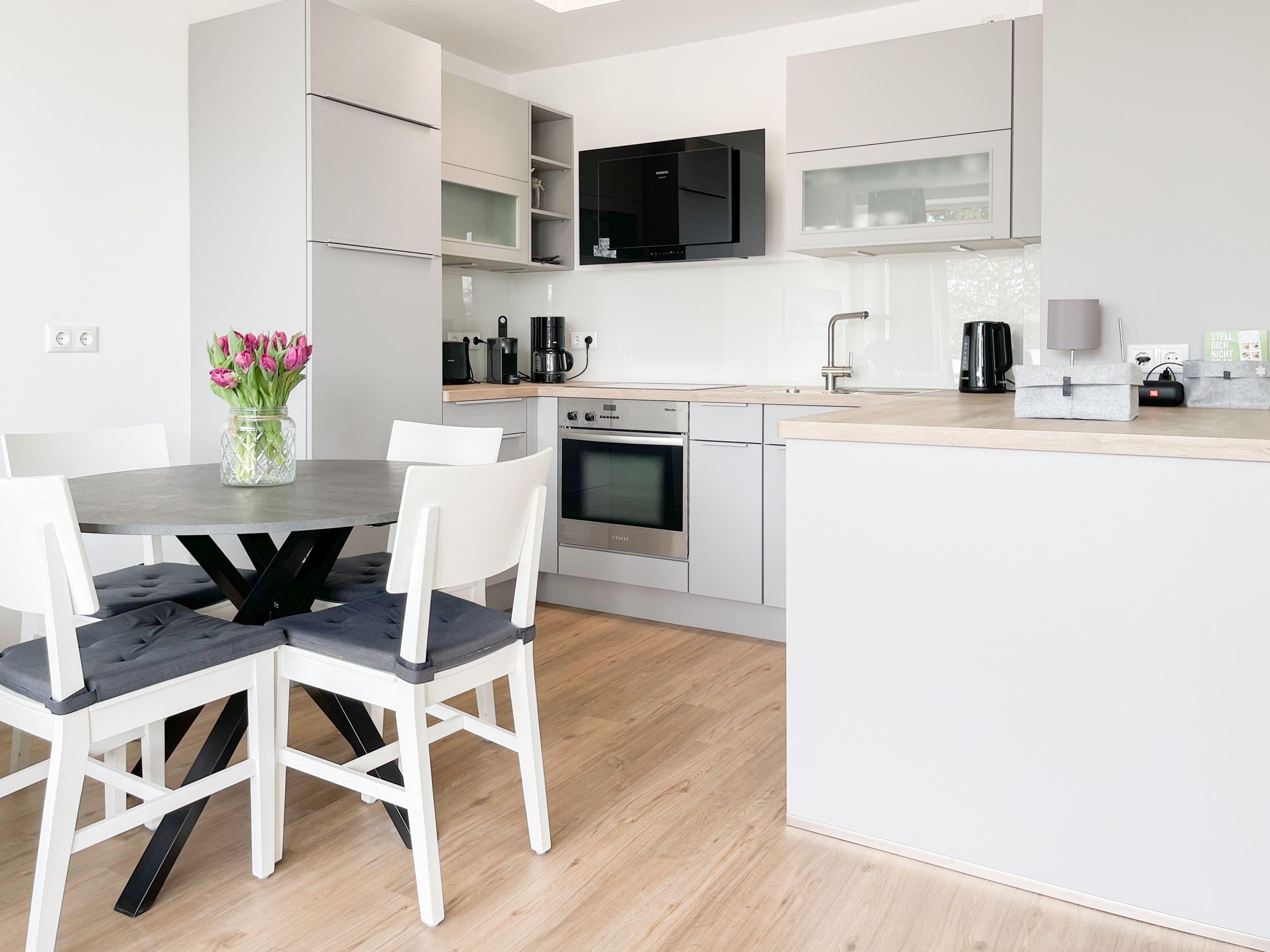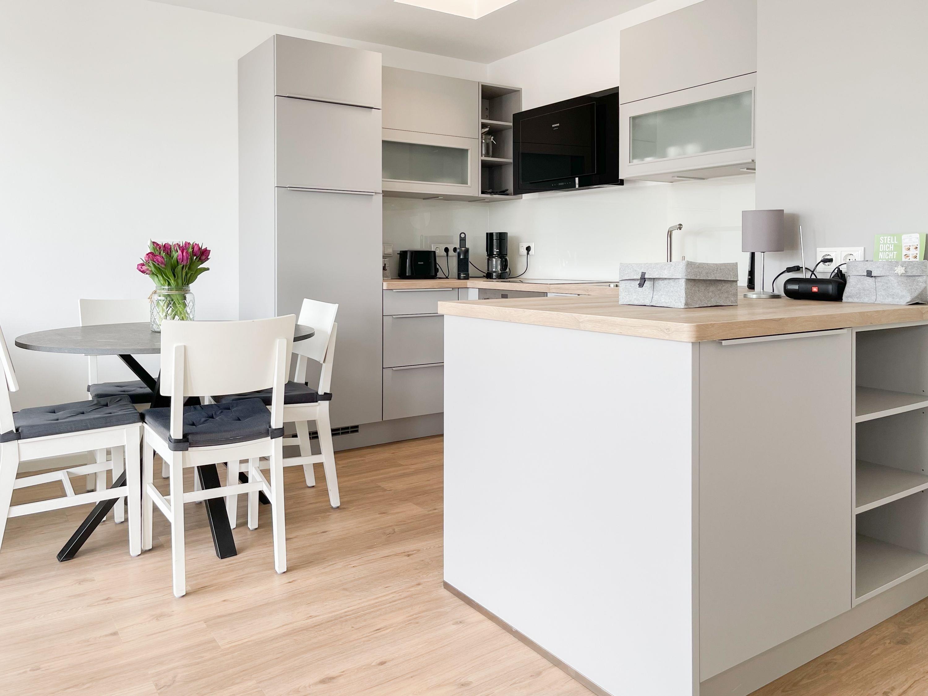 Die Ferienwohnung im 1. Obergeschoss besticht durch ihr gelungenes Raumkonzept und lädt 2-3 Personen zum Wohlfühlen in Strandnähe ein. Der herrliche Sonnenbalkon befindet sich direkt vor dem Wohnbereich und ist mit Gartenmöbeln und einer Markise ausgestattet, um zu jeder Tageszeit erholsame Stunden an der frischen Luft zu genießen. Es erwartet Sie ein heller, freundlicher Wohnraum mit großzügigen Fensterflächen, geschmackvoll gestaltet und hochwertig eingerichtet mit einem Sofa mit Schlaffunktion, TV, Bluetoothradio und einem Essbereich für 4 Personen. WLAN steht selbstverständlich zur kostenlosen Nutzung zur Verfügung. Die offene Küche ist bestens ausgestattet, unter anderem mit Spülmaschine, Mikrowelle, Backofen, Ceranfeld und vielem mehr. Das Schlafzimmer ist mit Schiebetüren vom Wohnbereich getrennt und bietet ein hochwertiges Boxpringbett (180x200), elektrische Außenjalousien und einen Kleiderschrank mit ausreichend Stauraum für die Urlaubsgarderobe. Das neue sehr hochwertige Bad verfügt über Dusche, WC, Waschtisch, Fön, Handtuchtrockner und ein Oberlichtfenster.