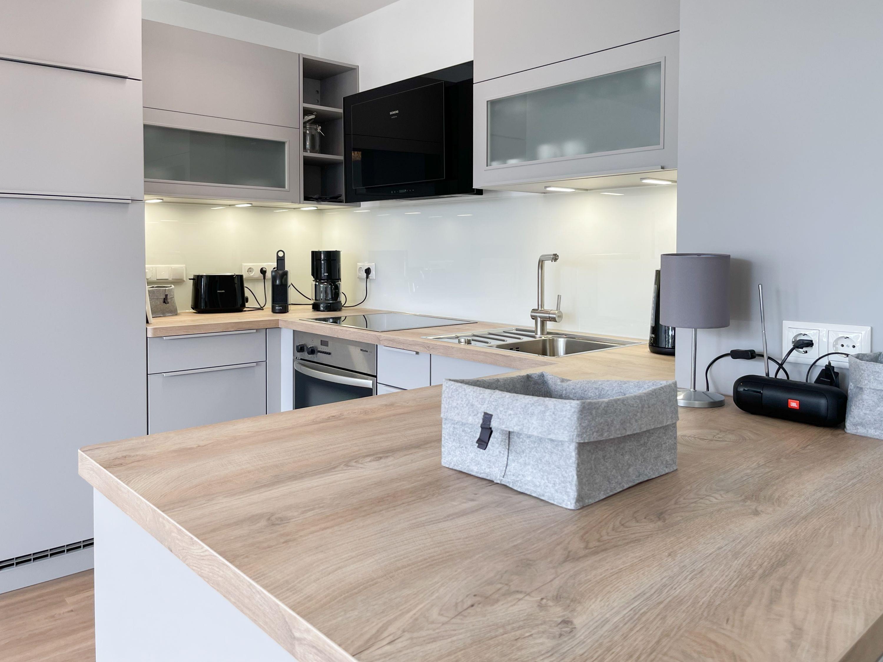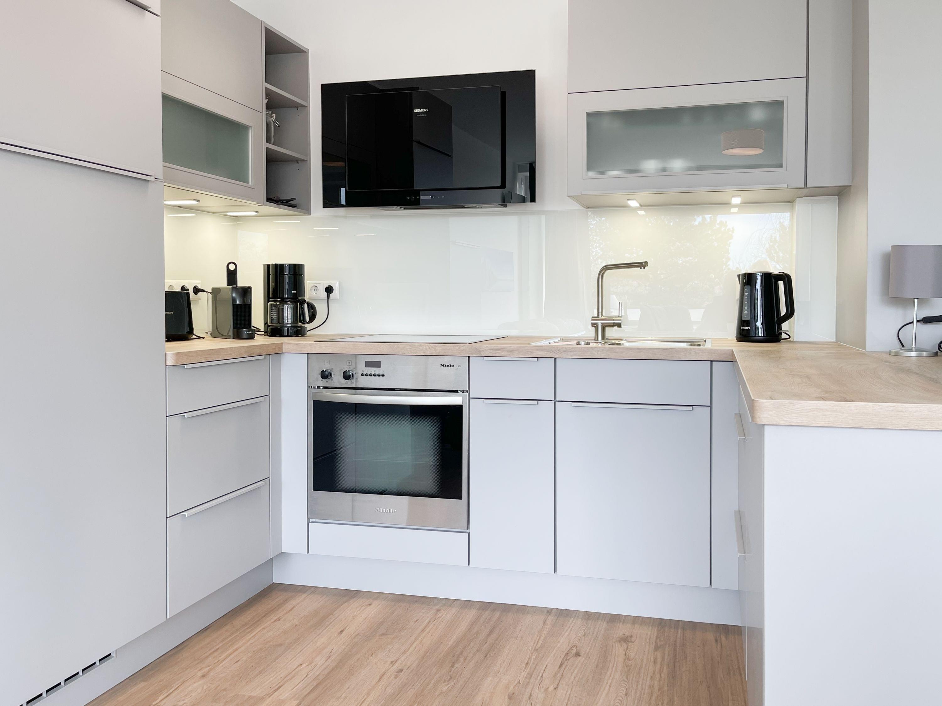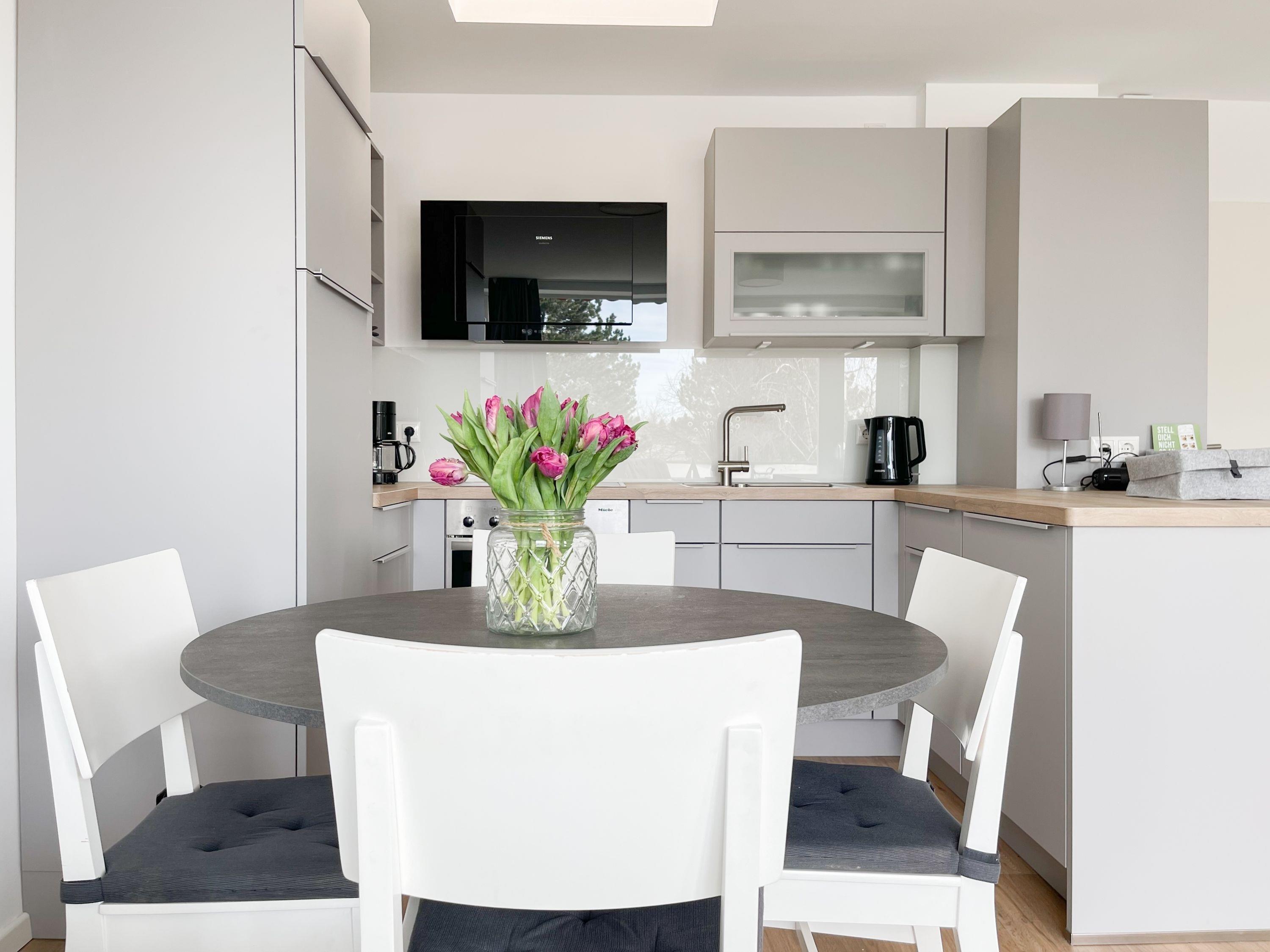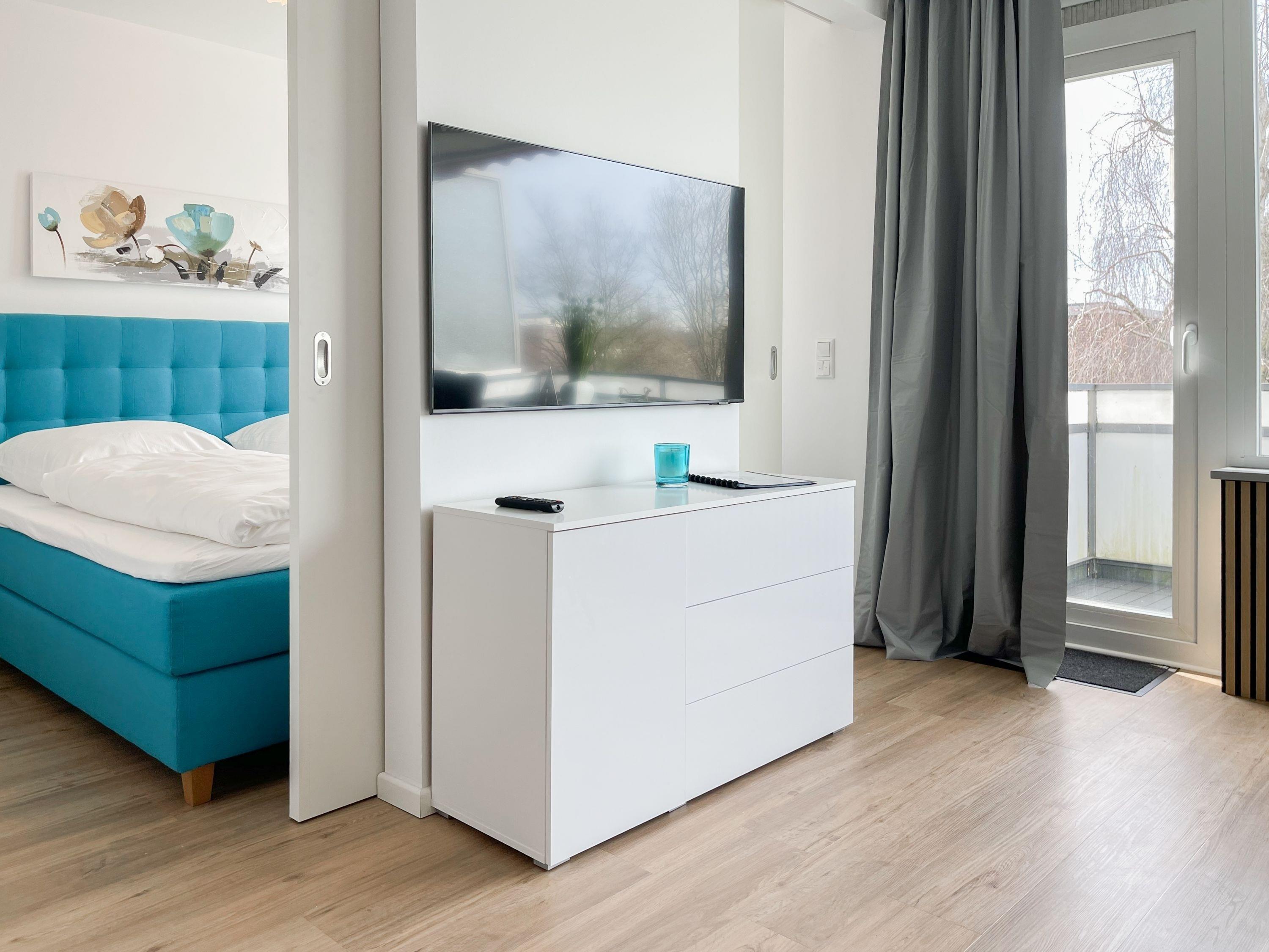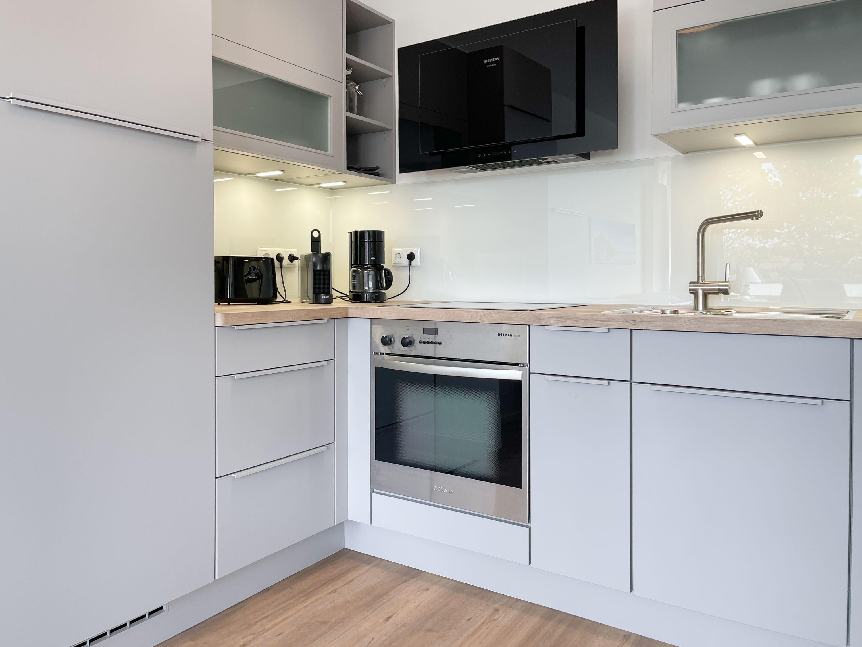 Die Ferienwohnung im 1. Obergeschoss besticht durch ihr gelungenes Raumkonzept und lädt 2-3 Personen zum Wohlfühlen in Strandnähe ein. Der herrliche Sonnenbalkon befindet sich direkt vor dem Wohnbereich und ist mit Gartenmöbeln und einer Markise ausgestattet, um zu jeder Tageszeit erholsame Stunden an der frischen Luft zu genießen. Es erwartet Sie ein heller, freundlicher Wohnraum mit großzügigen Fensterflächen, geschmackvoll gestaltet und hochwertig eingerichtet mit einem Sofa mit Schlaffunktion, TV, Bluetoothradio und einem Essbereich für 4 Personen. WLAN steht selbstverständlich zur kostenlosen Nutzung zur Verfügung. Die offene Küche ist bestens ausgestattet, unter anderem mit Spülmaschine, Mikrowelle, Backofen, Ceranfeld und vielem mehr. Das Schlafzimmer ist mit Schiebetüren vom Wohnbereich getrennt und bietet ein hochwertiges Boxpringbett (180x200), elektrische Außenjalousien und einen Kleiderschrank mit ausreichend Stauraum für die Urlaubsgarderobe. Das neue sehr hochwertige Bad verfügt über Dusche, WC, Waschtisch, Fön, Handtuchtrockner und ein Oberlichtfenster.