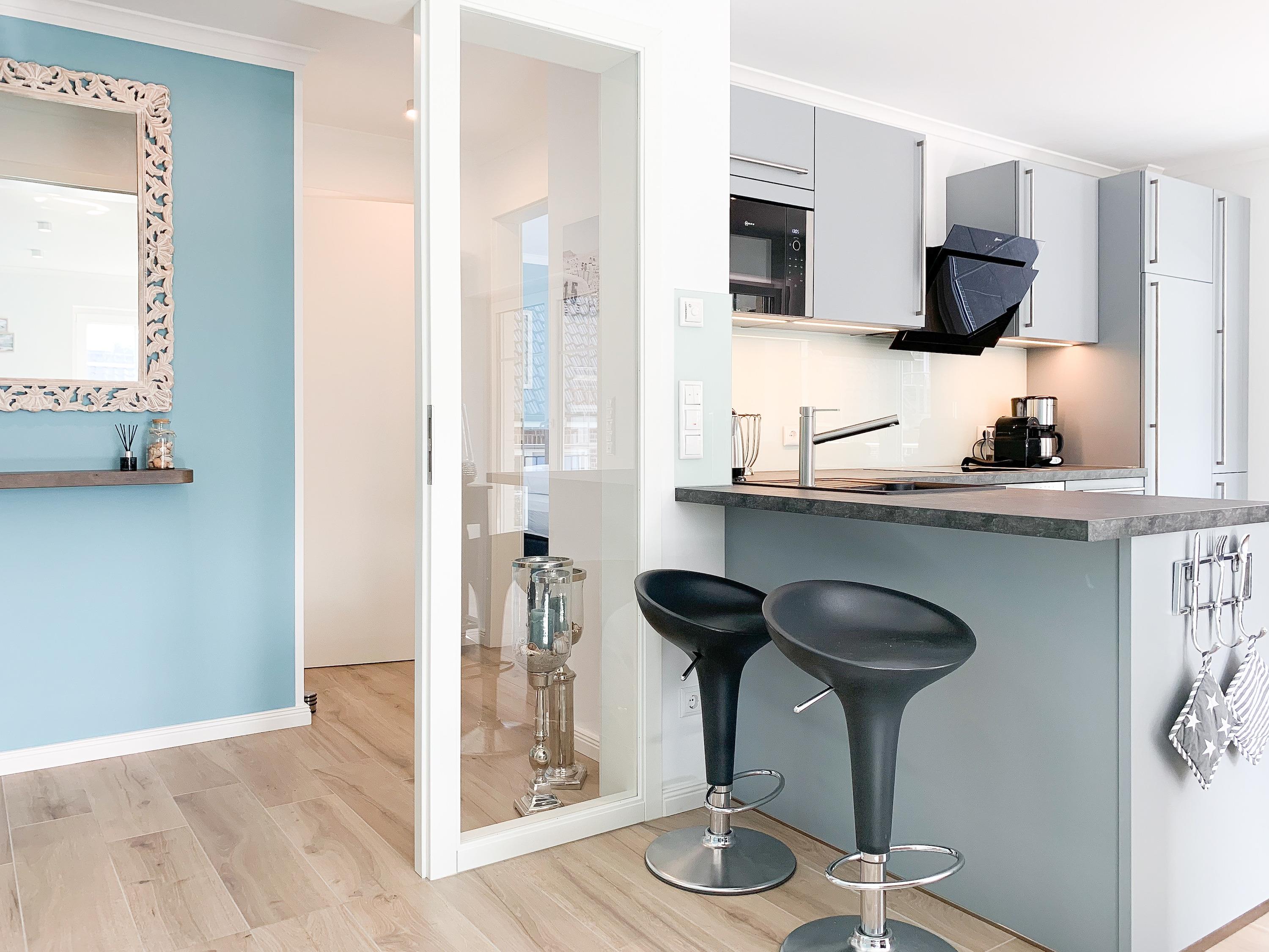 Die äußerst hochwertige Ferienwohnung verfügt über jeglichen Komfort eines Neubaus wie bodentiefe Fensterflächen für helle Räumlichkeiten, Fußbodenheizung für ein angenehmes Raumklima und elektrische Außenjalousien. Mittelpunkt der Wohnung bildet der geschmackvoll gestaltete, sonnige Wohn- Essbereich mit integrierter, bestens ausgestatteter Einbauküche und der großzügig angelegte, zum Teil überdachte Südbalkon. Ein Highlight ist mit Sicherheit die ganz private[nbsp] Sauna, die im modernen Duschbad integriert ist. Es stehen 2 separate Schlafzimmer zur Verfügung, wovon das eine mit einem hochwertigen Boxspringbett, Einbauschrank und TV ausgestattet ist, das andere verfügt über ein mit viel Liebe zum Detail vom Tischler gefertigtes Etagenbett. Die Ferienwohnung ist für Kleinkinder nicht geeignet.
